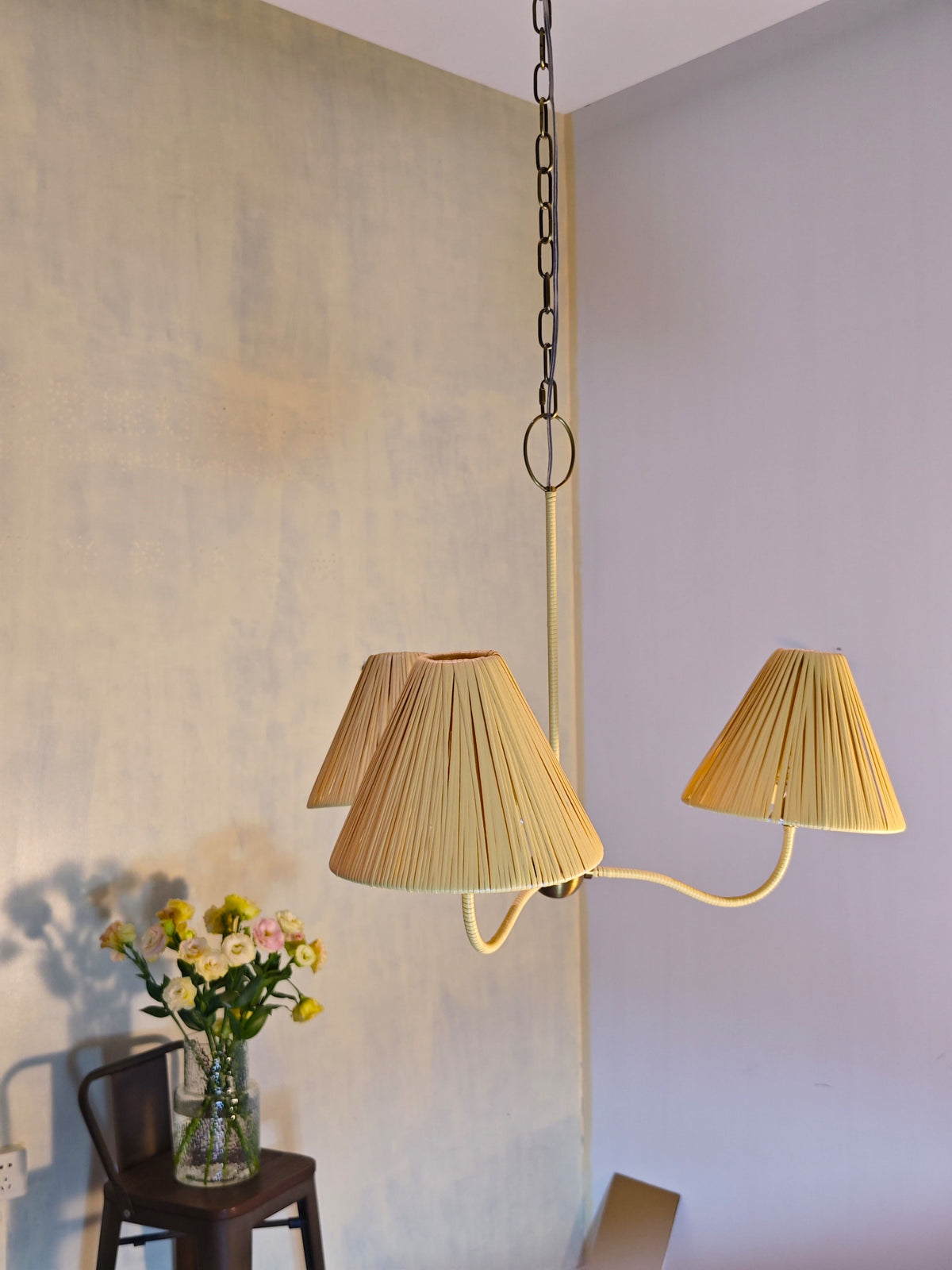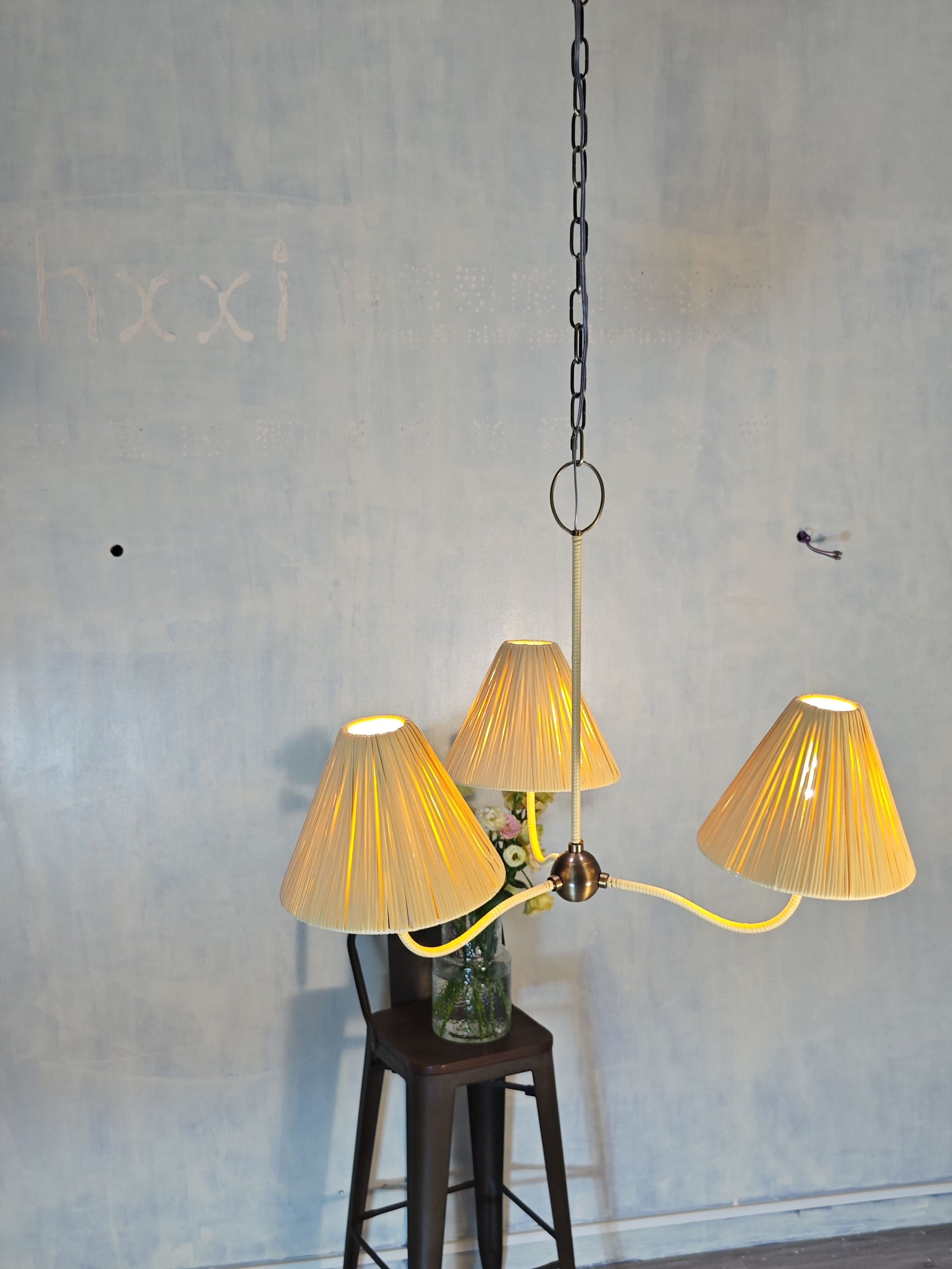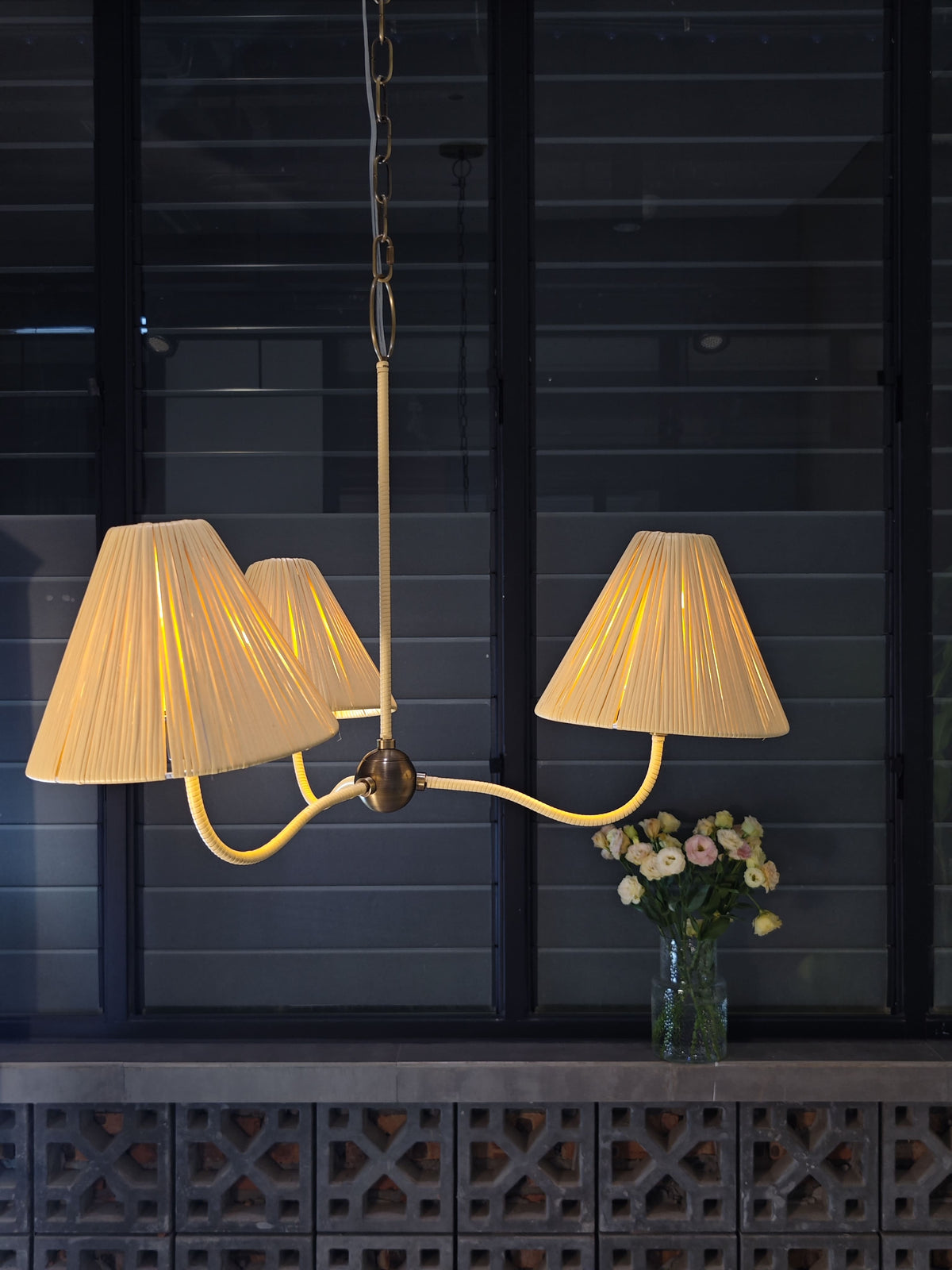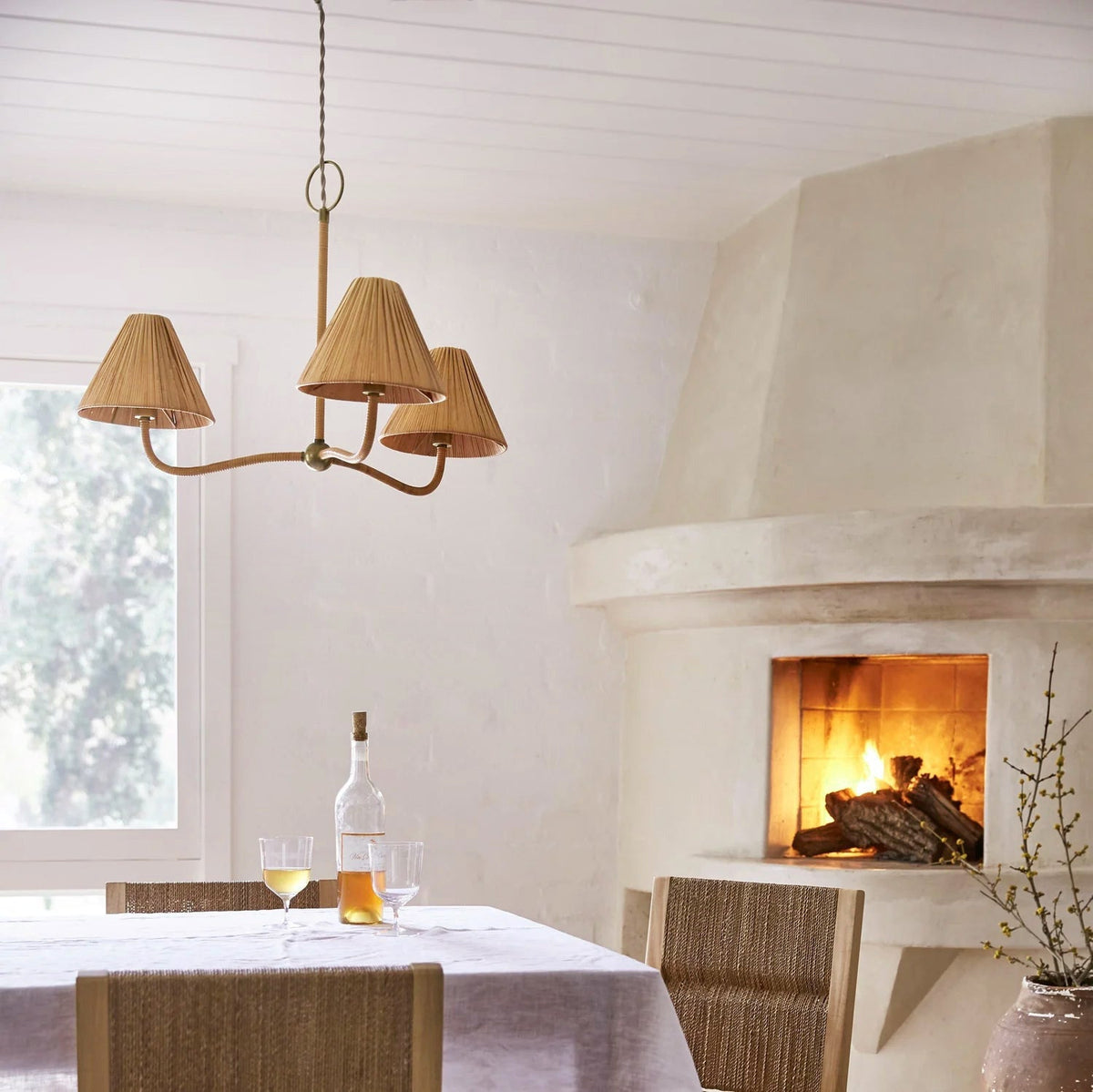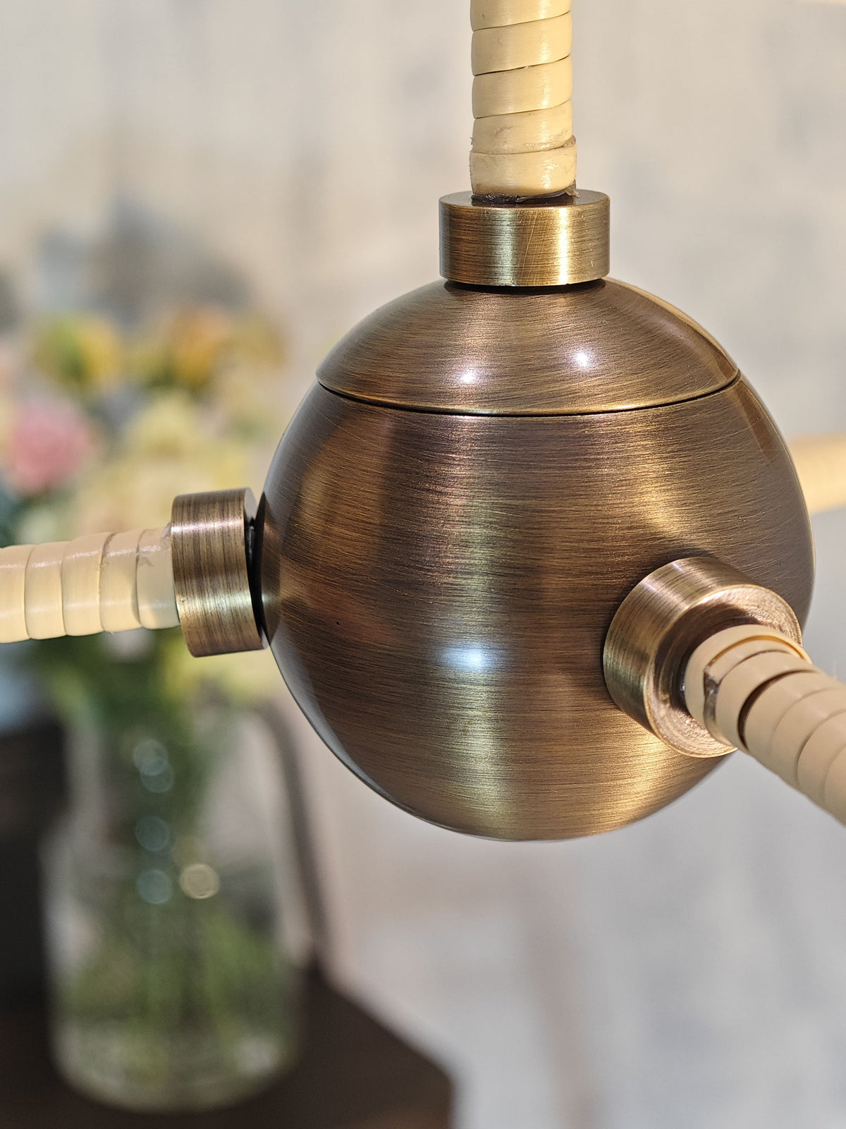 • Elevate your space with the Delphine Rattan Chandelier, a stunning fusion of timeless charm and artisanal craftsmanship. Featuring an antique brass-finished frame and handcrafted rattan shades, this chandelier brings a touch of organic sophistication to living rooms, bedrooms, dining areas, and beyond.