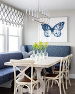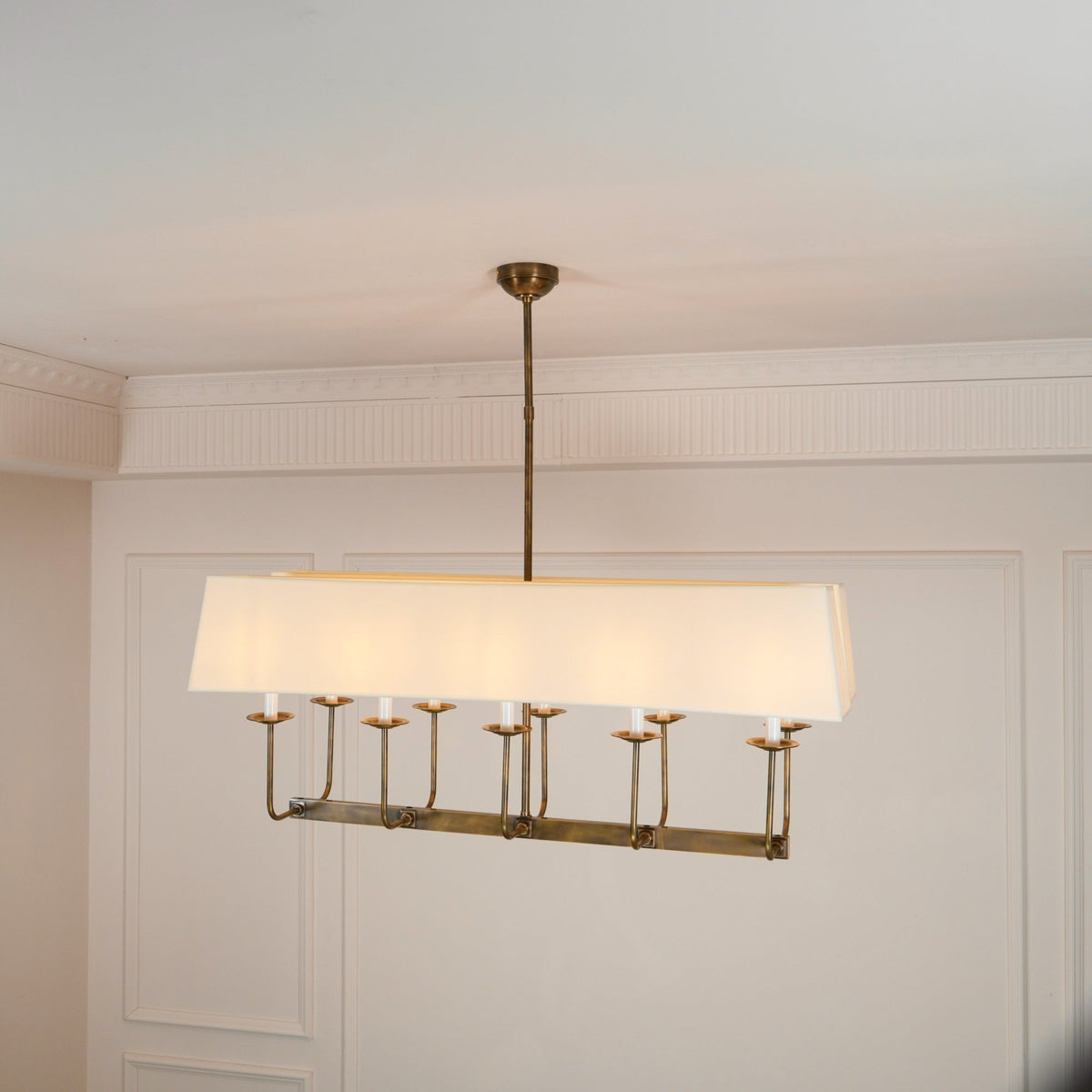 - This chandelier offers the unique option of customizable shades, giving you complete control over the mood and atmosphere
