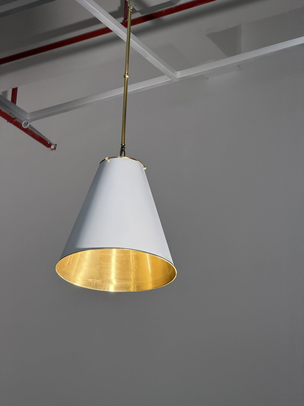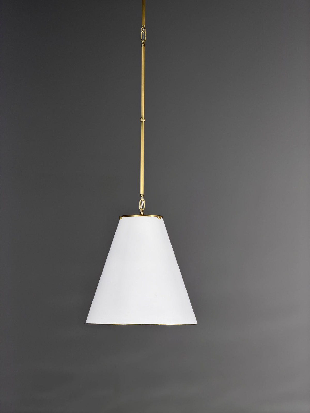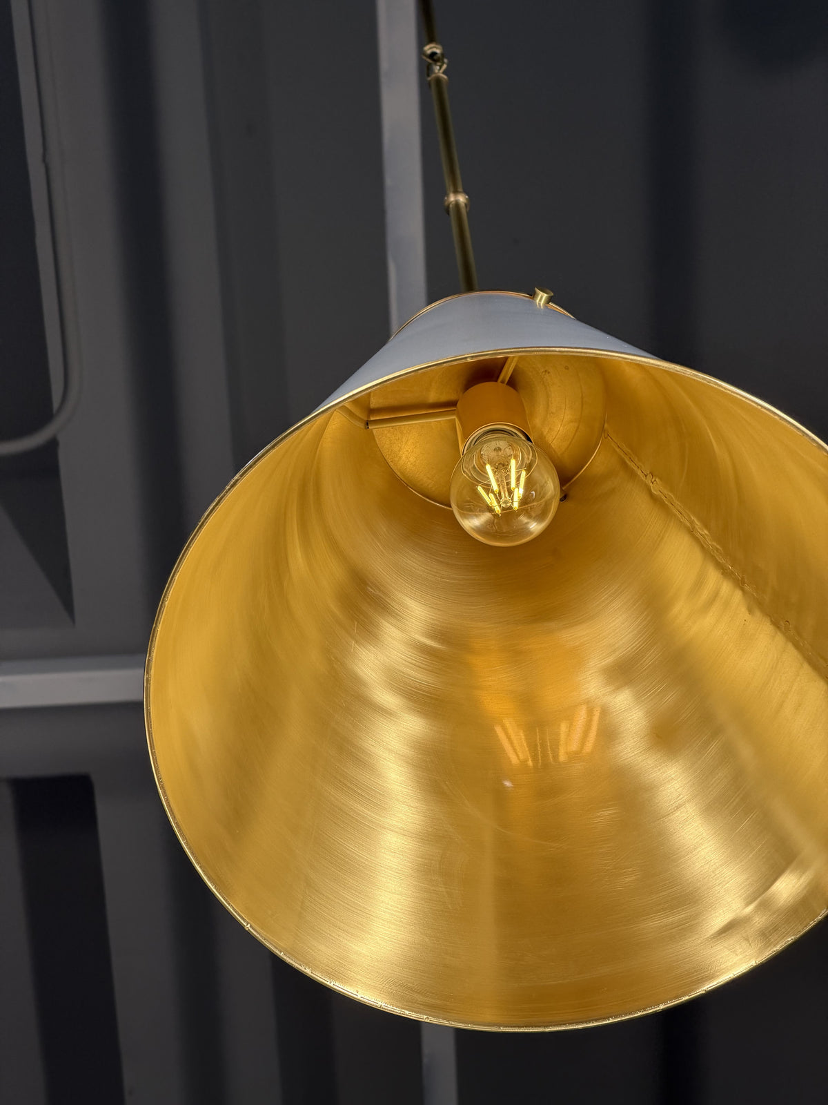 • Crafted from finely finished brass, the shade presents a clean, geometric profile that commands attention through its restraint. This is not a loud or ornate fixture; its beauty lies in its confident purity and the quality of its construction. The light emitted is a focused and deliberate glow, perfect for creating pools of intimate illumination that invite relaxation and concentration.