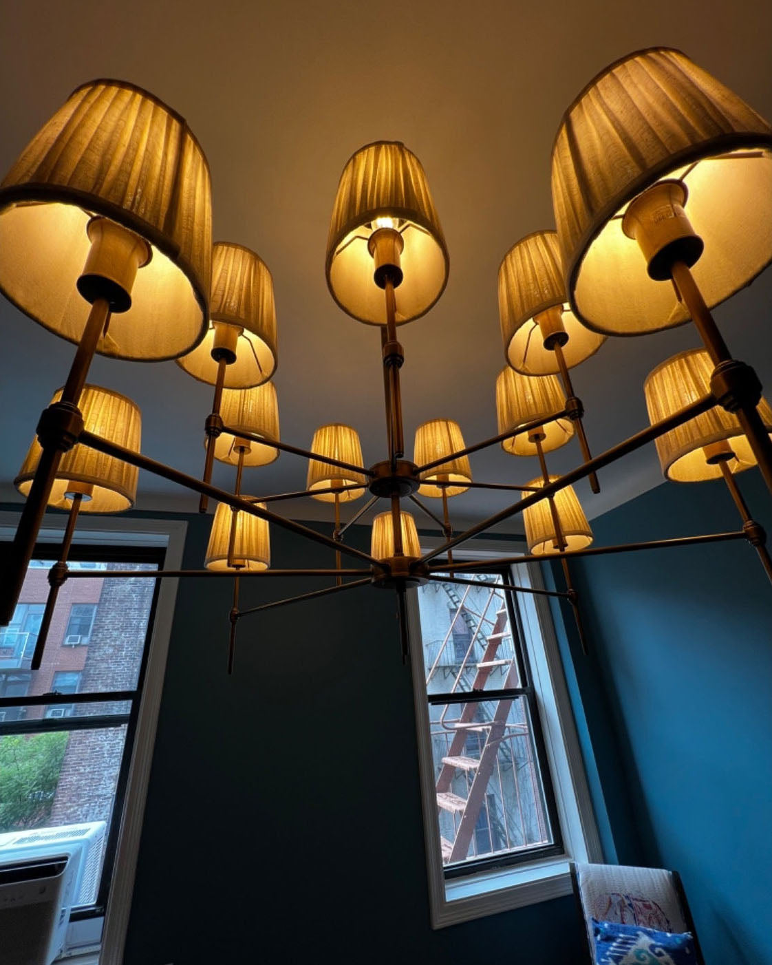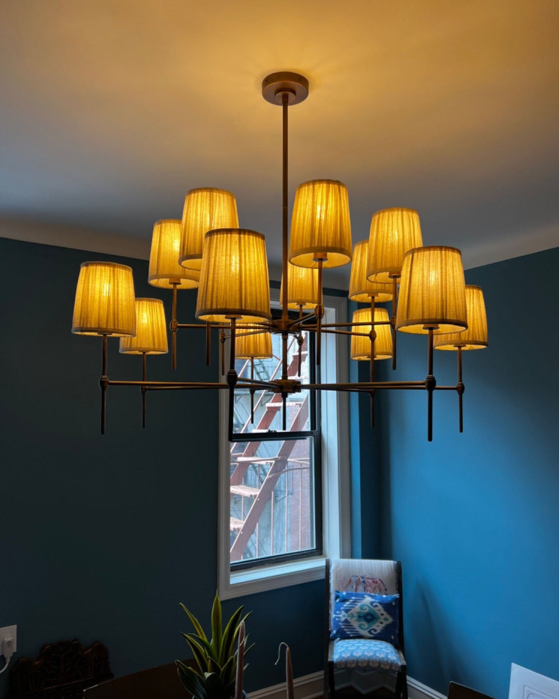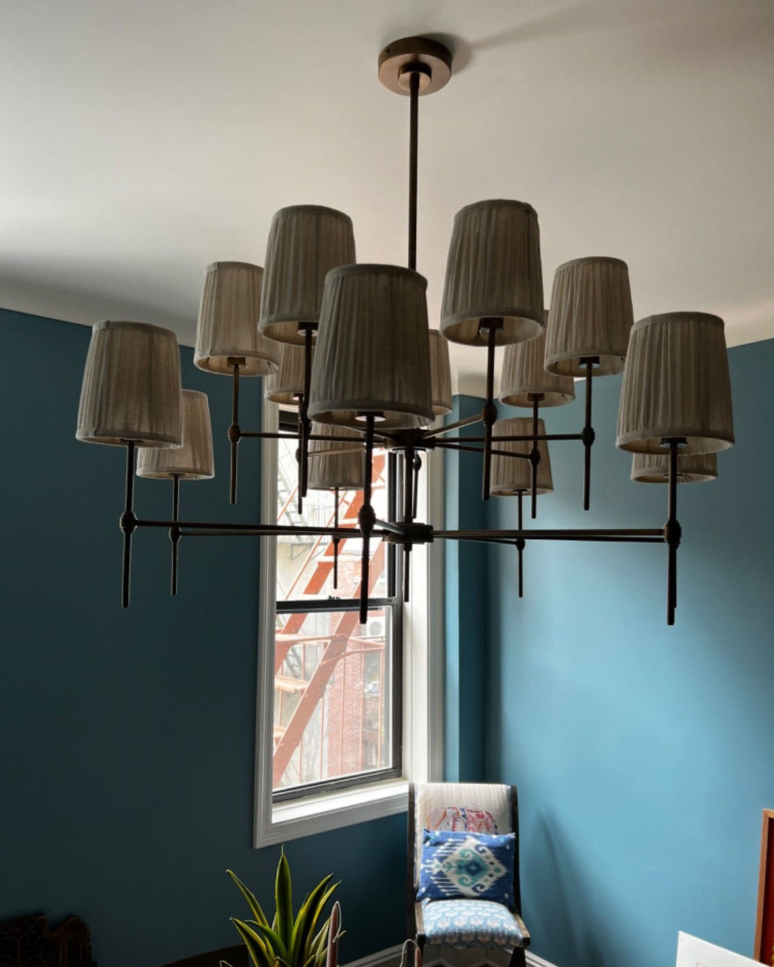 - Elevate your space with the Isobella Chandelier, a stunning lighting piece inspired by the classic interiors of Babington House. Crafted with meticulous attention to detail, this chandelier features fourteen hand-pleated linen shades, each individually lined in soft cotton for a refined, diffused glow.The antique brass-plated frame adds a touch of vintage charm, while the hand-trimmed shades create a beautifully balanced silhouette.