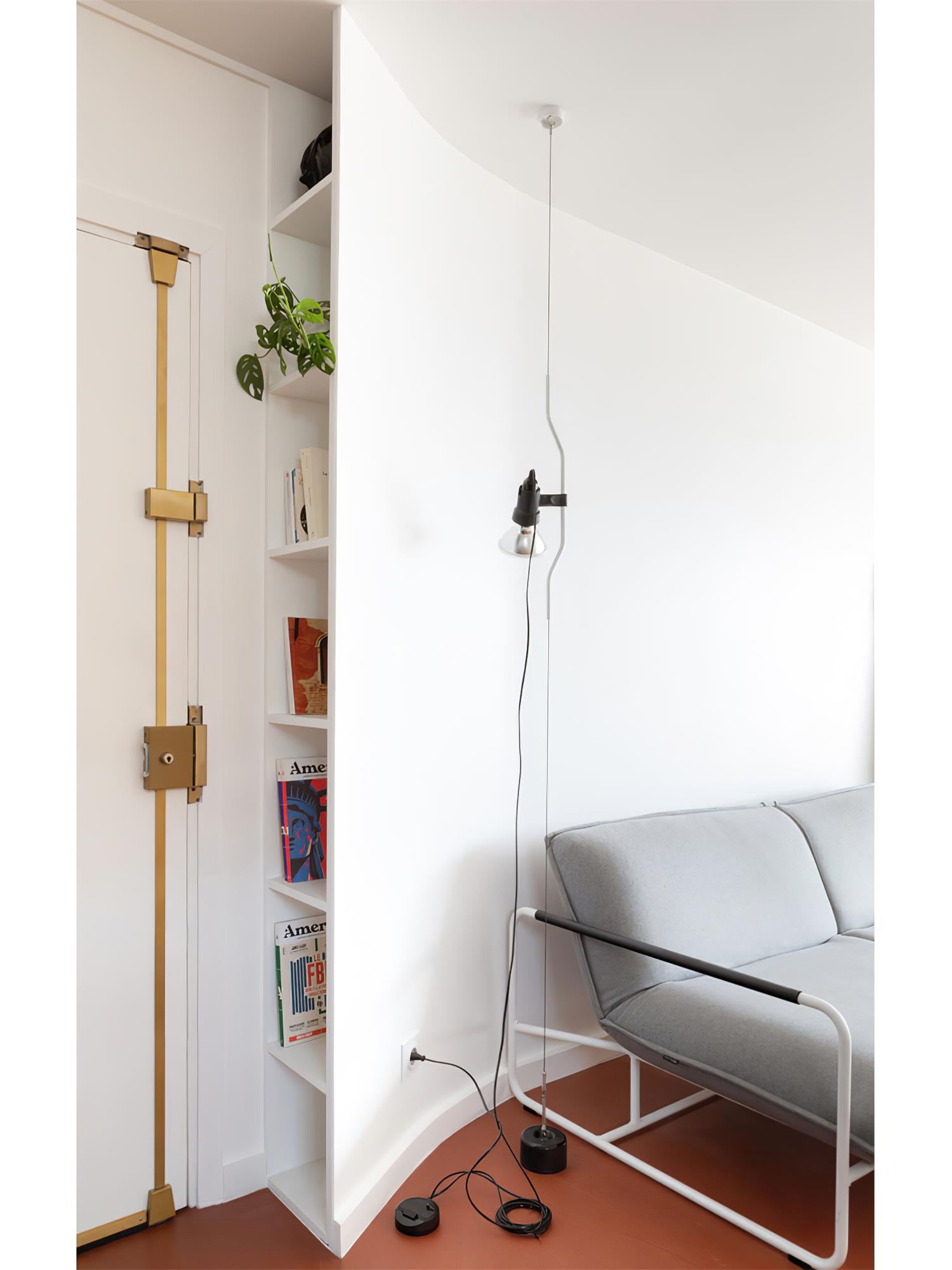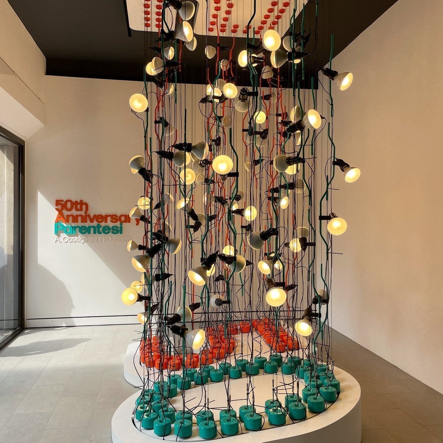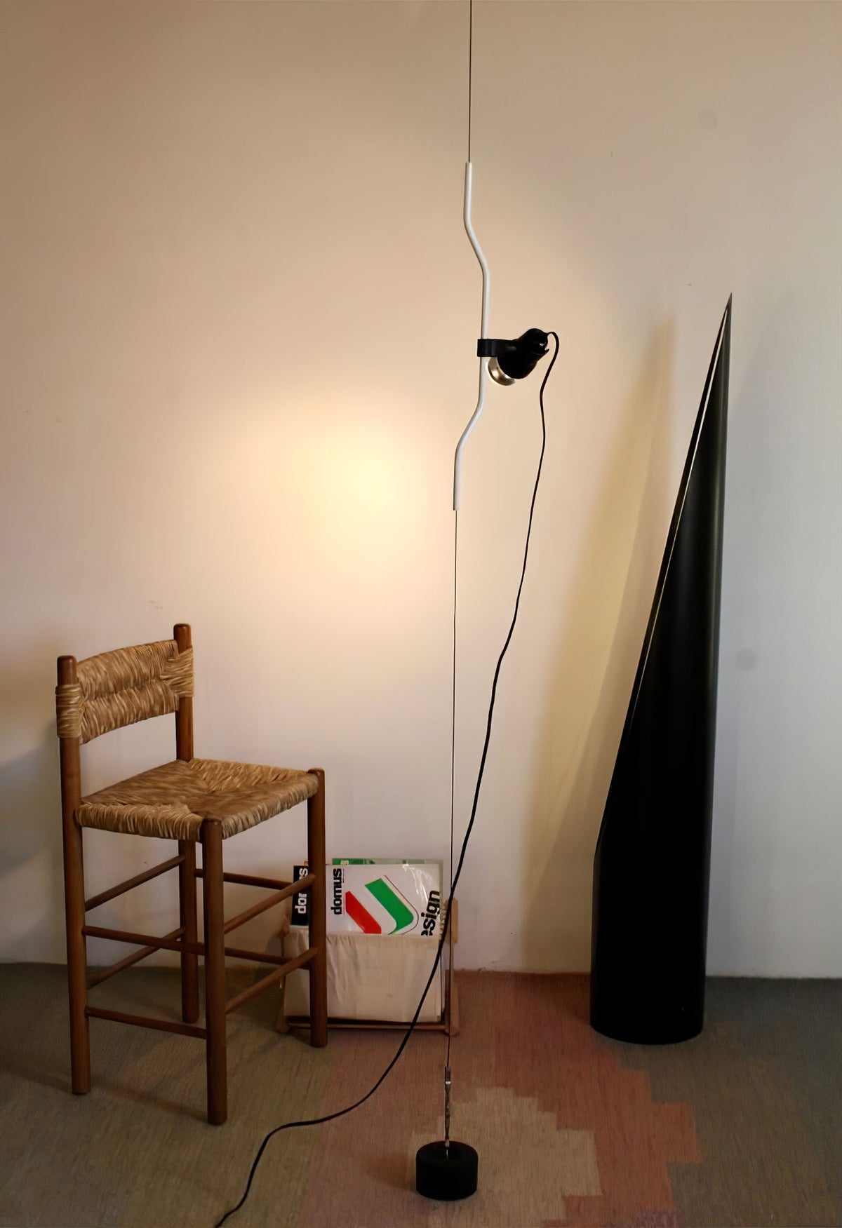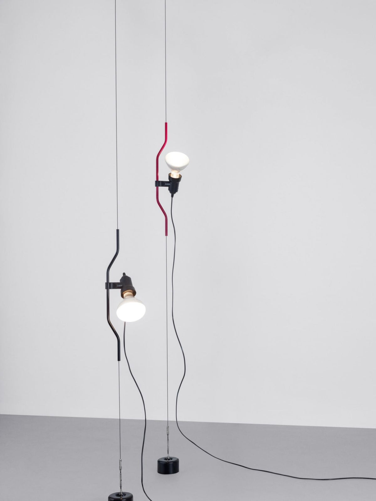 • "Pio Manzù had the original idea for Parentiesi, explains Achille Castiglioni. He thought up a fixed vertical boom and a cylindrical box with a slot for the light, which went up and down: you stopped it with a screw. He replaced the boom with a metal cord that, when bent, creates friction and enables the lamp to be in position without requiring any screws."