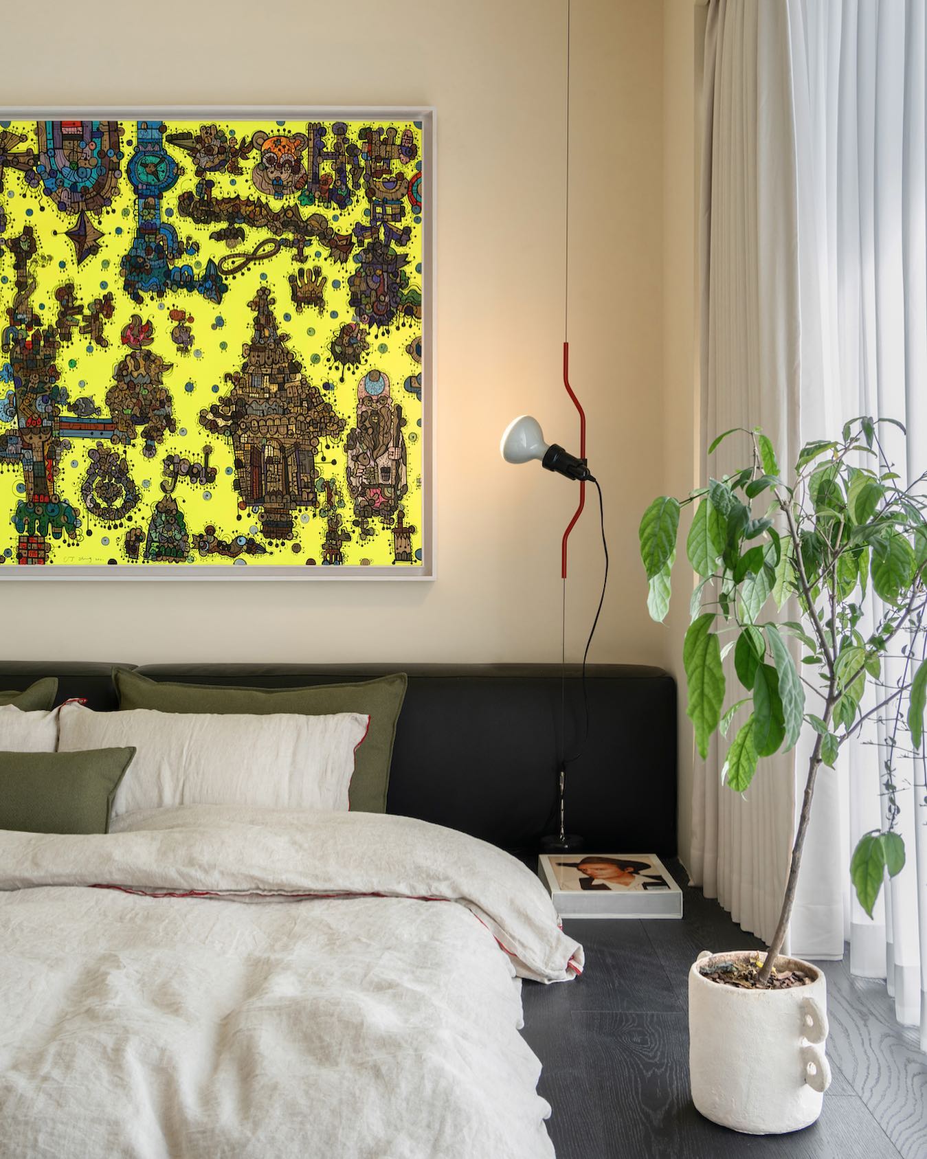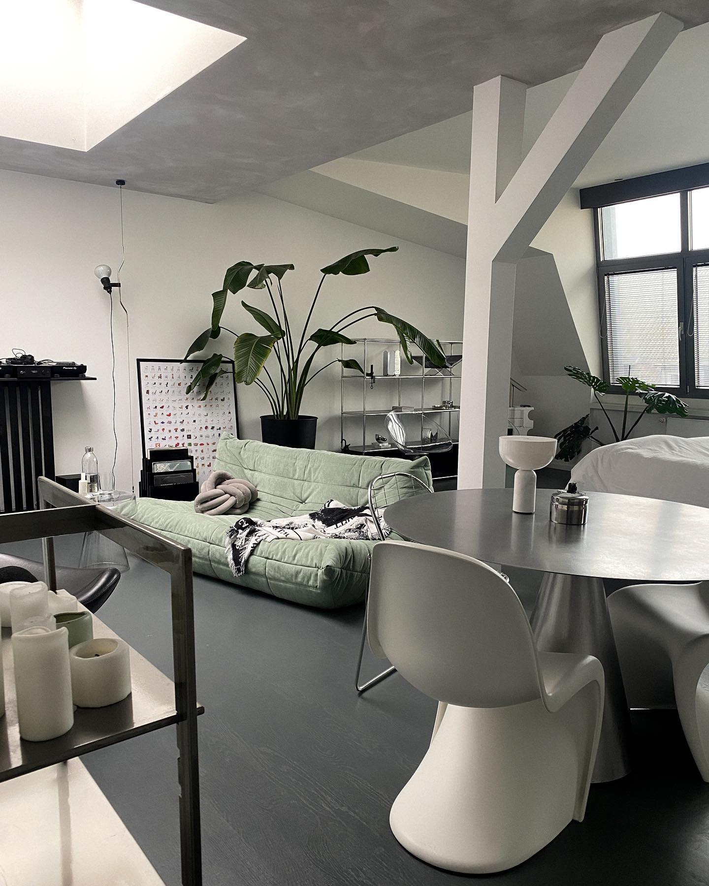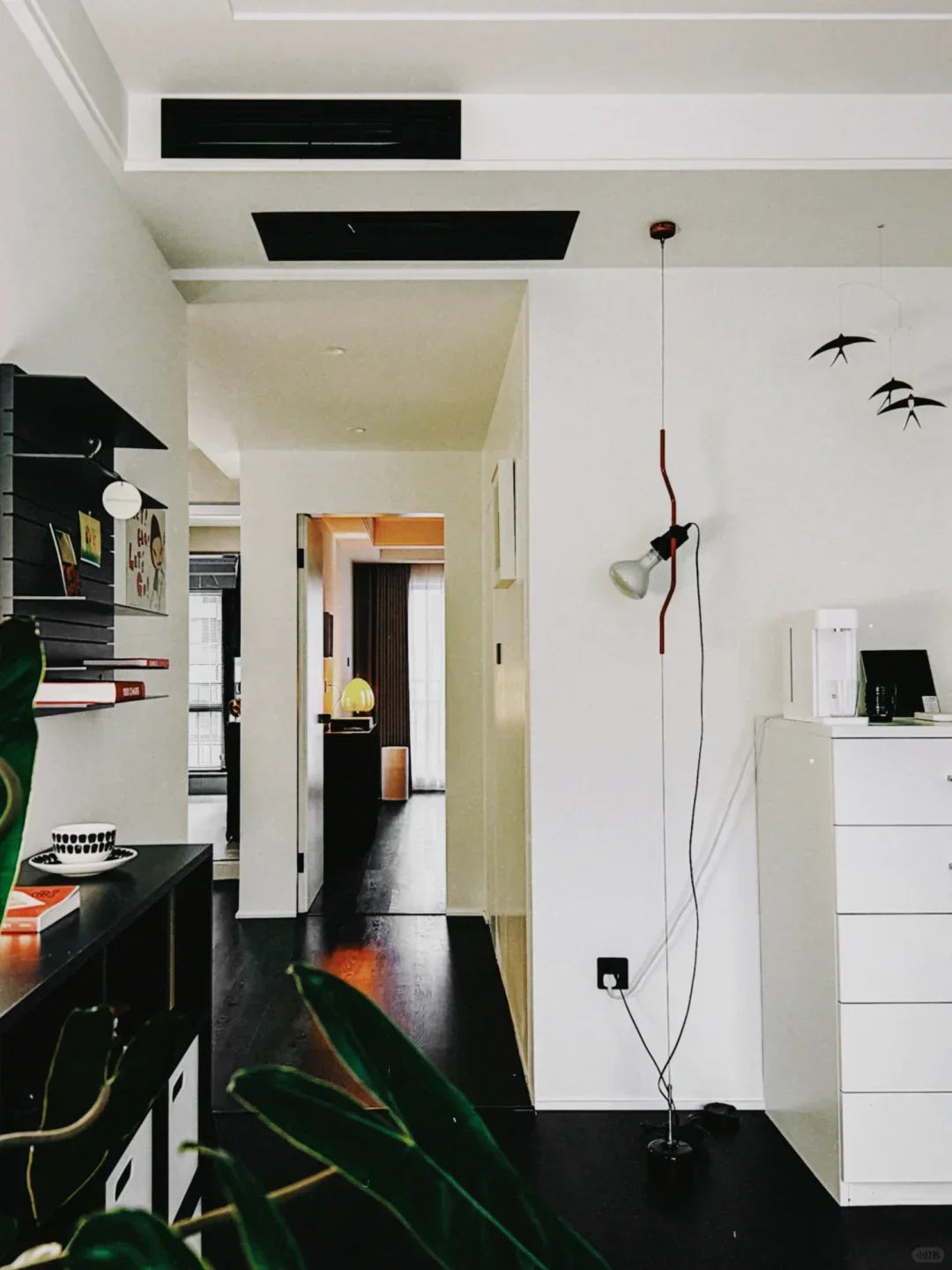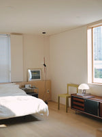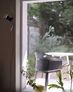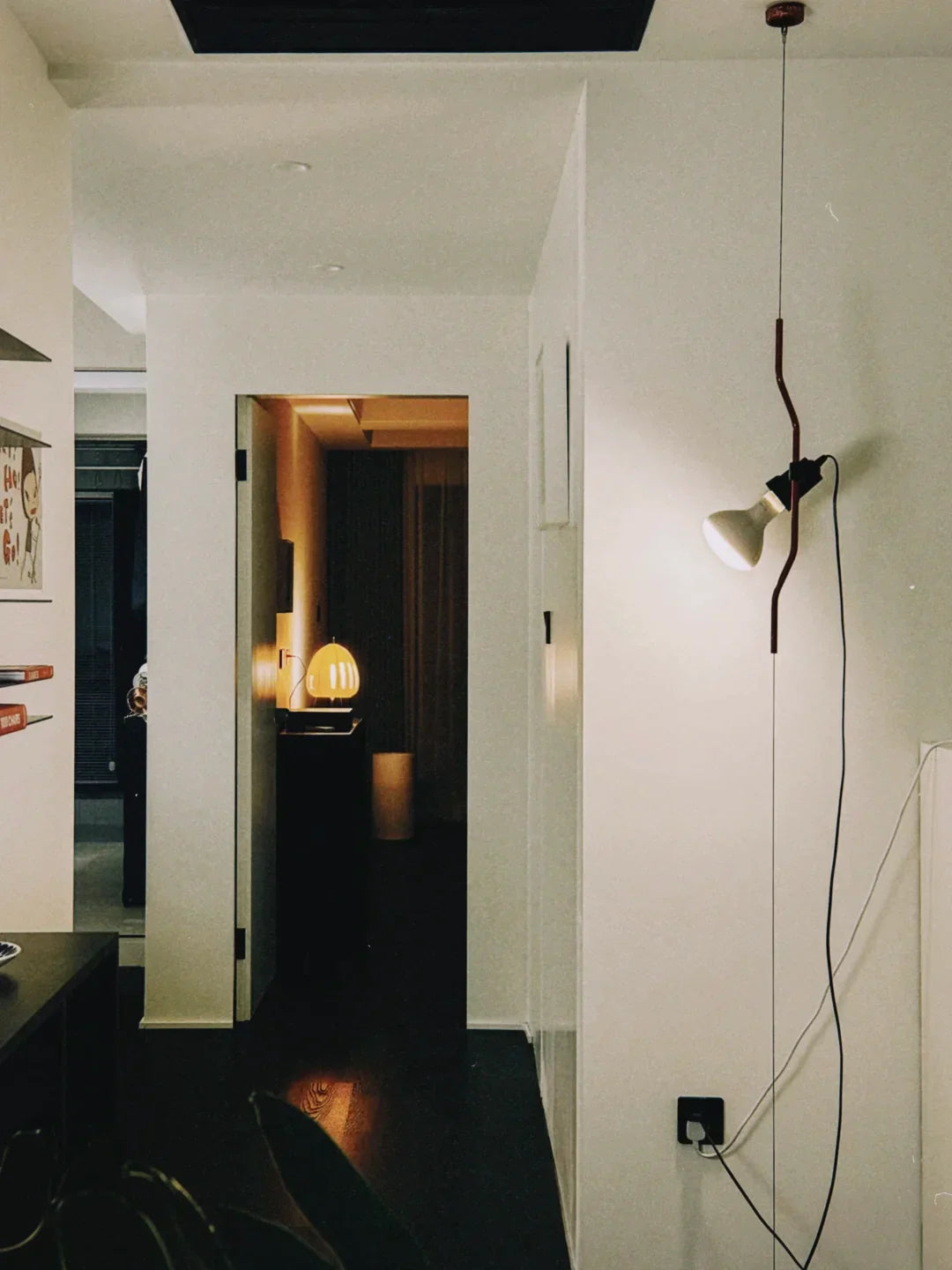 • "Pio Manzù had the original idea for Parentiesi, explains Achille Castiglioni. He thought up a fixed vertical boom and a cylindrical box with a slot for the light, which went up and down: you stopped it with a screw. He replaced the boom with a metal cord that, when bent, creates friction and enables the lamp to be in position without requiring any screws."