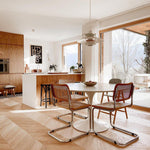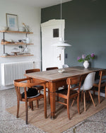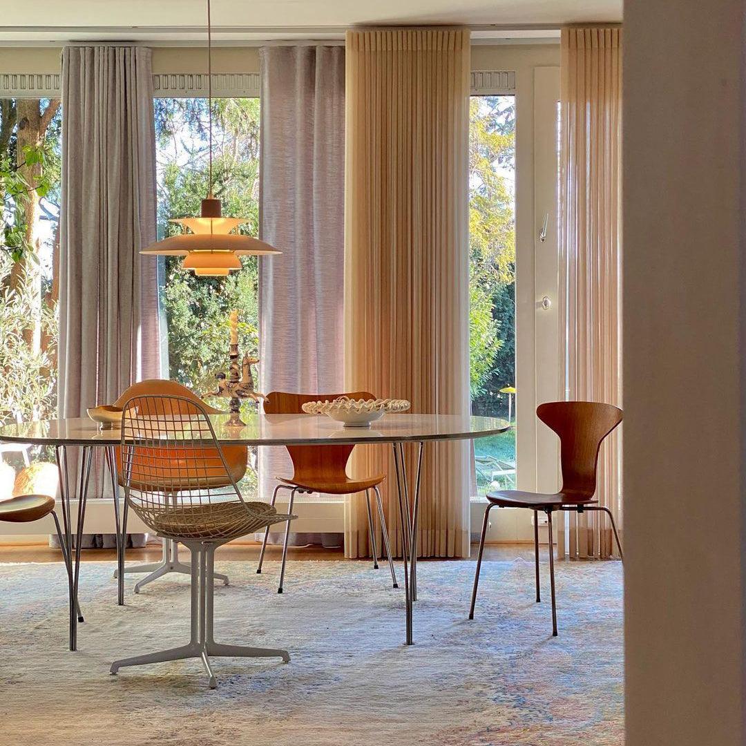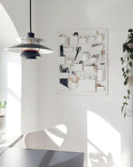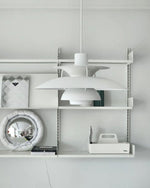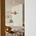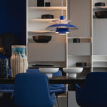 Regardless of how the light is installed or the light source used, the PH5 Pendant Lamp is completely glare-free with the help of its sandblasted glass diffuser. This pendant light is part of distinctive three-shade system, in which the metal shades are painted to ensure comfortable, uniform light distribution that is mainly directed downwards. The light can be aimed where it's most needed while creating soft shadows.