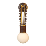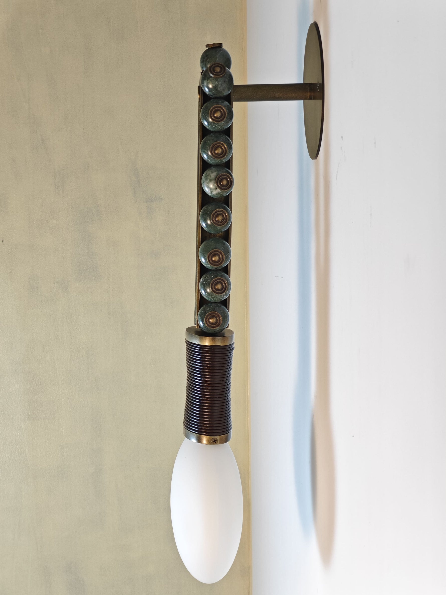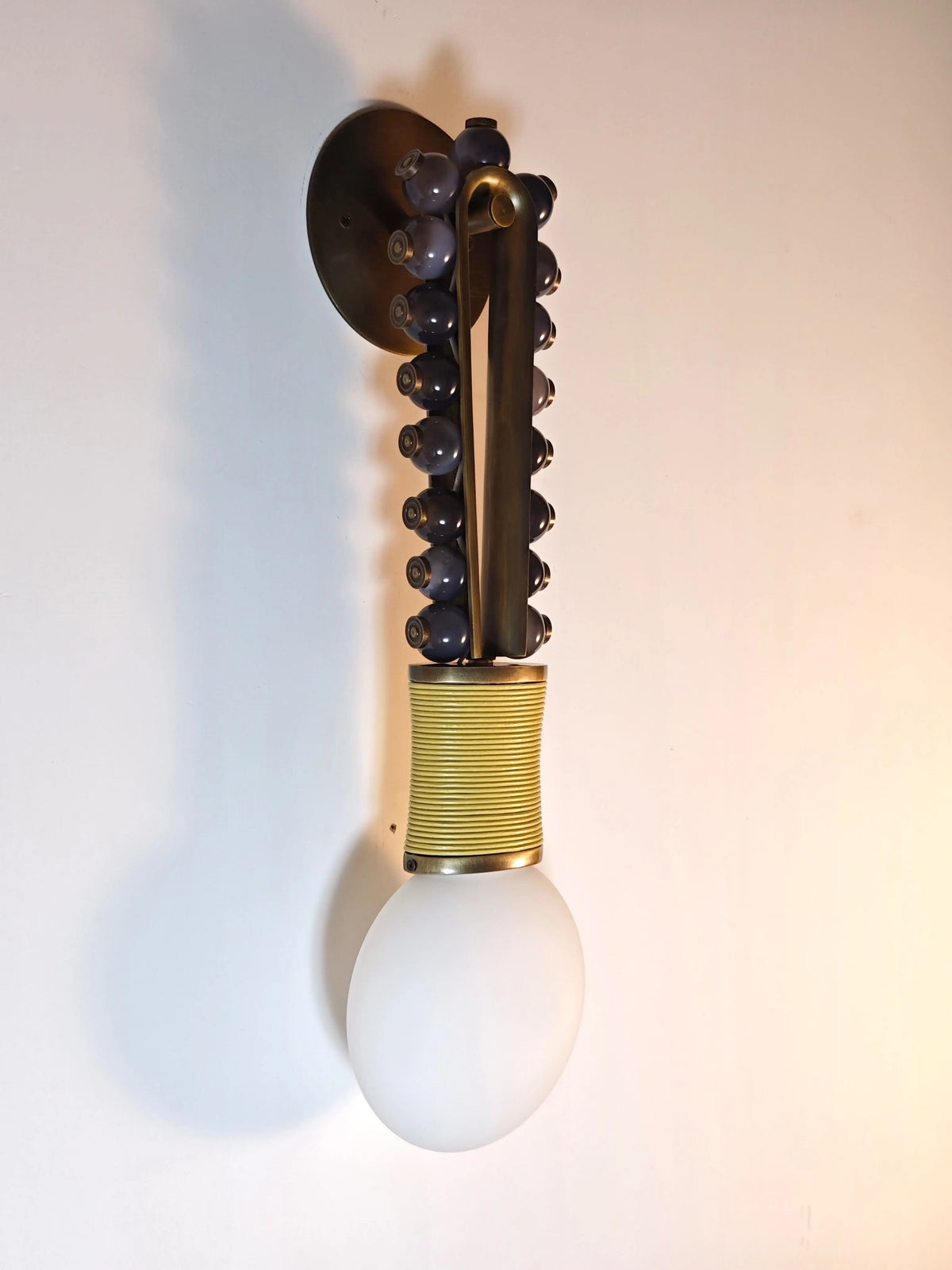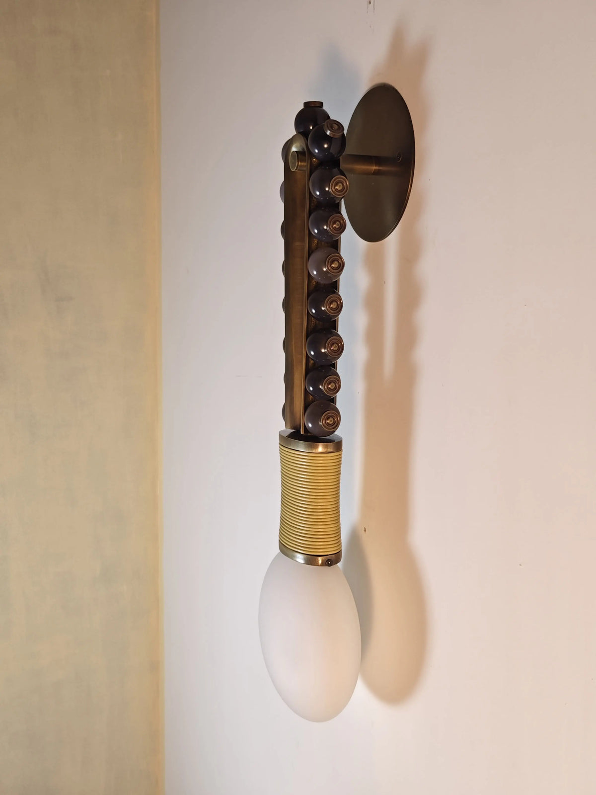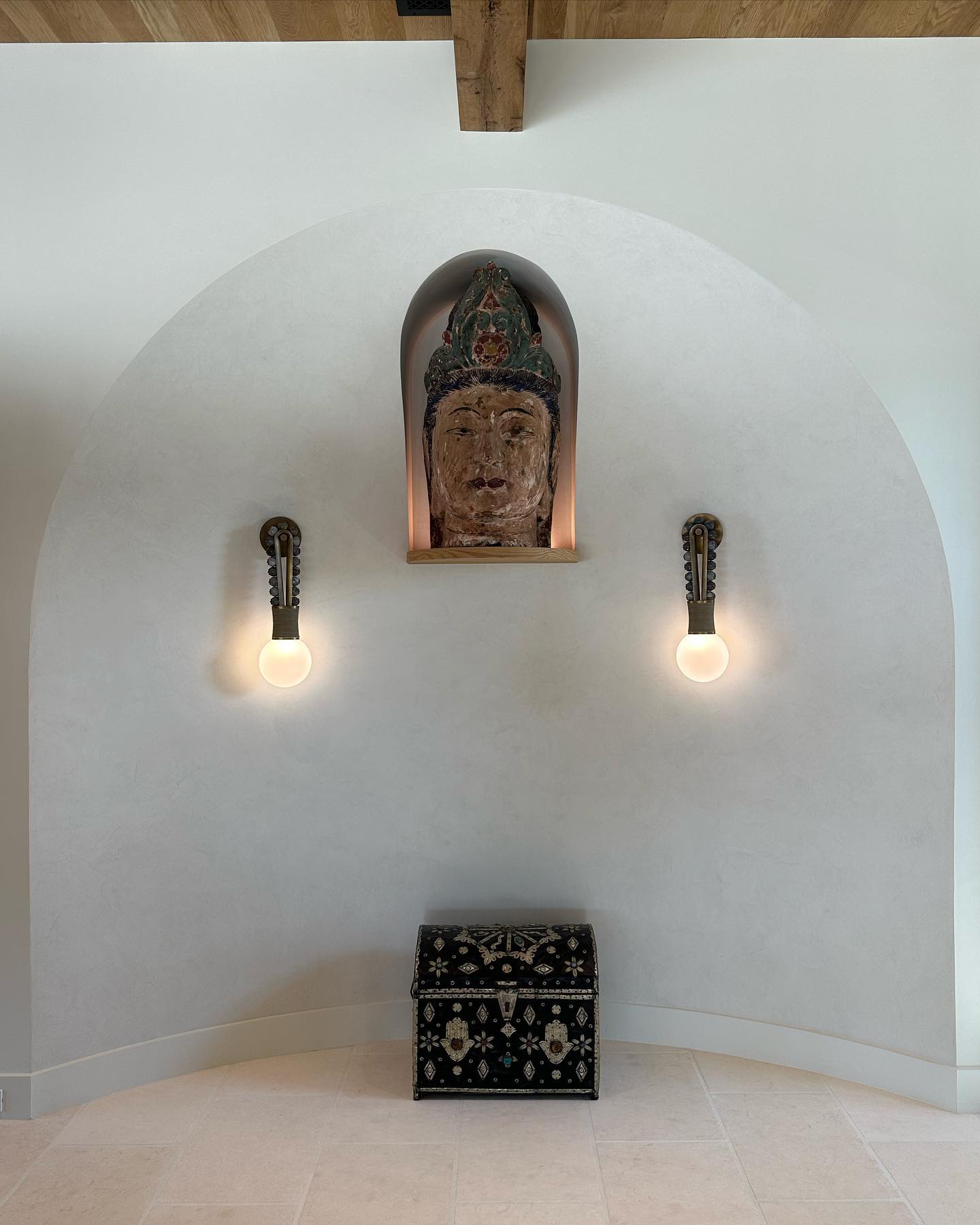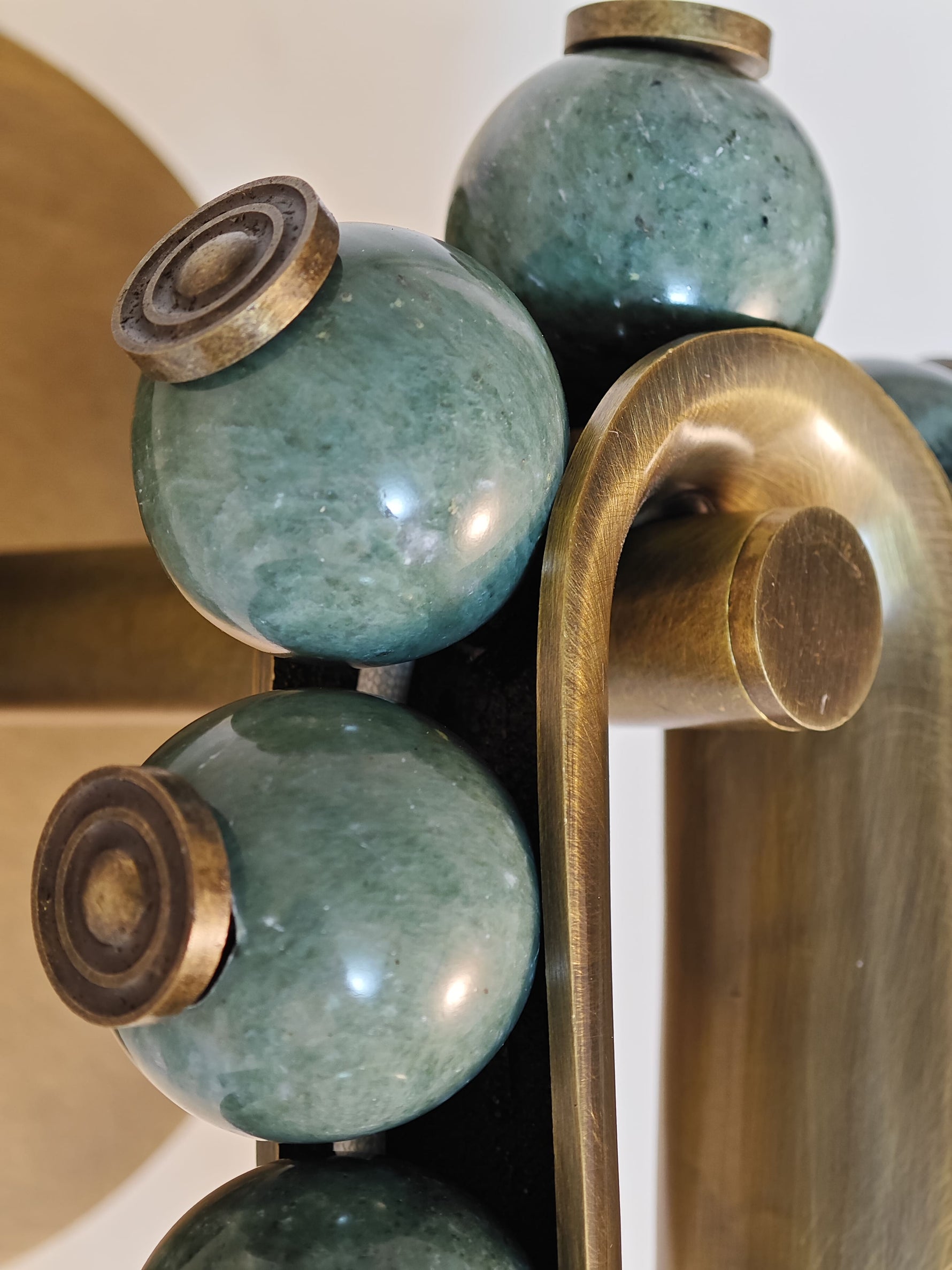 - The Talisman Loop Sconce is a work of art in itself. Inspired by the intricate details of ancient Persian architecture, this one-of-a-kind sconce features a captivating display of semi-precious stones. Agate, jasper, and jade beads are delicately pierced and secured to a hand-crafted brass frame, creating a truly unique and luxurious lighting experience.