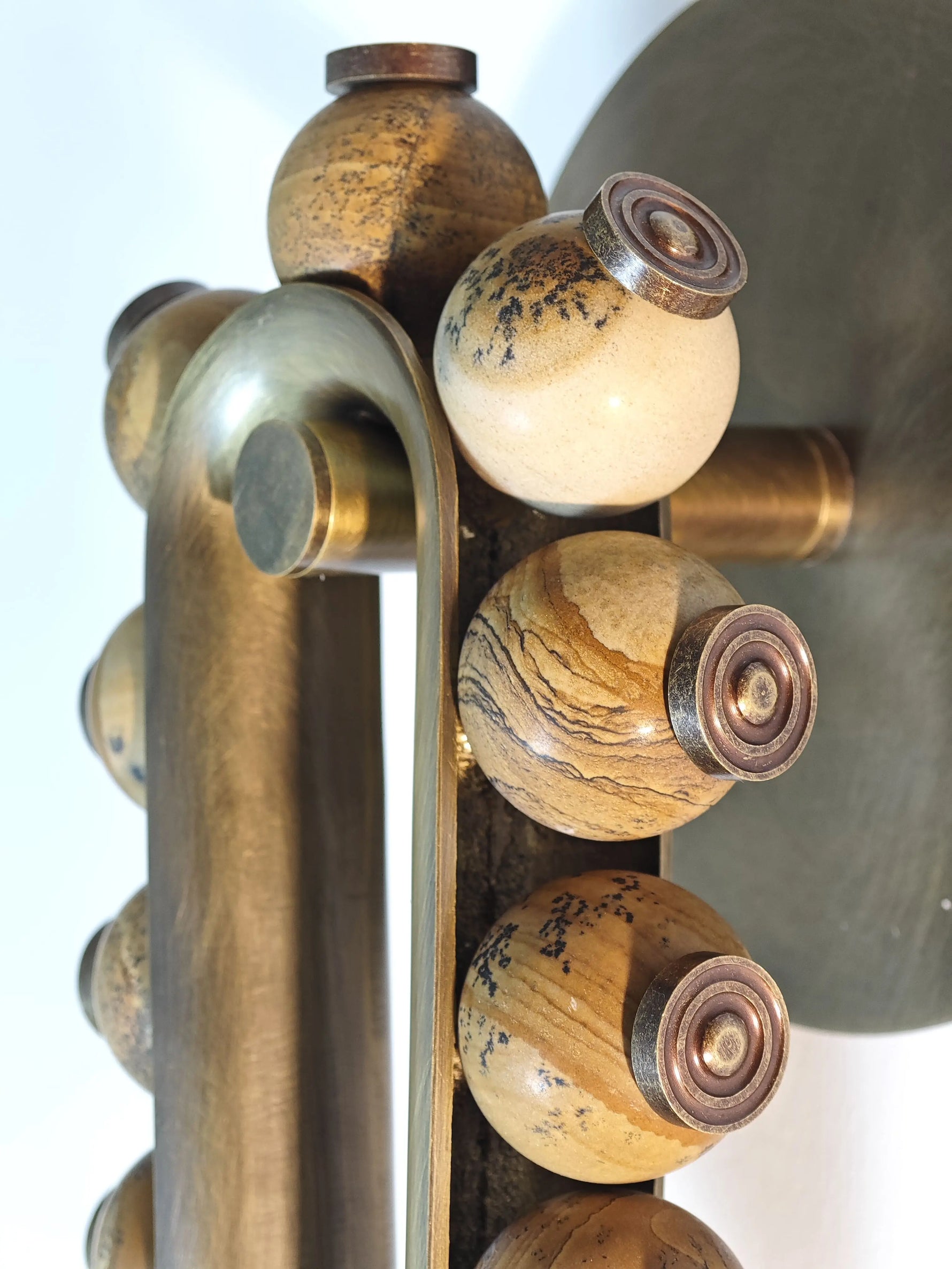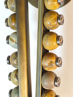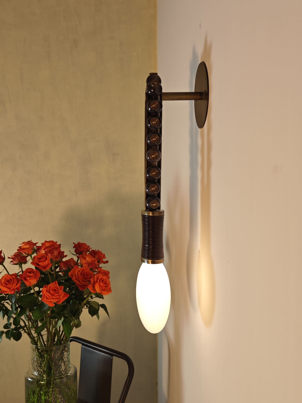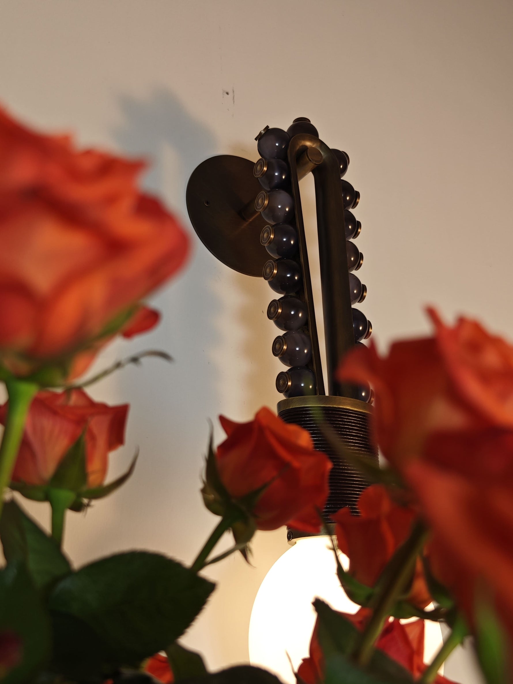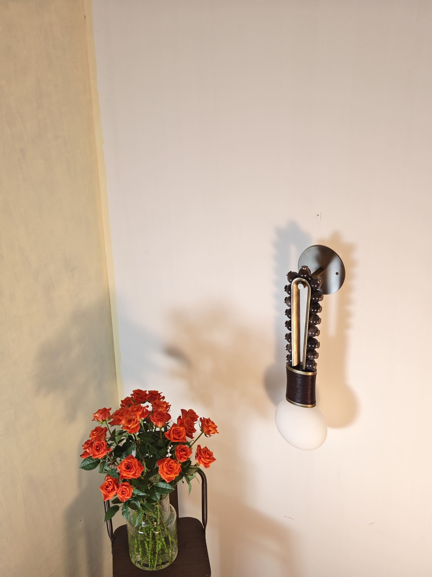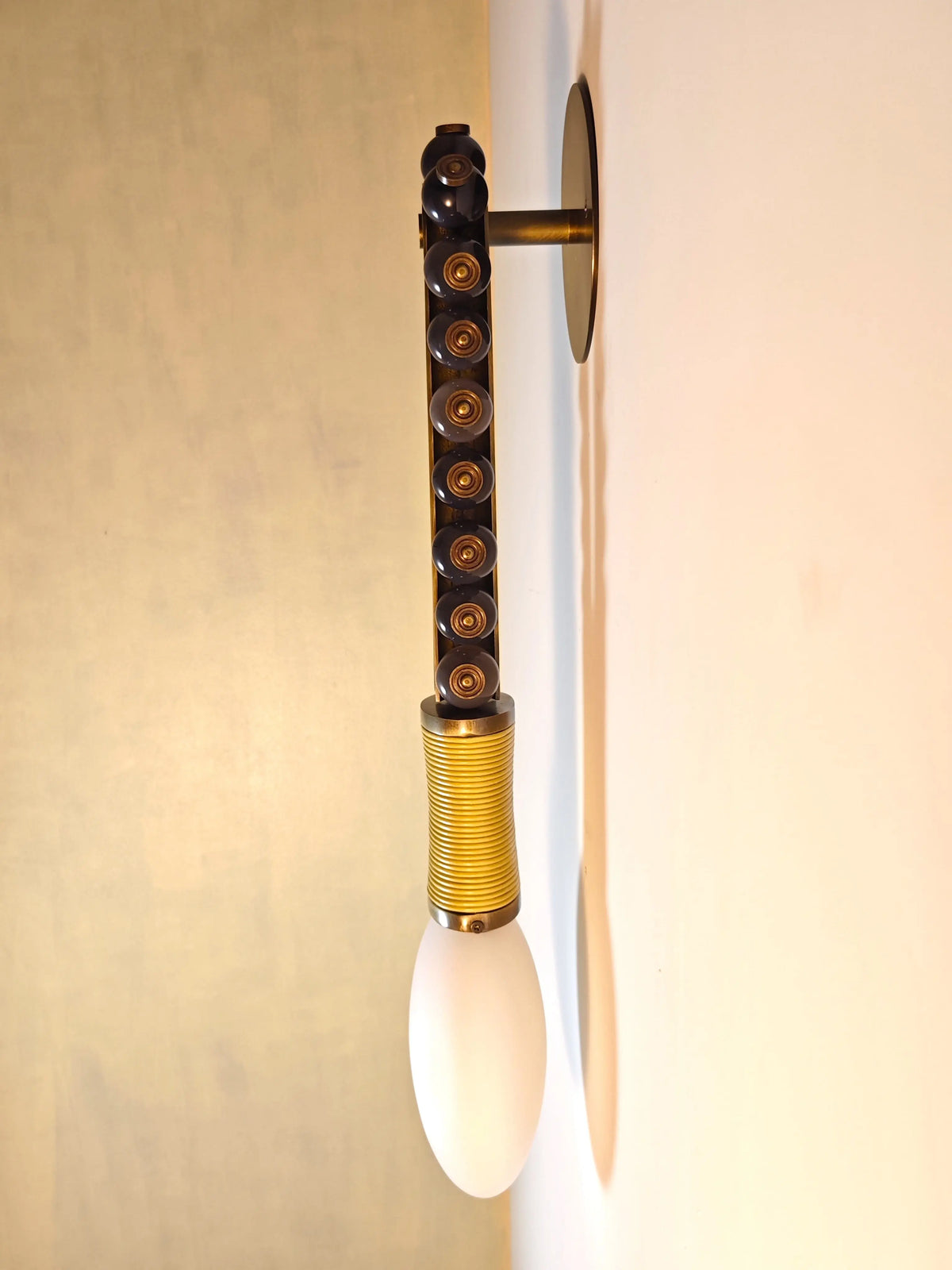 - The Talisman Loop Sconce is a work of art in itself. Inspired by the intricate details of ancient Persian architecture, this one-of-a-kind sconce features a captivating display of semi-precious stones. Agate, jasper, and jade beads are delicately pierced and secured to a hand-crafted brass frame, creating a truly unique and luxurious lighting experience.