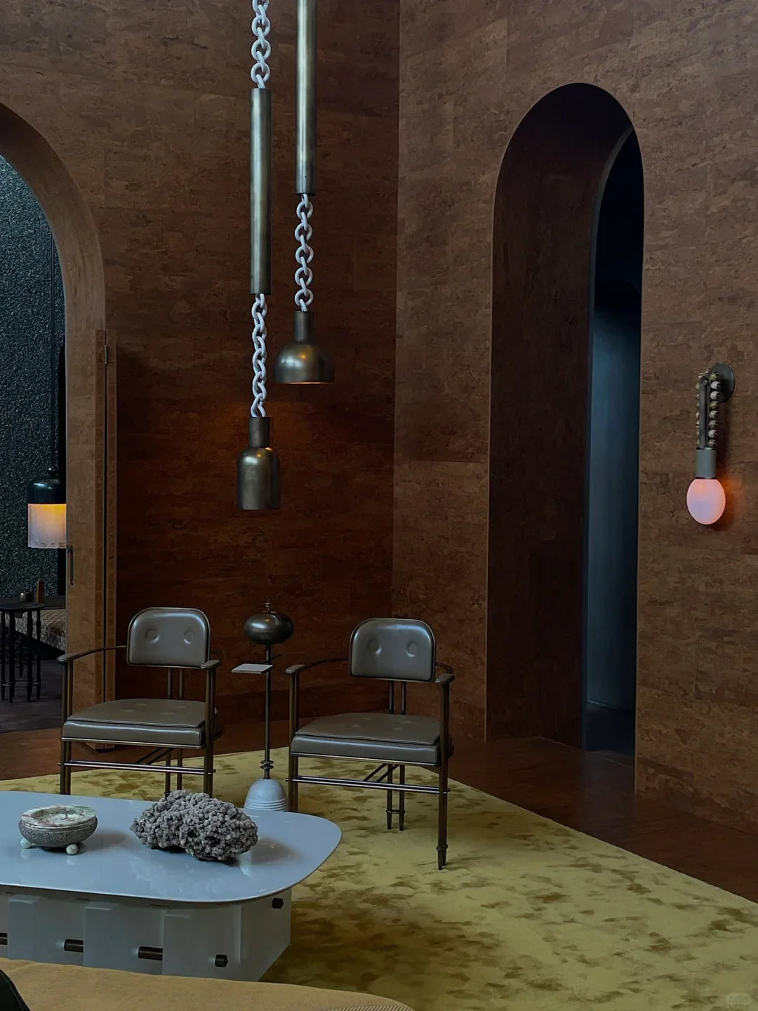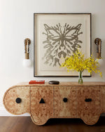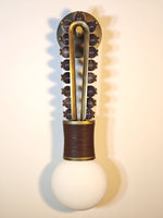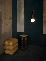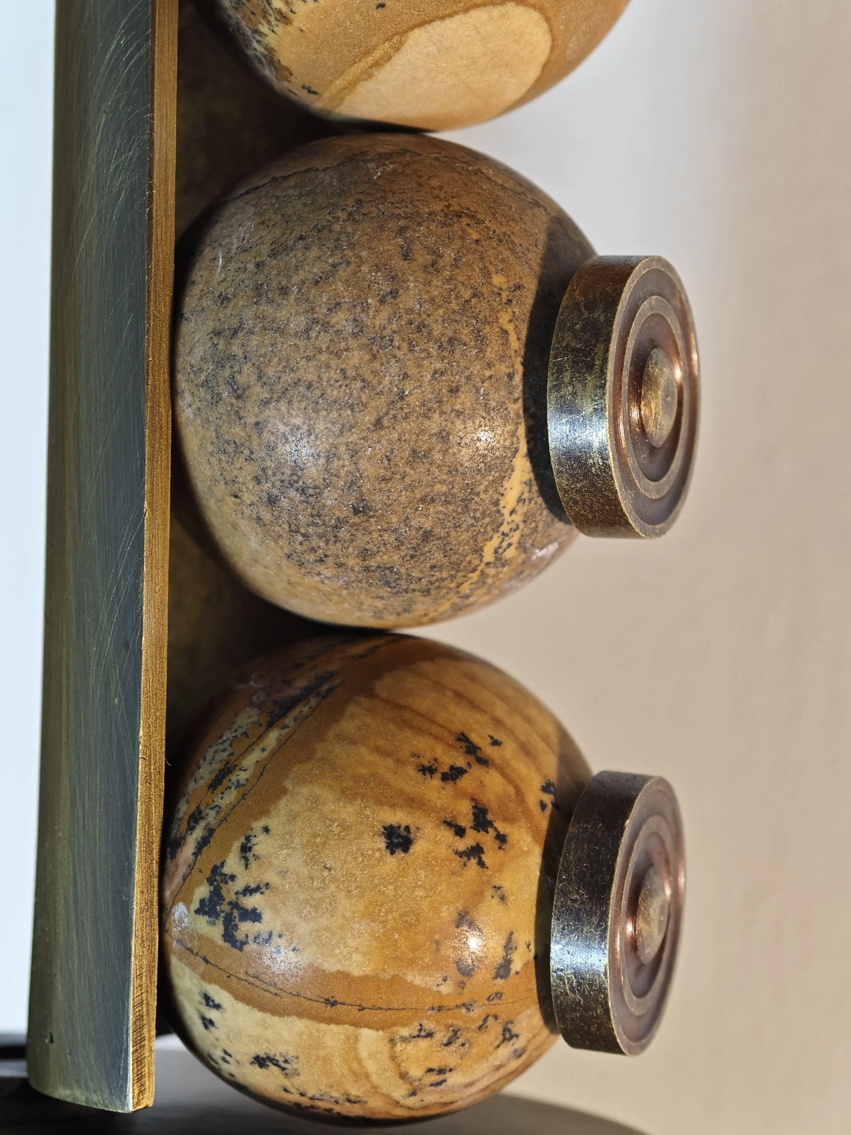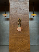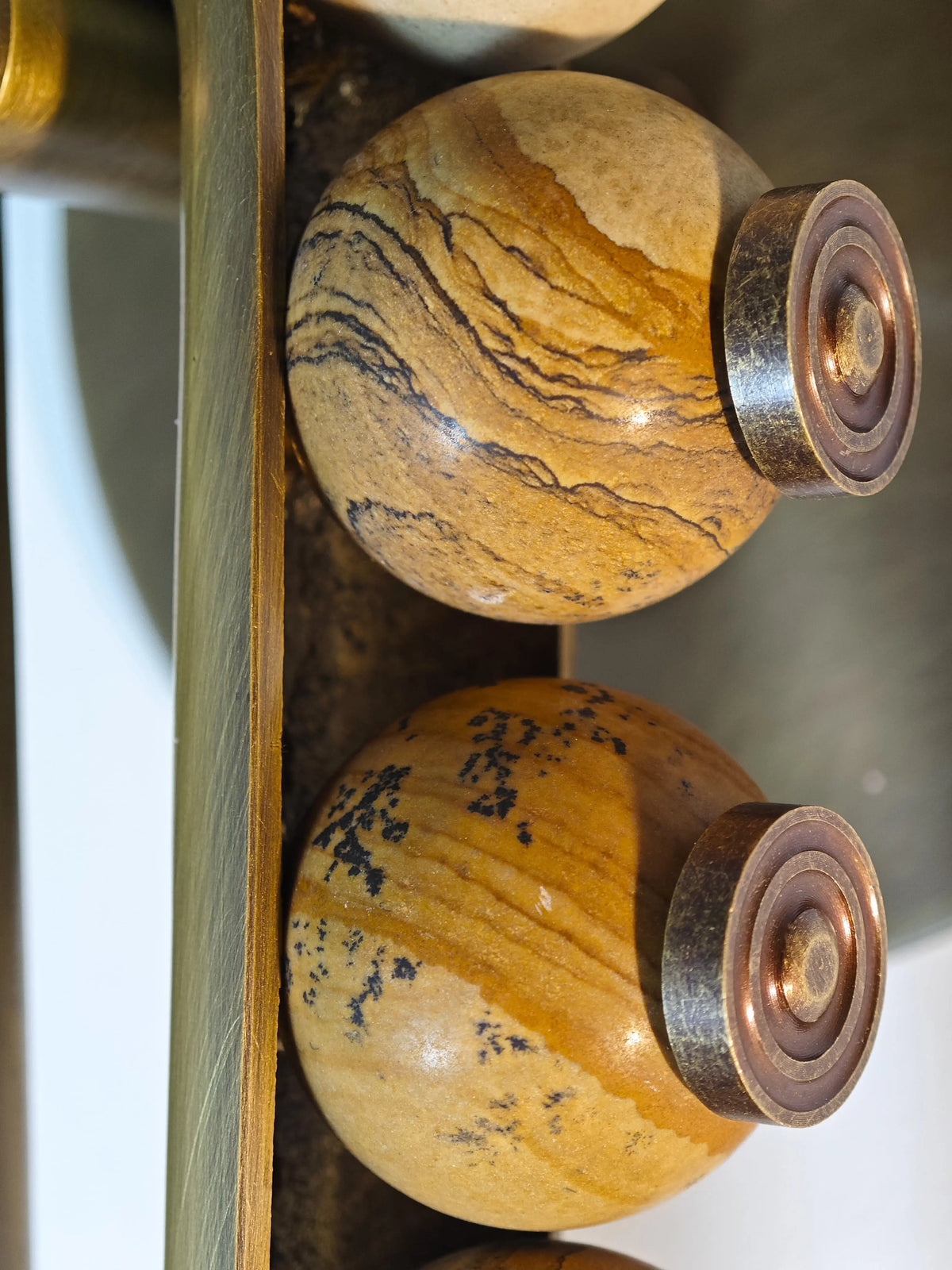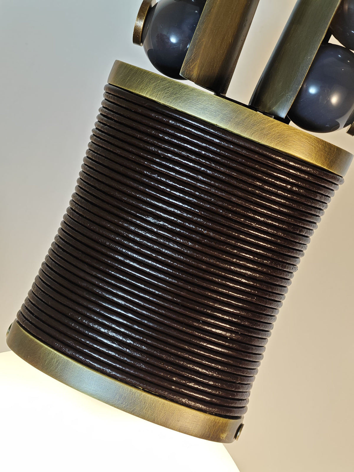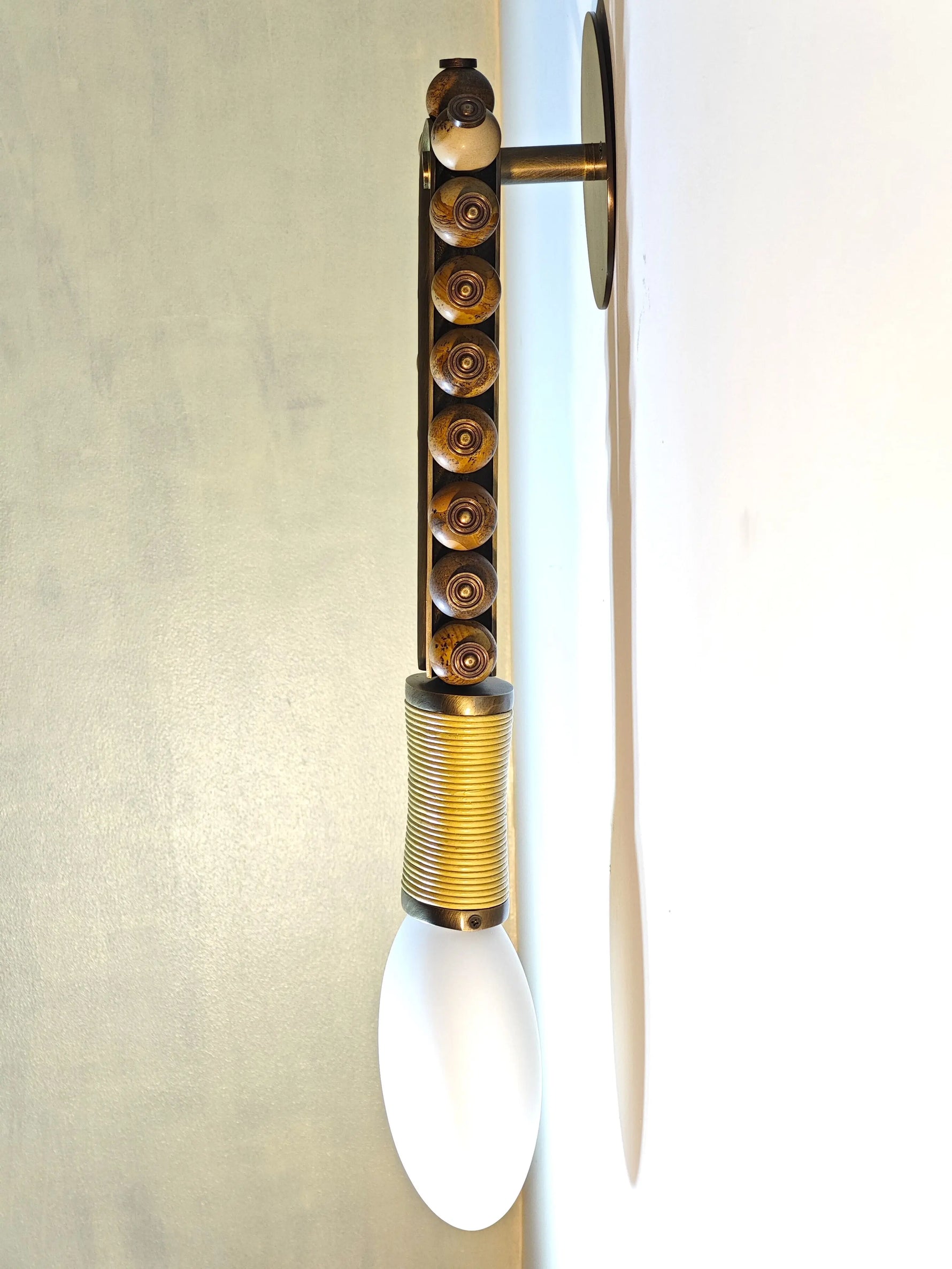 - The Talisman Loop Sconce is a work of art in itself. Inspired by the intricate details of ancient Persian architecture, this one-of-a-kind sconce features a captivating display of semi-precious stones. Agate, jasper, and jade beads are delicately pierced and secured to a hand-crafted brass frame, creating a truly unique and luxurious lighting experience.