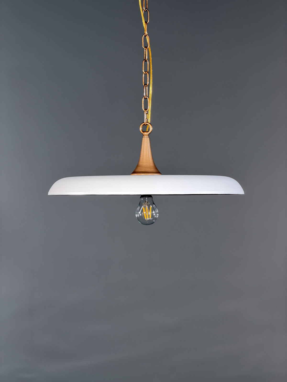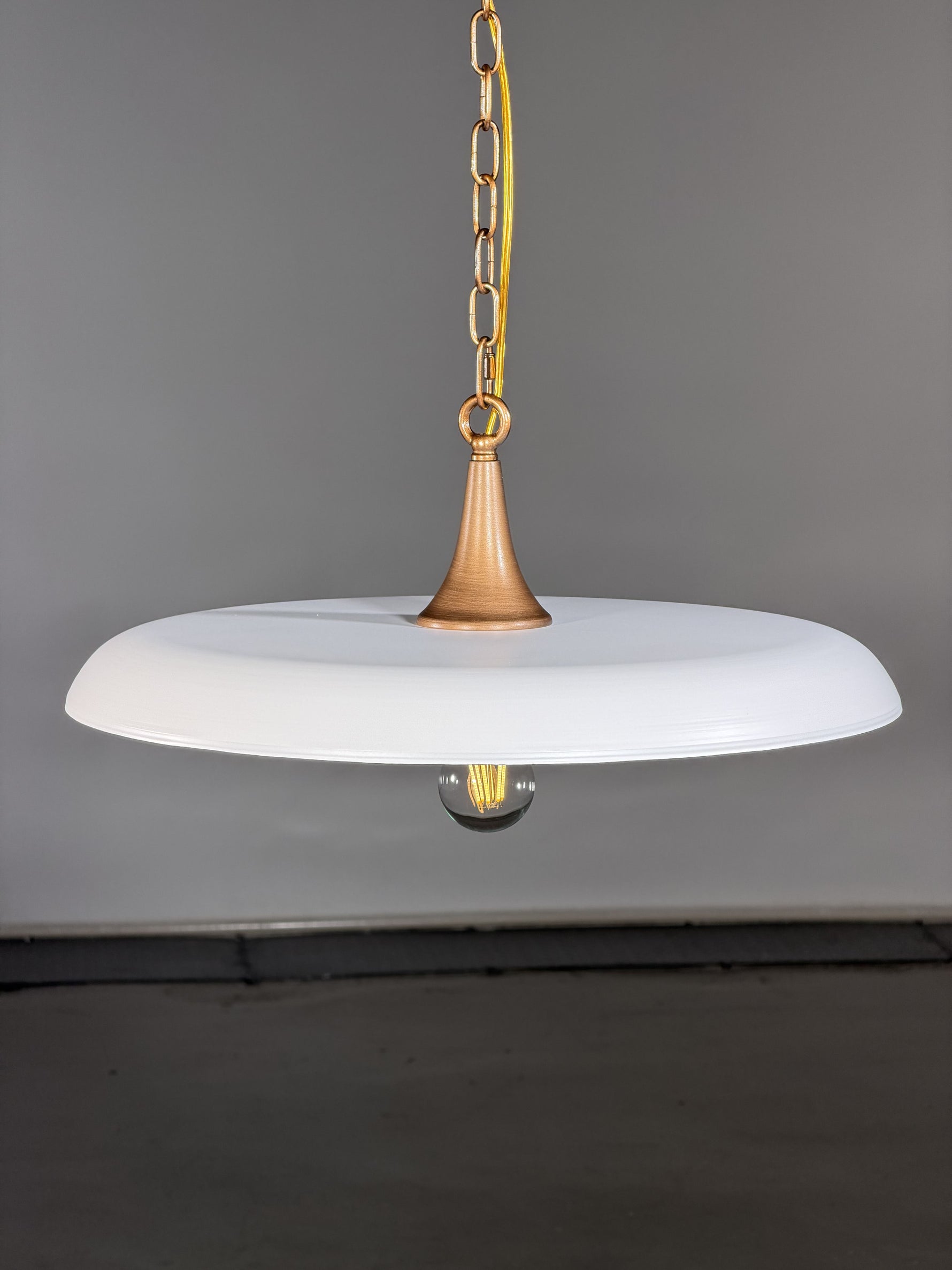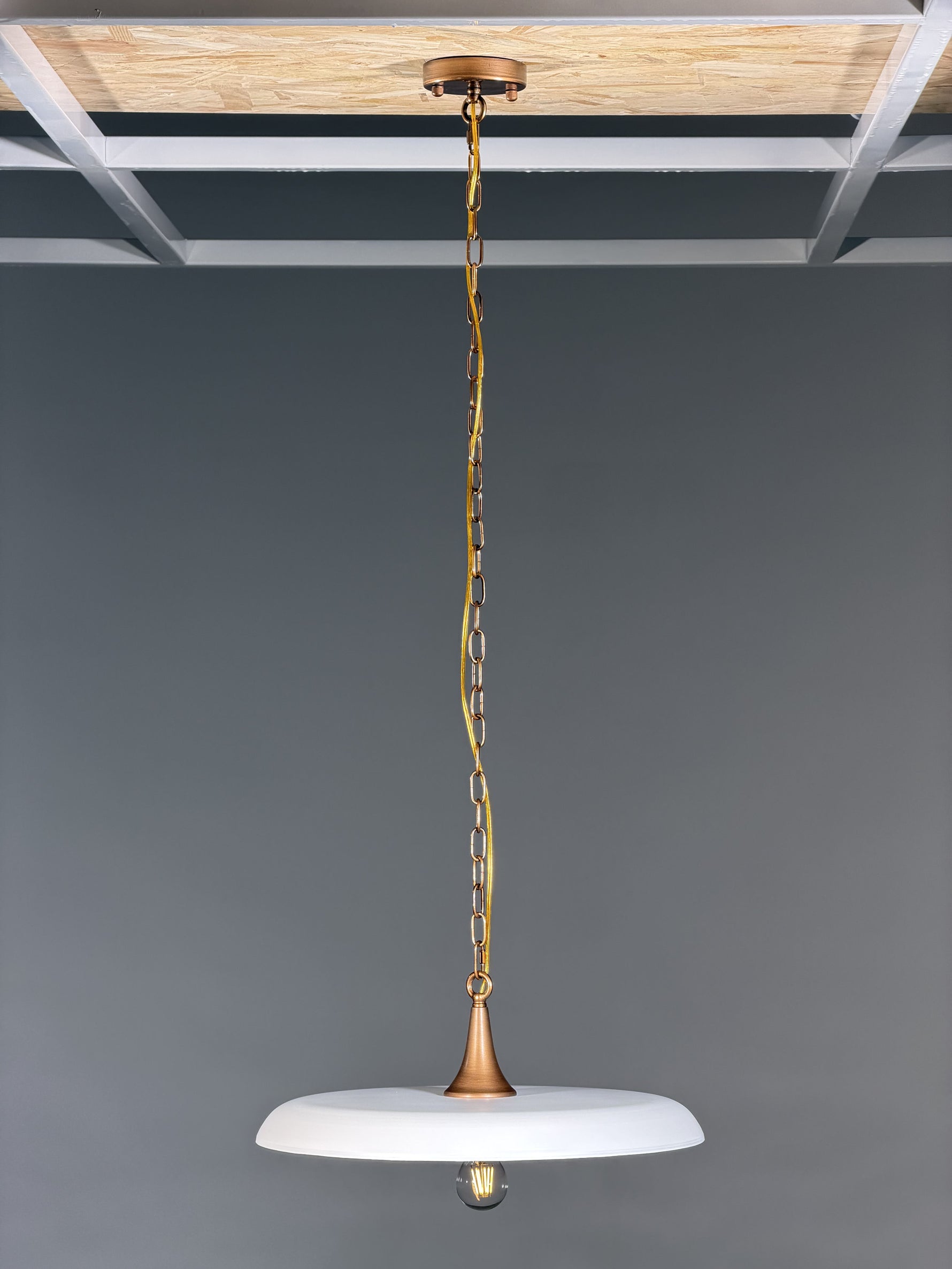 • Elegant and thoughtfully designed, the Victor Pendant Lamp makes a profound statement in any room. Its shade, crafted with substantial 3/32-inch thick stainless steel, provides a beautiful and tactile presence. On the outside, a smooth, uniform matte white finish offers a soft, vintage glow that illuminates your space with a vibrant yet gentle light.