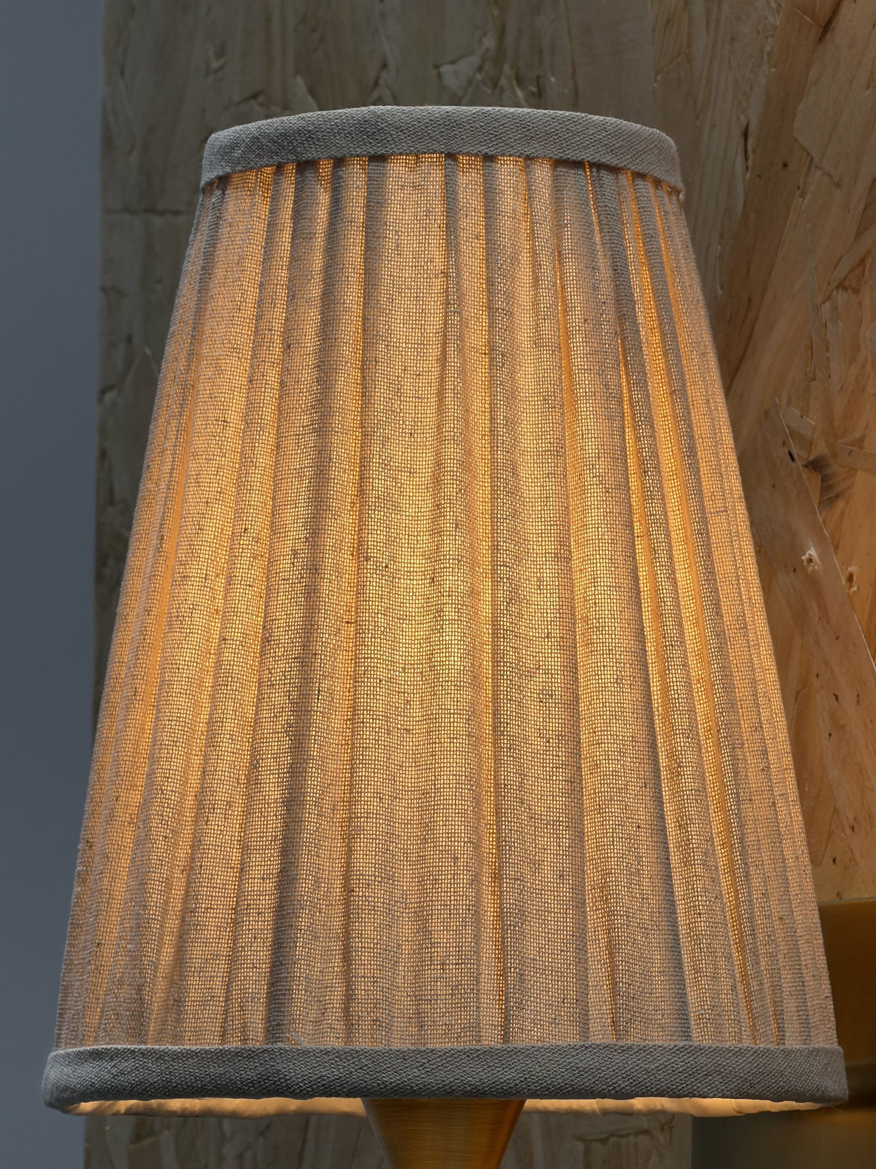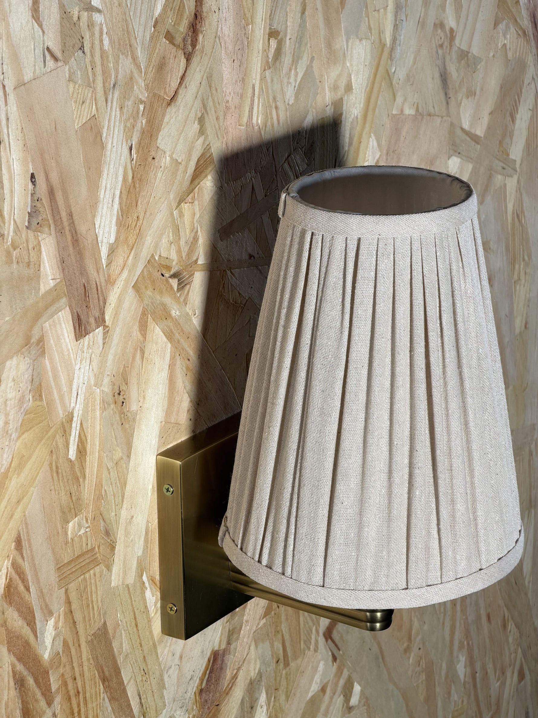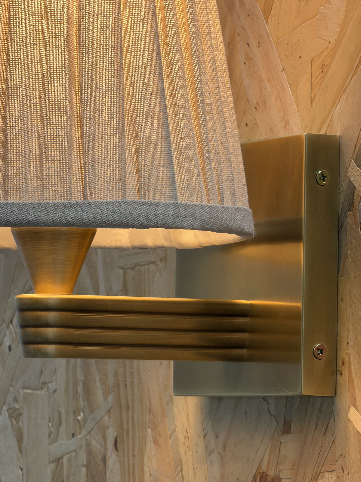 • Our Viola Wall Sconce emits a soft glow for the hallway or living room. Inspired by Rome, a linen shade has been hand-pleated alongside a bespoke molded wall arm in solid brass. Fluted detail adds extra texture and depth to this piece, with the brass finish made to patina over time.