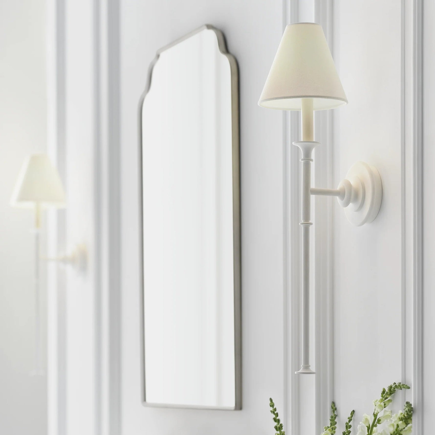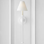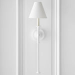 - A striking blend of classic and contemporary design, the Yi Series Wall Sconce features natural steel bars that gracefully intersect with acrylic and metal hubs. The simple candles and white conical shades add a touch of timeless elegance, while the juxtaposition of materials and forms creates a visually captivating piece. This versatile sconce will effortlessly complement a variety of interior styles, from traditional to modern, making it a perfect choice for any space.