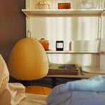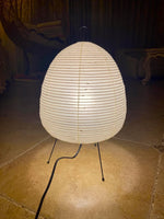 - Discover the timeless elegance of the Akari 1A table lamp, a masterpiece designed by the renowned Isamu Noguchi. This exquisite fixture features a rounded, sculptural base that supports a delicate washi paper lampshade. The lampshade's intricate texture and soft, warm glow create a cozy and inviting atmosphere. The Akari 1A table lamp is more than just a fixture; it is a work of art that will add a touch of sophistication and style to any room.