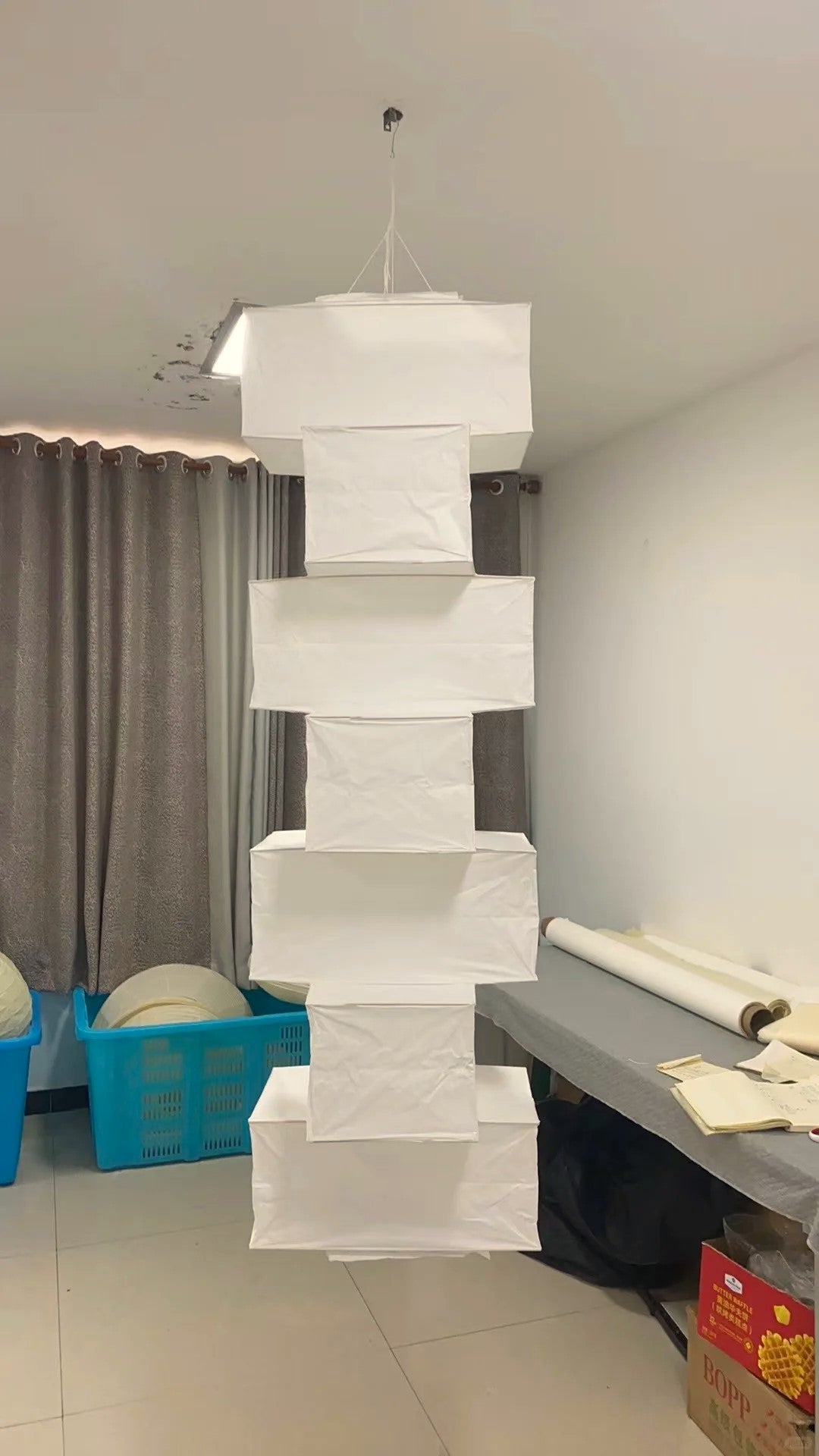 - Elevate your space with the iconic Akari 30P Pendant Light, a masterpiece by renowned designer Isamu Noguchi. This stunning pendant features a unique composition of rectangular blocks stacked elegantly on top of each other, creating a striking sense of layering and depth. Crafted from hand-made washi paper and bamboo ribbing, the lamp emits a soft, diffused glow that enhances any room with warmth and sophistication.