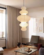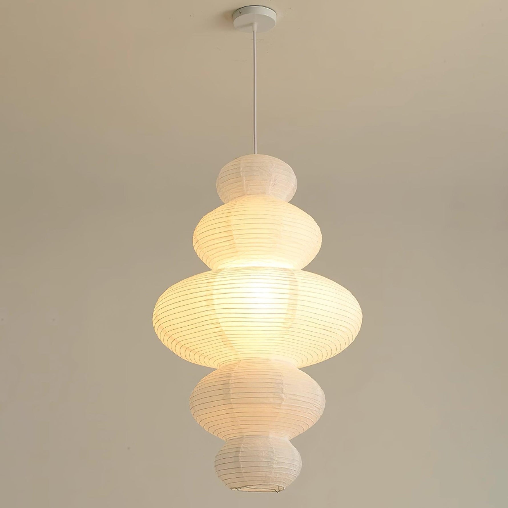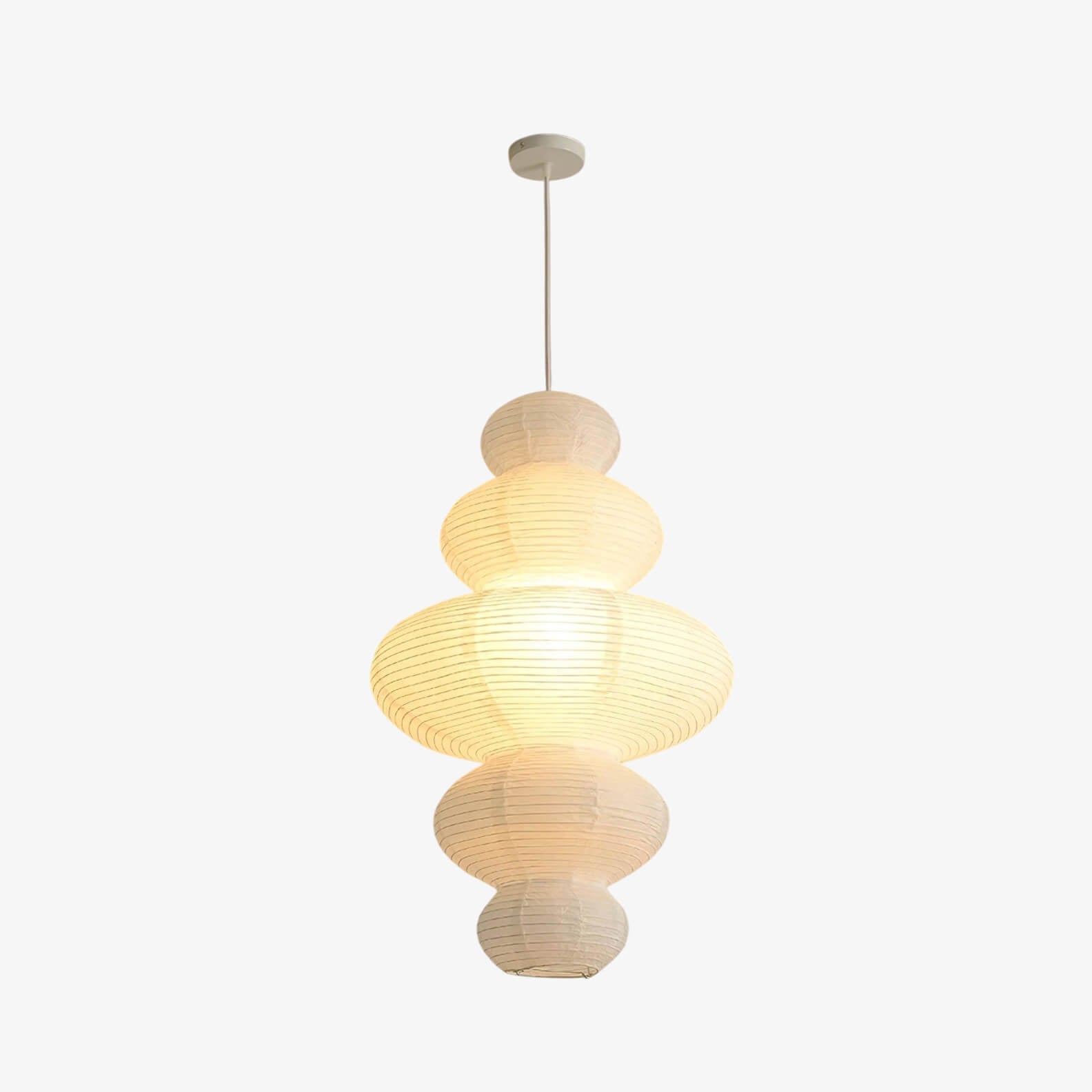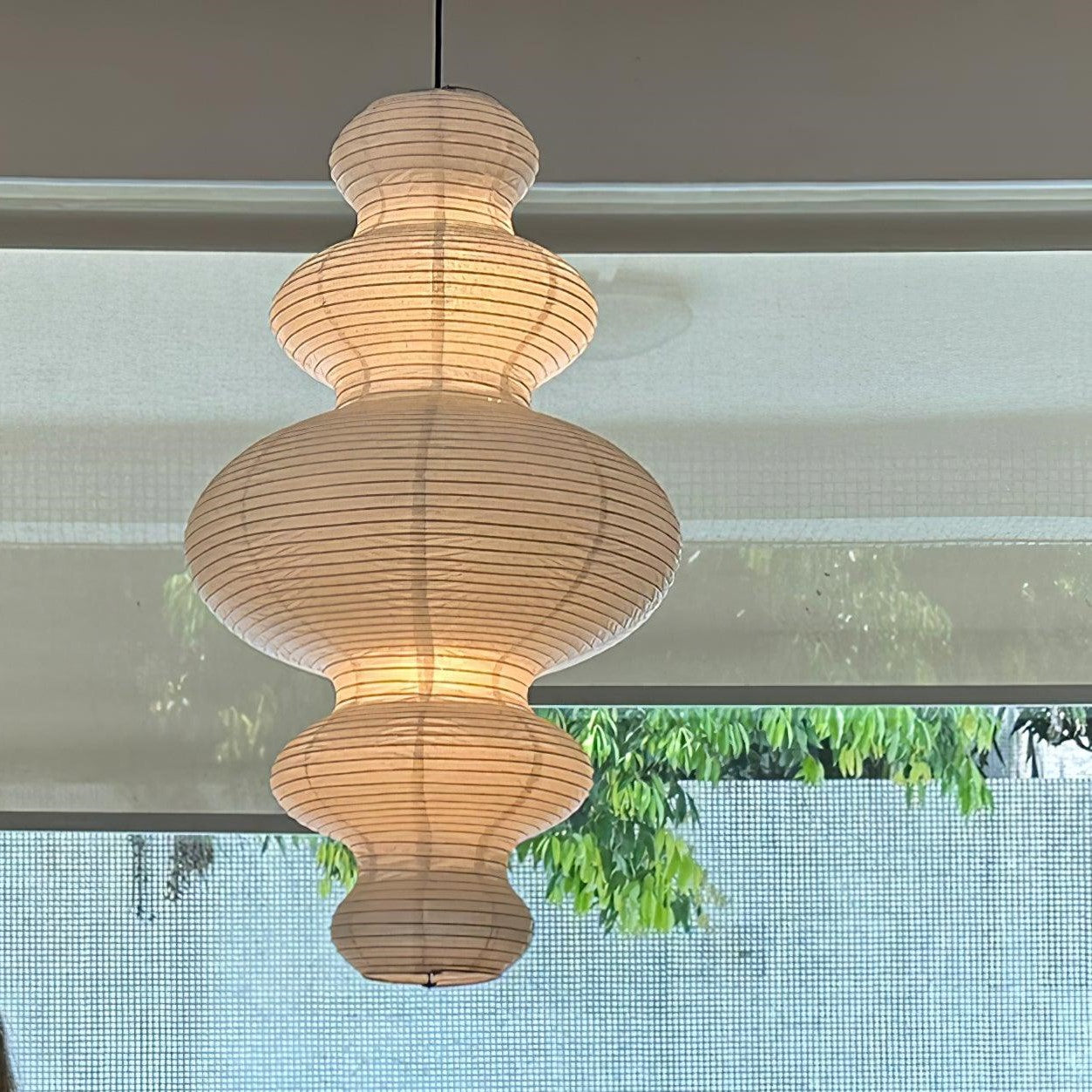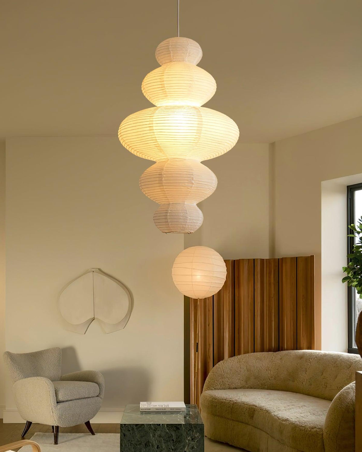 - Transform your space with the Akari 70D Pendant Lighting, a masterpiece designed by the legendary Isamu Noguchi. This elegant pendant light features a lampshade made from delicate mulberry paper, offering a warm, cozy glow that instantly elevates any room. Multiple sections protrude to give it a layered feel and enhance the comfort of the room.