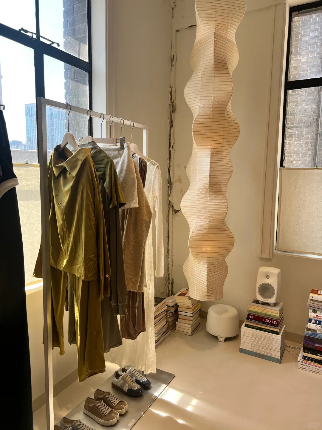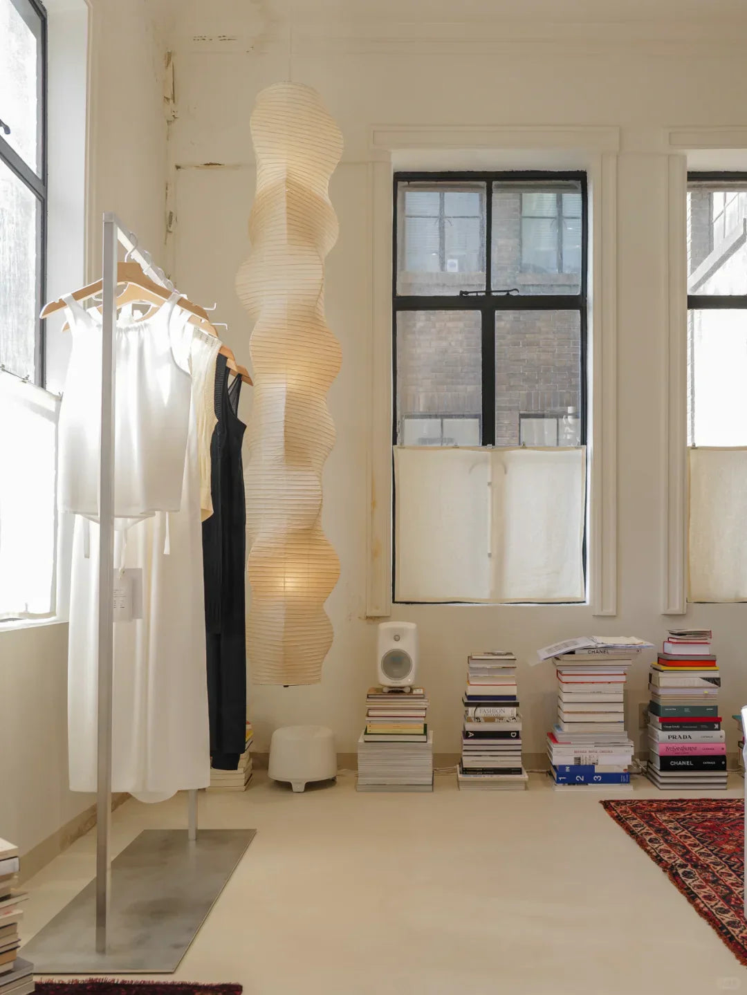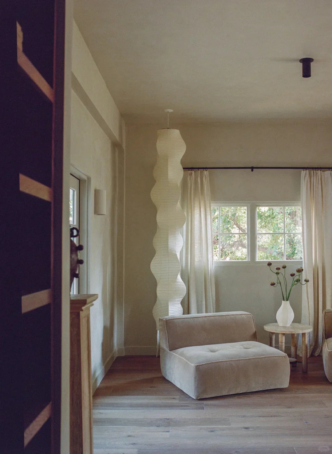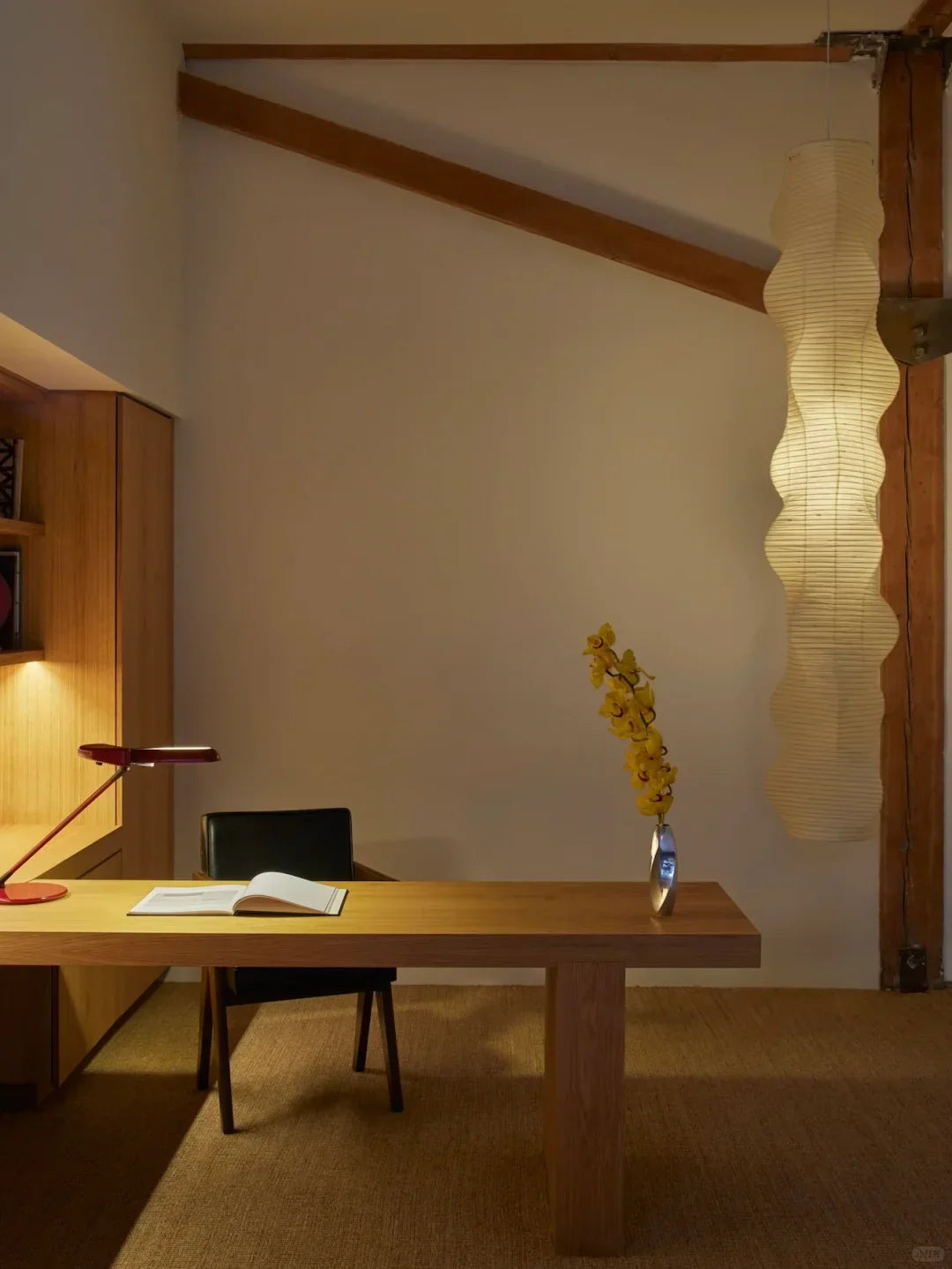 - The Akari B Pendant Lamp rich in layers and lines, creating a sense of depth and artistic elegance. Standing at an impressive 92.5 inches tall, this commanding piece is designed to make a bold statement in high-ceiling environments. Its generous height ensures a strong visual presence, effortlessly filling expansive spaces with warmth and sophistication.