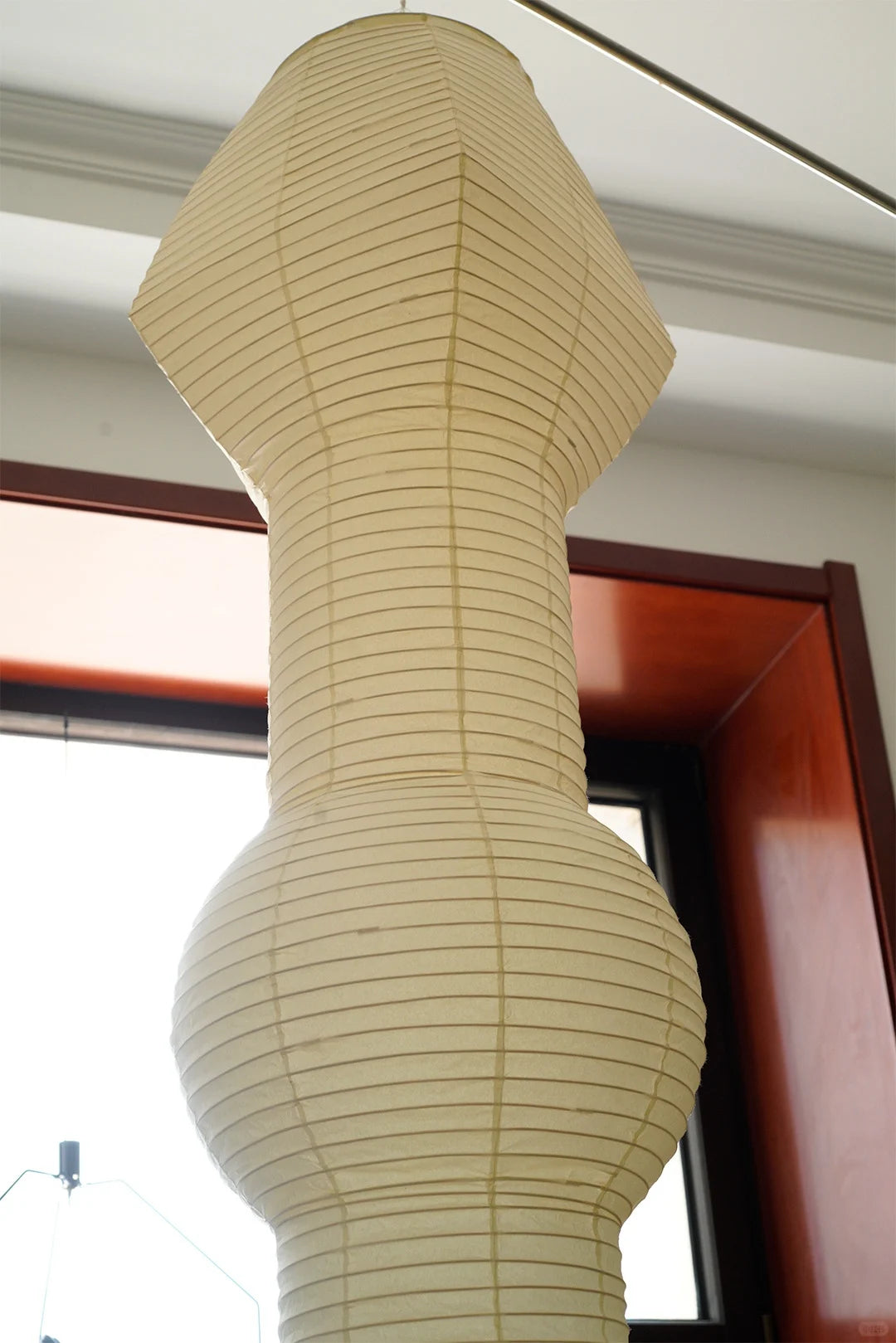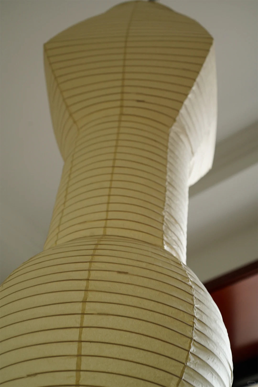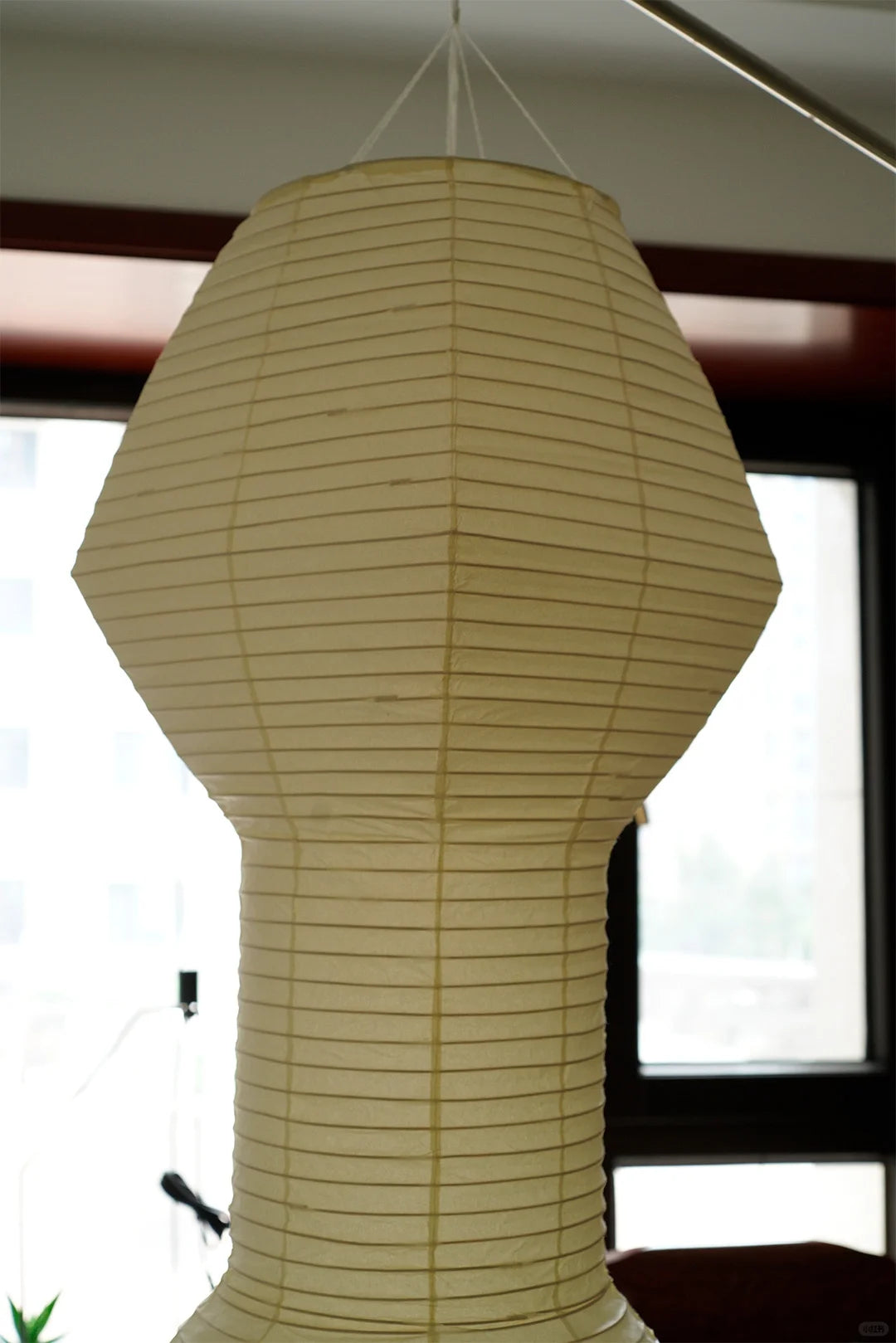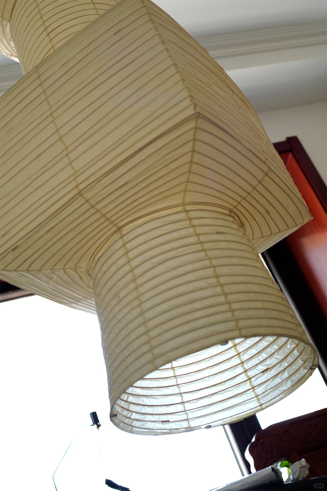 - Featuring a softly glowing off-white Japanese washi paper shade supported by an intricately woven bamboo frame. The organic texture of the handmade paper and the natural bamboo structure harmonize seamlessly, creating a sculptural yet minimalist silhouette. Suspended from a black metal bracket and nylon braided wire, this pendant light balances modern simplicity with artisanal warmth.