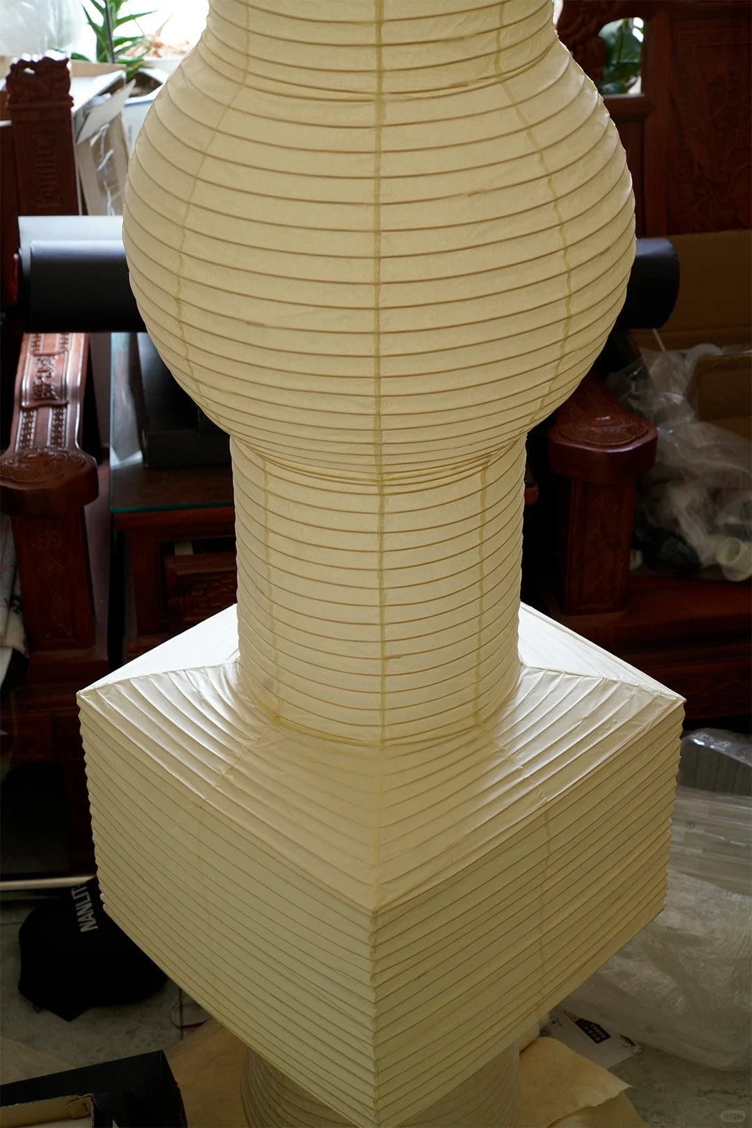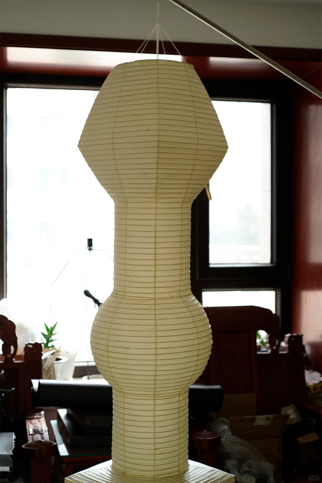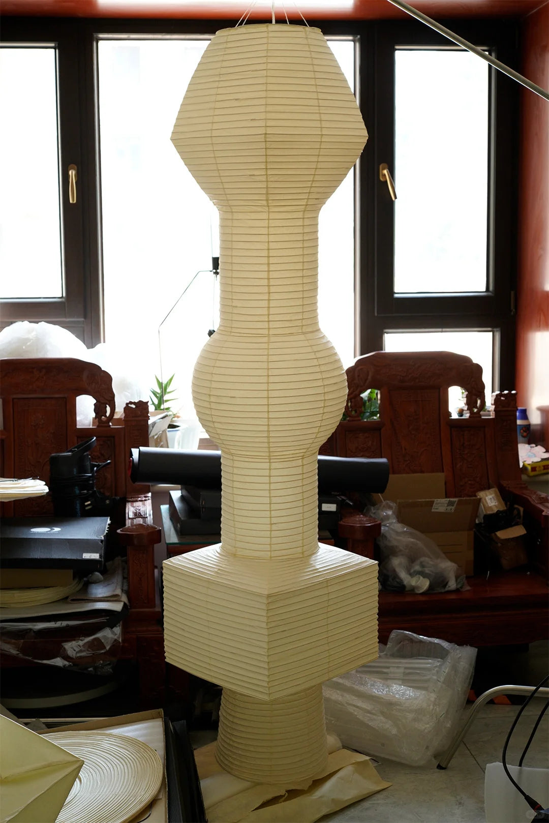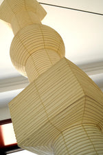 - Featuring a softly glowing off-white Japanese washi paper shade supported by an intricately woven bamboo frame. The organic texture of the handmade paper and the natural bamboo structure harmonize seamlessly, creating a sculptural yet minimalist silhouette. Suspended from a black metal bracket and nylon braided wire, this pendant light balances modern simplicity with artisanal warmth.
