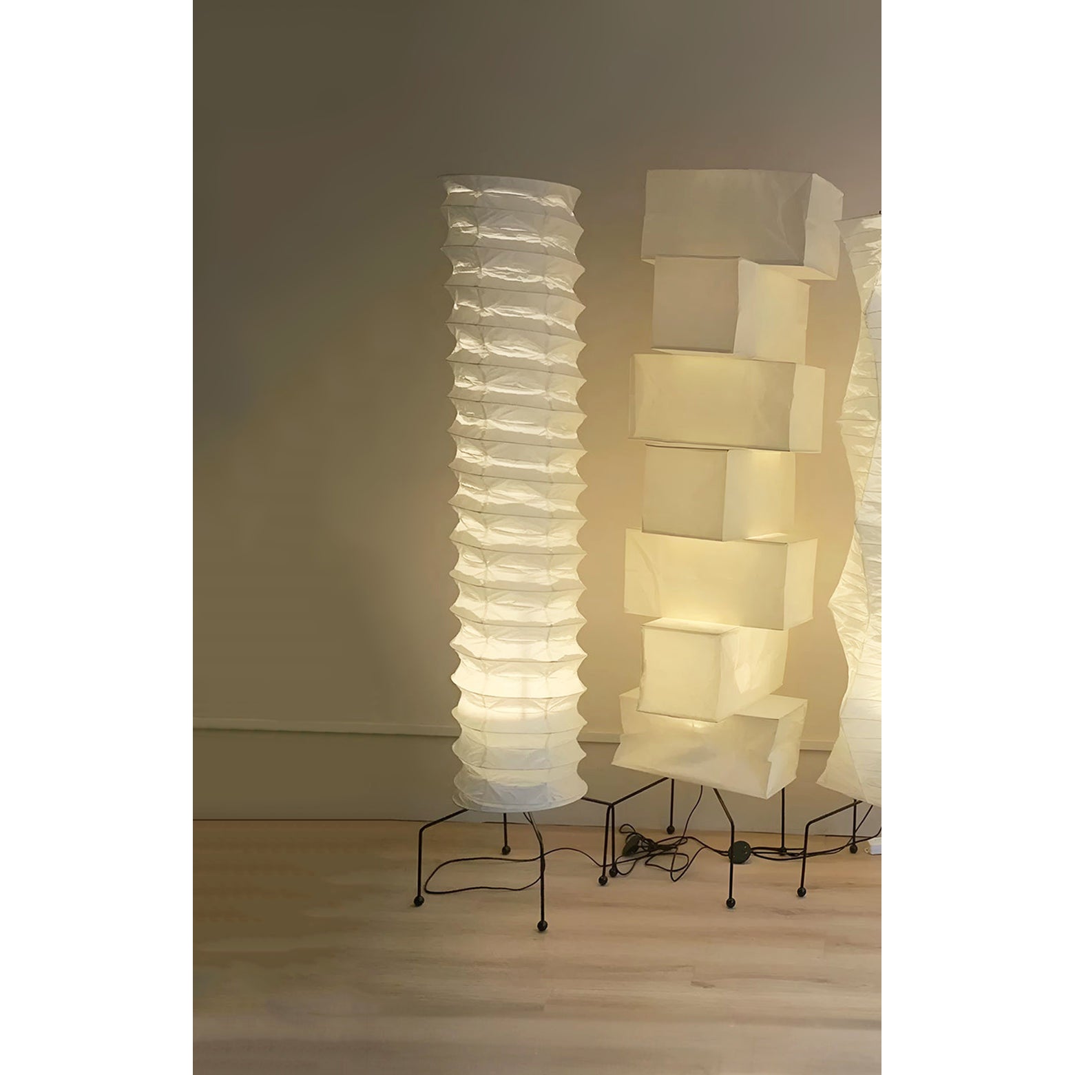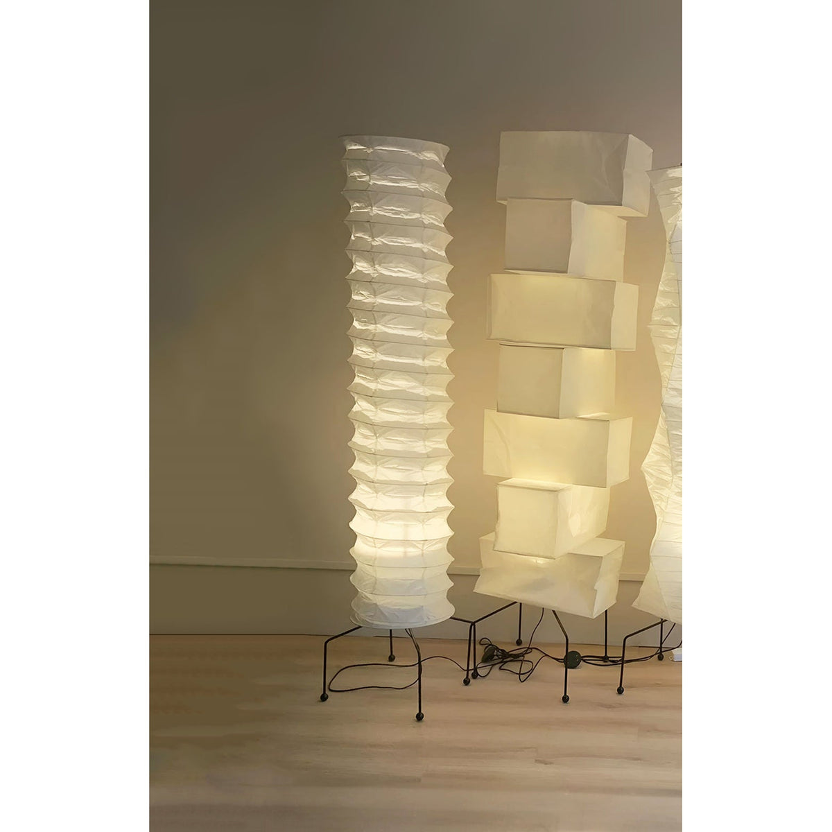 - Each Akari lamp is a unique blend of traditional Japanese craftsmanship and Noguchi's modernist aesthetic. The delicate interplay of light and shadow casts a warm, inviting glow, making it the perfect centerpiece for any contemporary living space.