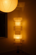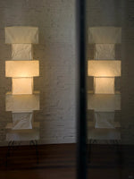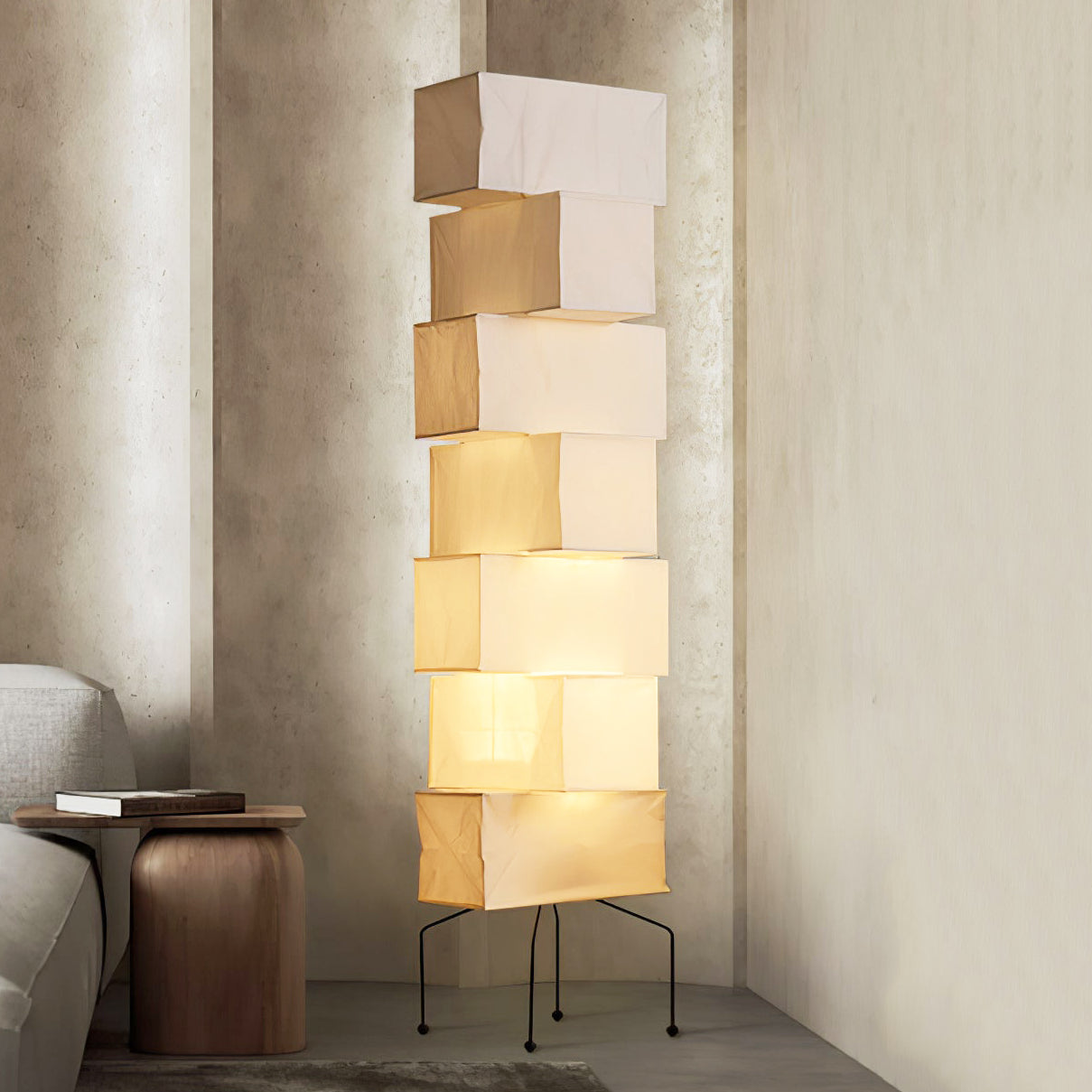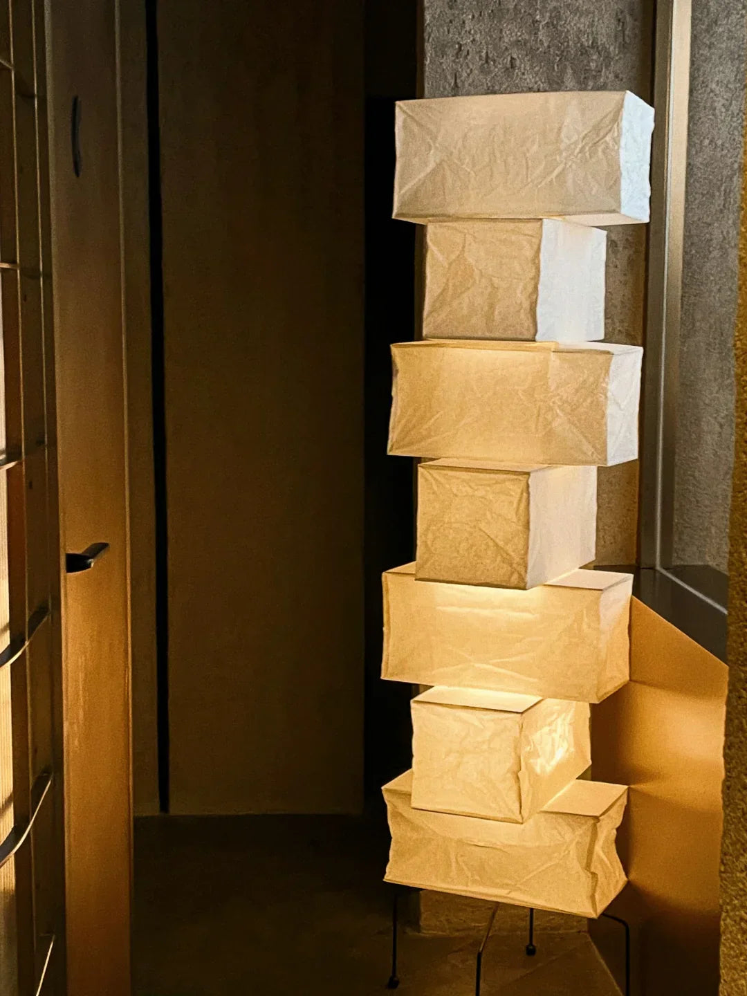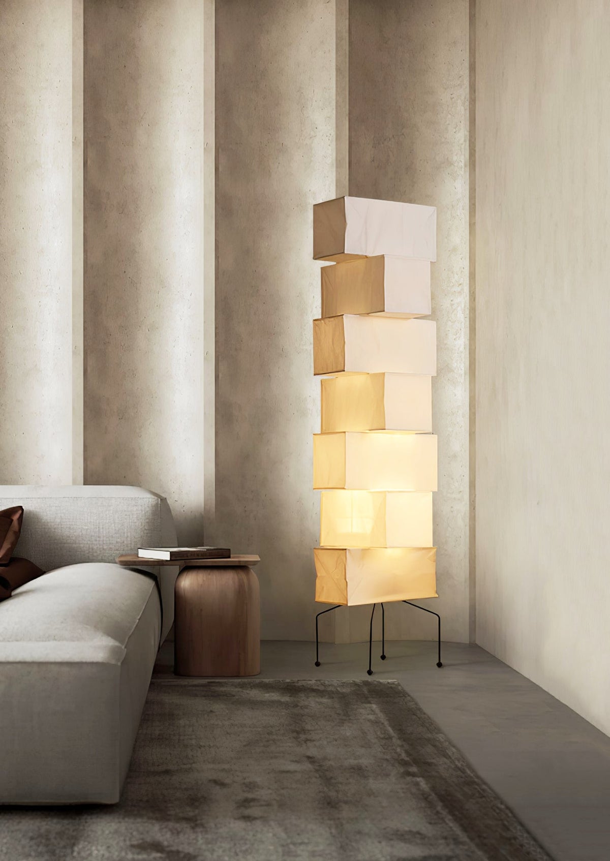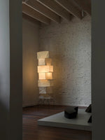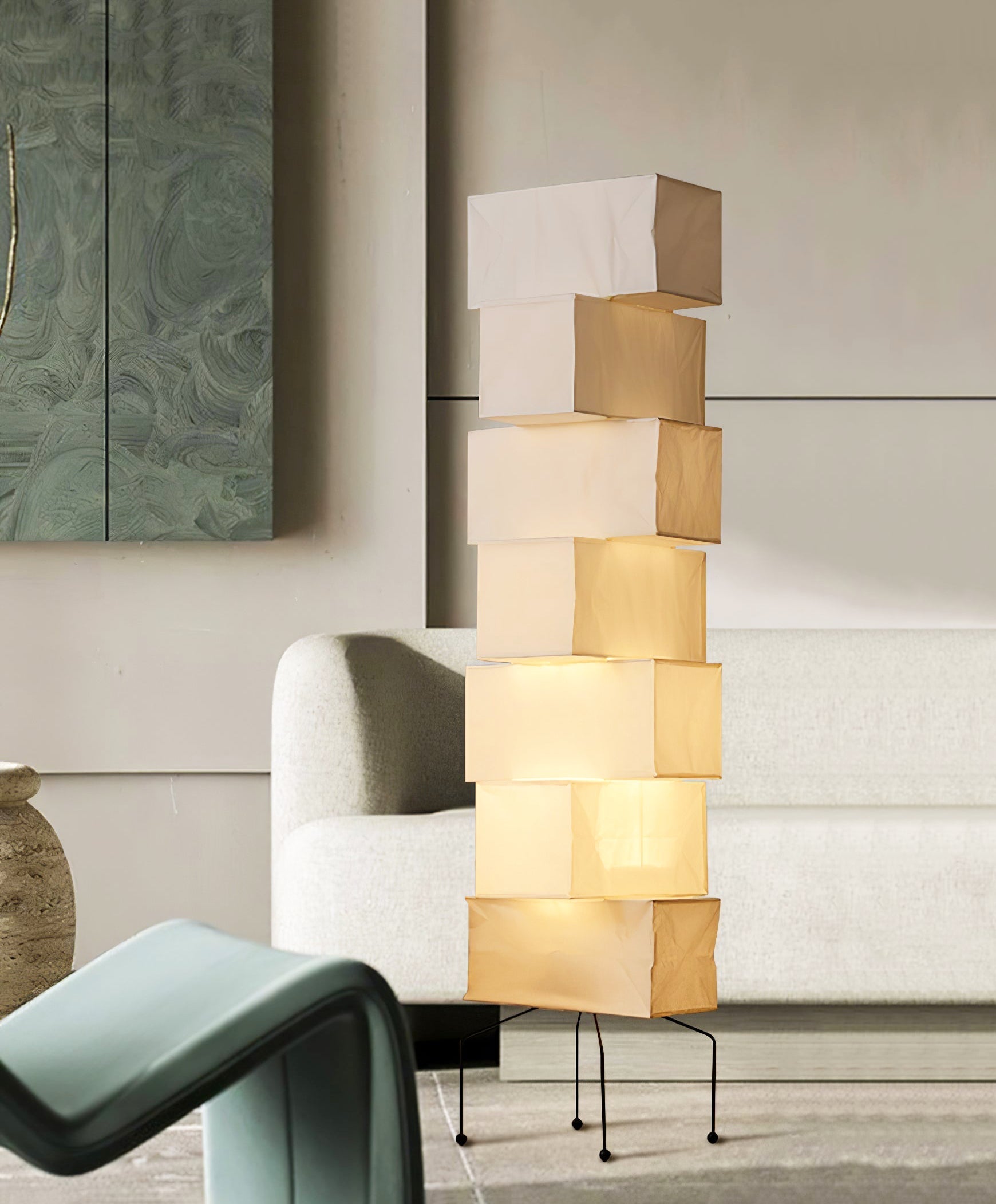 • The Akari UF4-L10 Floor Lamp is a stunning example of modern Japanese design. Crafted with meticulous attention to detail, this lamp features a series of stacked square forms that create a captivating layered look. The interplay of light and shadow through the delicate washi paper creates a warm and inviting ambiance in any space.