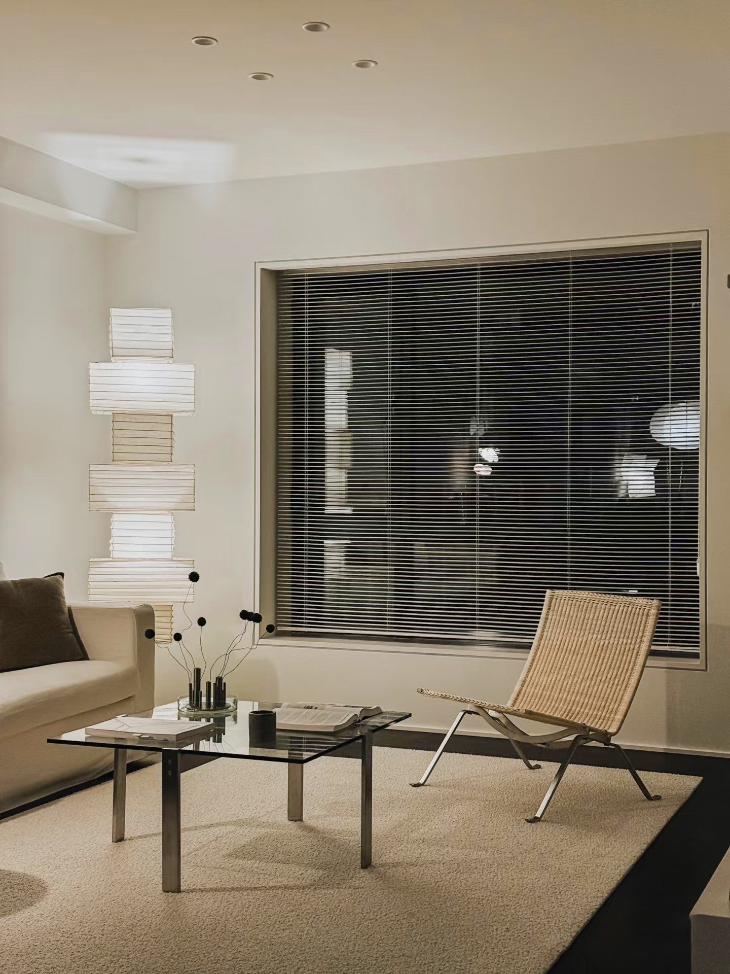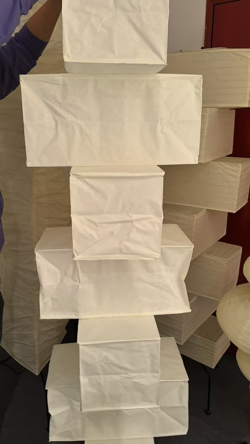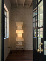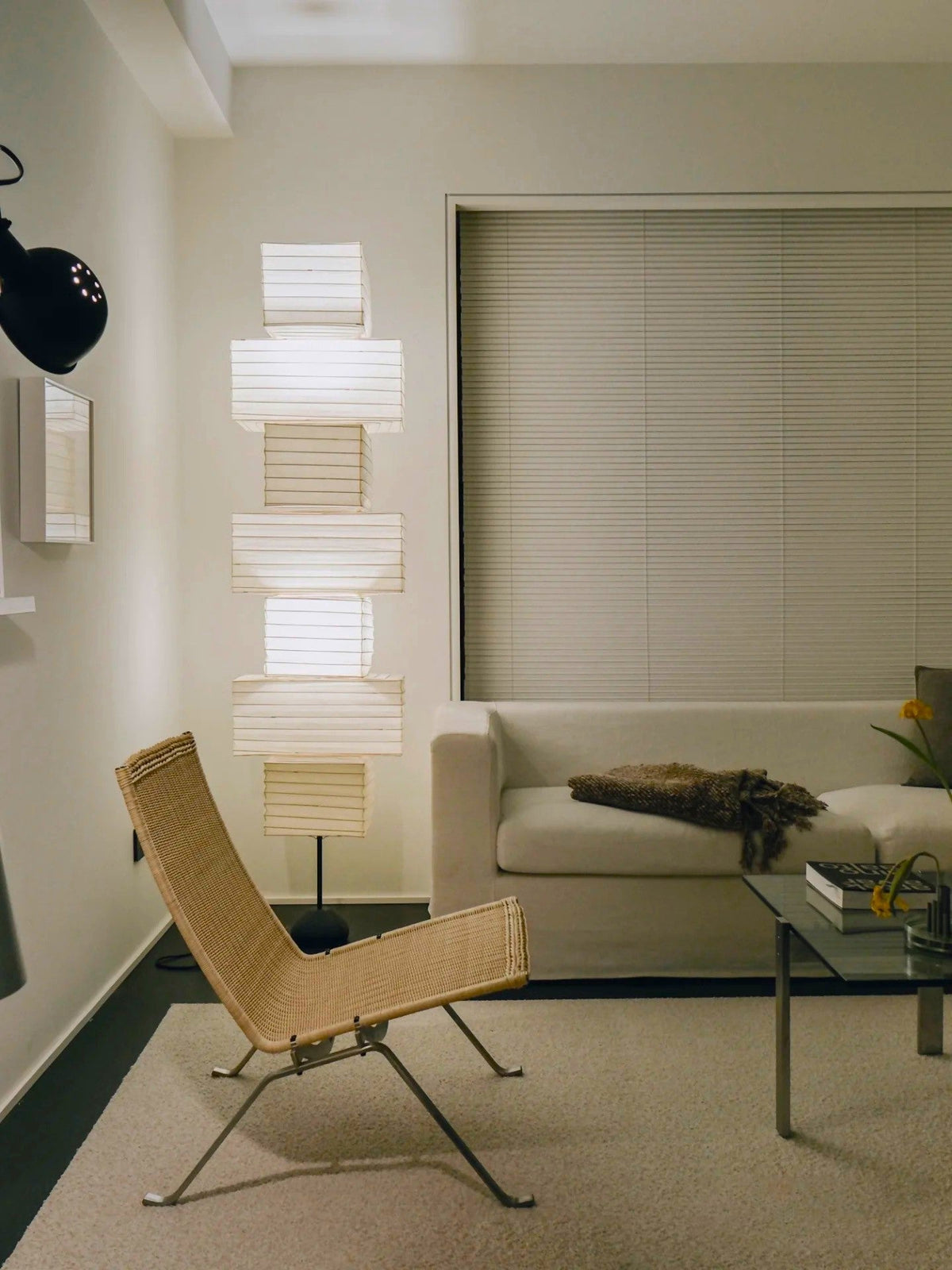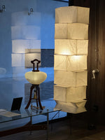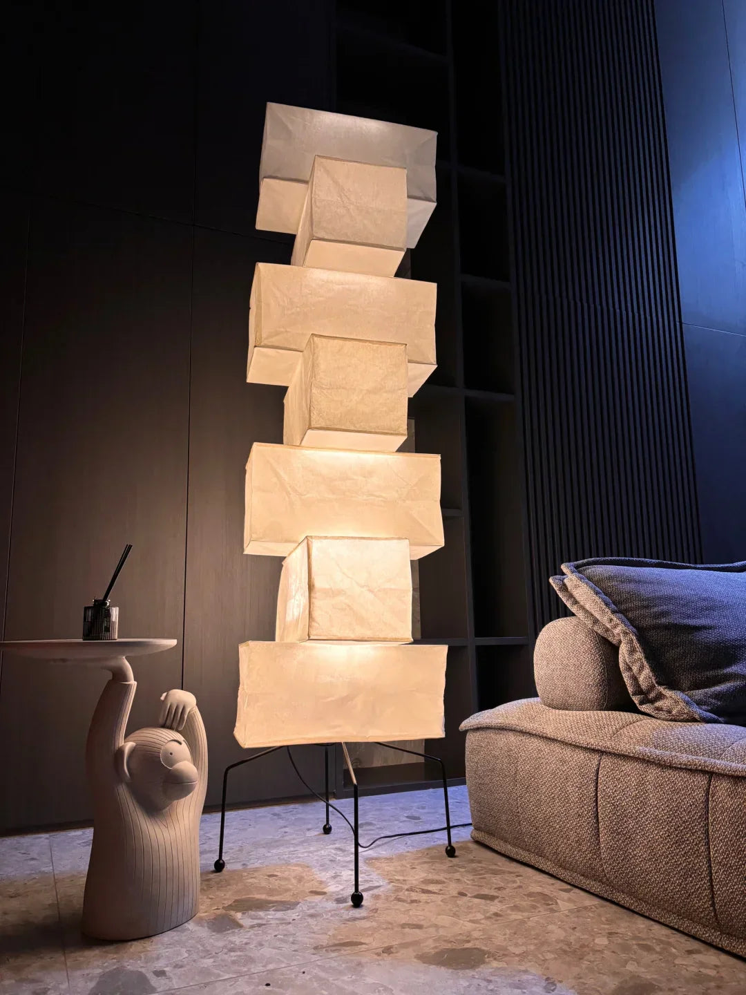 • The Akari UF4-L10 Floor Lamp is a stunning example of modern Japanese design. Crafted with meticulous attention to detail, this lamp features a series of stacked square forms that create a captivating layered look. The interplay of light and shadow through the delicate washi paper creates a warm and inviting ambiance in any space.