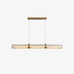 - Suspended within this brass frame are cylinders of natural alabaster. Each alabaster piece is hand-selected for its unique, delicate veining and soft, warm texture. This noble material, revered since antiquity, boasts a soft translucency that is essential to the Akiko Linear Pendant Lamp's magic. It is the harmonious contrast between the defined, metallic brass and the soft, organic alabaster that makes this pendant visually arresting from every angle.