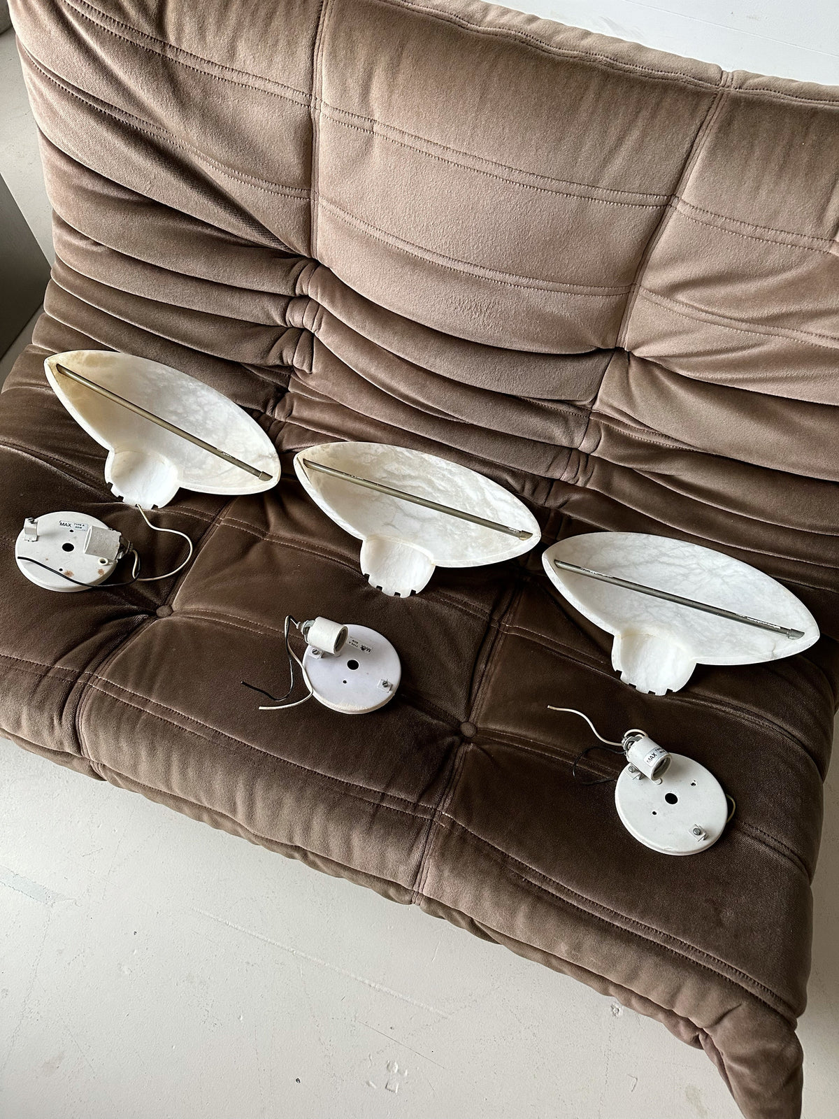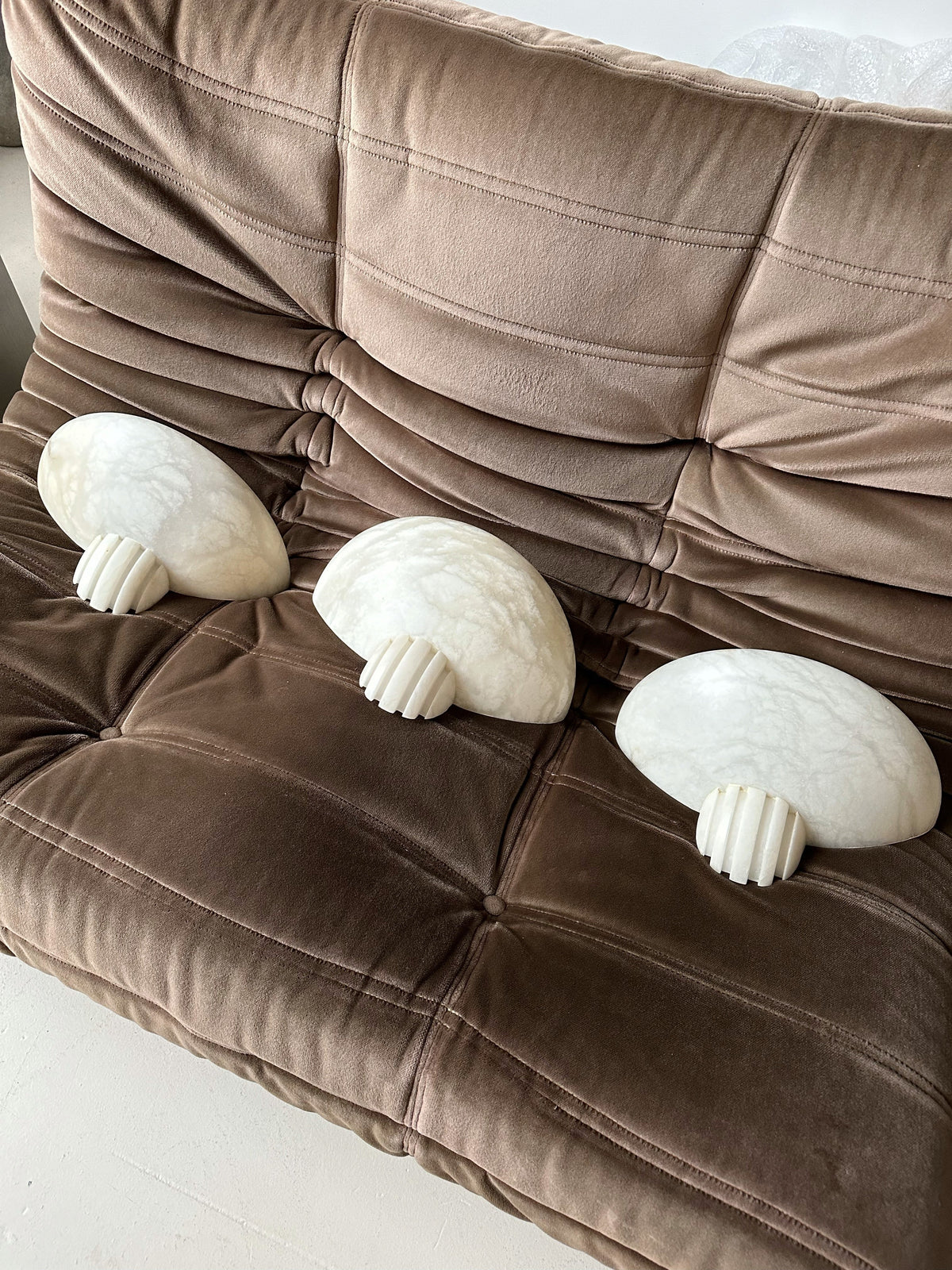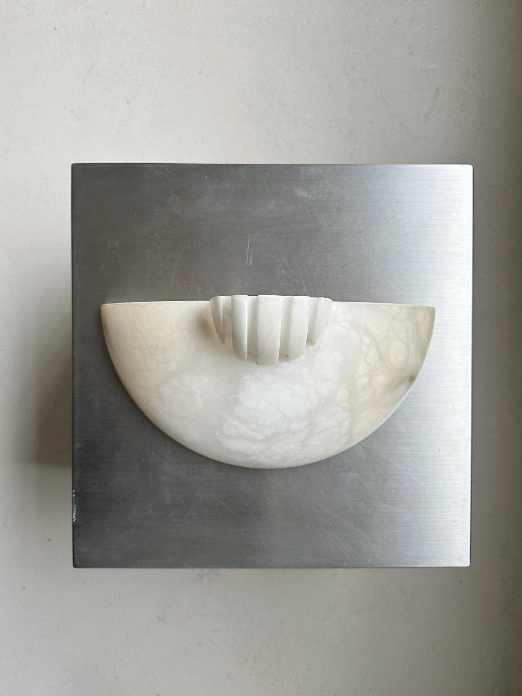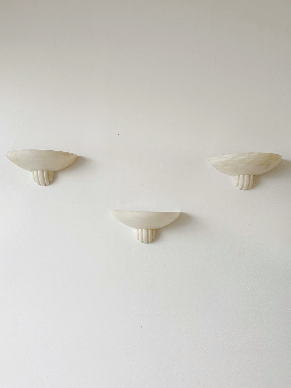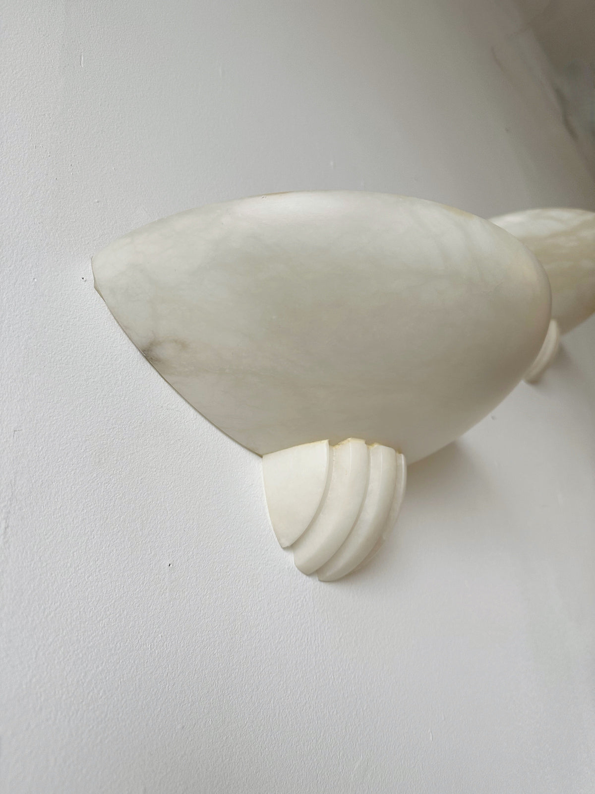 • Embrace the glamour and sophistication of the Roaring Twenties with this stunning, original ArtD Alabaster Wall Sconce. Crafted from genuine, luminous alabaster, this piece is a true testament to the era's unparalleled craftsmanship and geometric design.