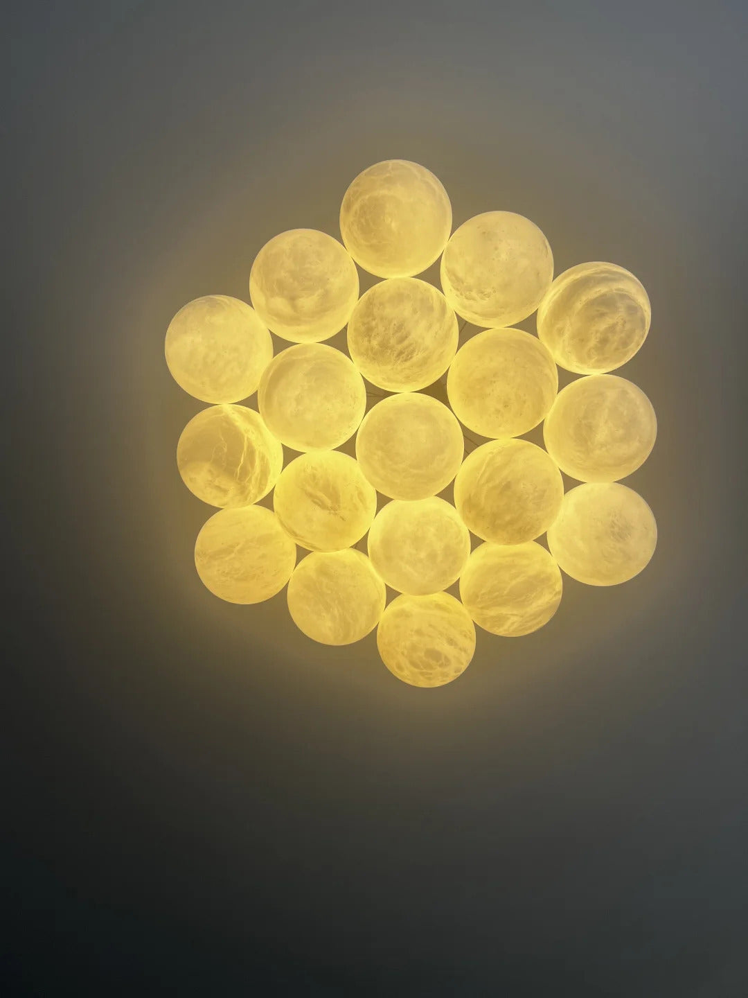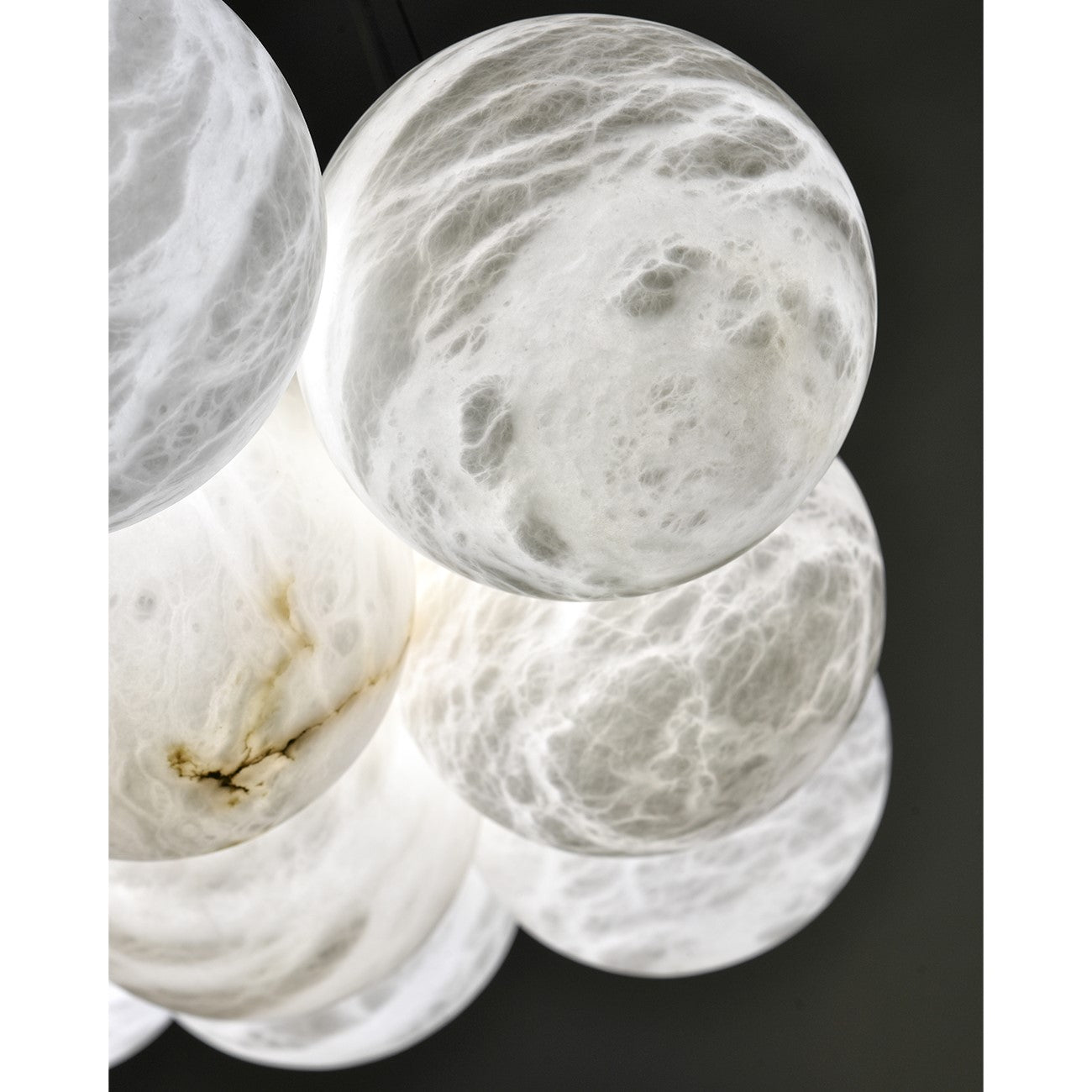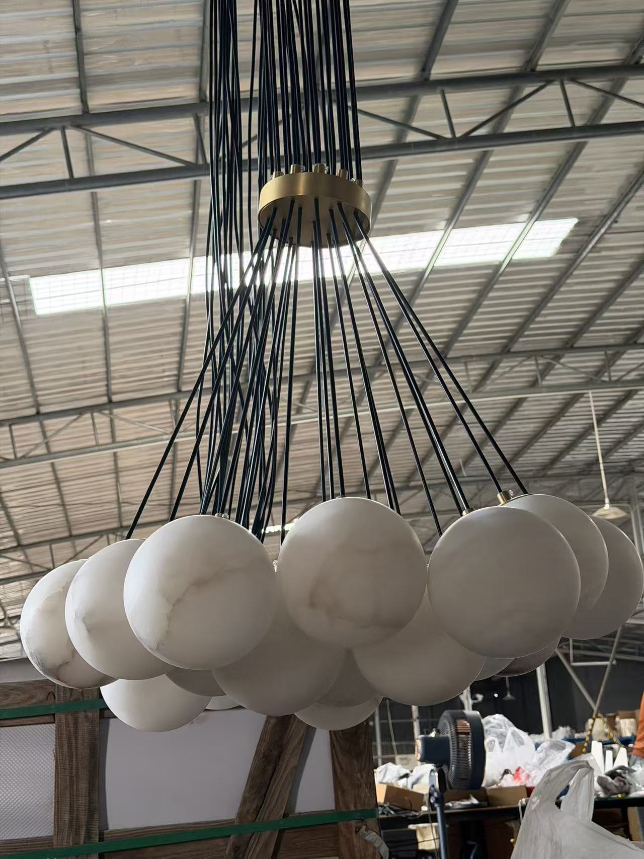 - The Bolky Up Chandelier is a striking display of sculptural form. Strong, satisfied bunches of spheres can be grouped into clusters of seven, thirteen or nineteen, creating a bold and dynamic presence in any space. Unlike its twin, the Bolky, the Bolky Up offers the flexibility of adjustable height, allowing you to customize the perfect fit for your ceiling and desired ambiance.