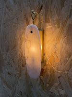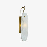 - Each sconce features delicately suspended oval drops, cascading in a graceful cluster that creates a jewelry-like focal point. The magic of the Cora lies in its alabaster shades; each one is uniquely veined with subtle color variations, ensuring your piece is one-of-a-kind. When illuminated, the clustered drops filter light softly through their layered forms, casting a warm and inviting ambient glow that enhances any atmosphere.