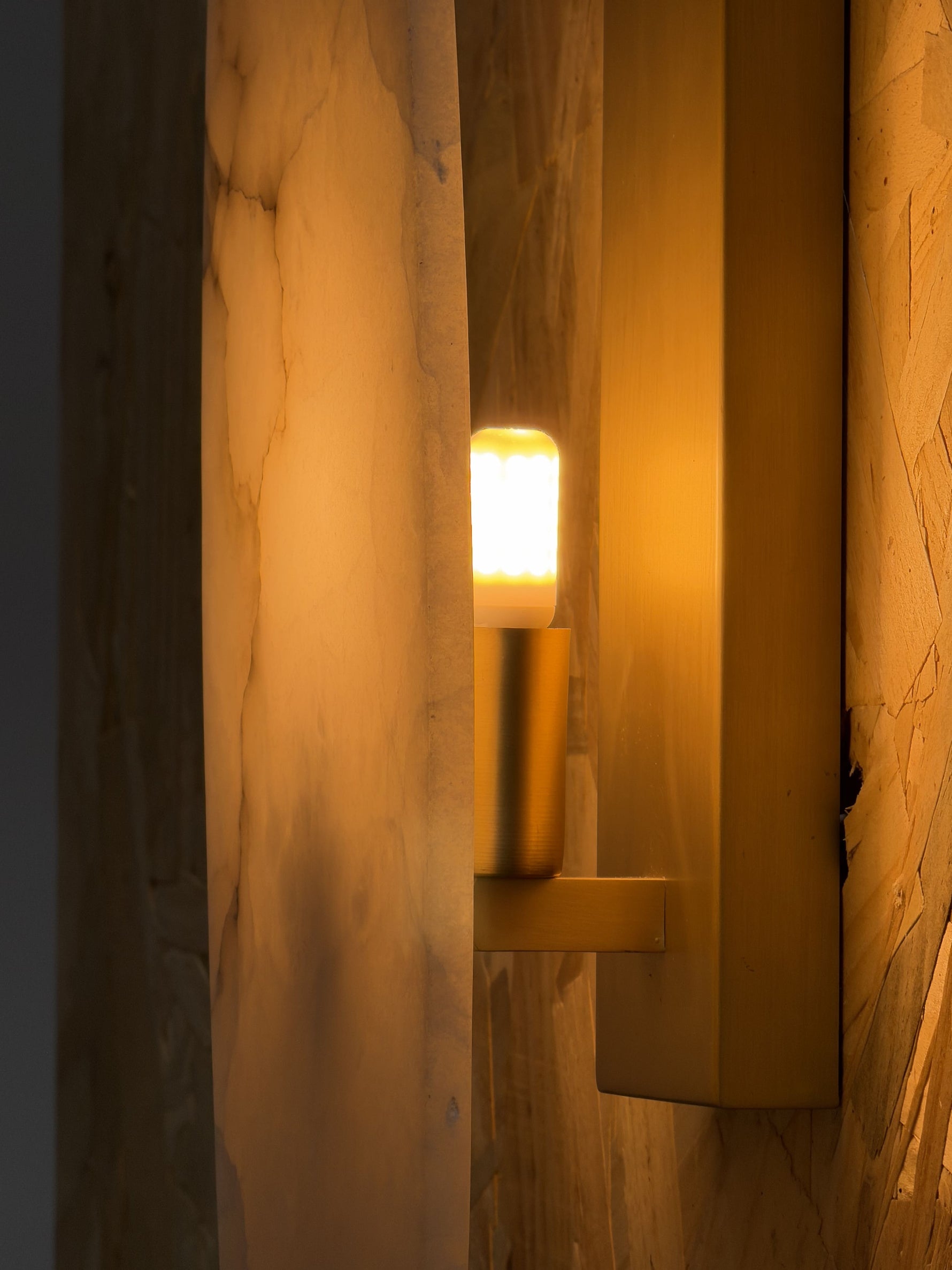 - Introduce a touch of serene, natural beauty to your walls with the Cora Small Sconce. Expertly crafted, this piece pairs the warm glow of an elegant brass frame with the soft, organic texture of genuine alabaster.