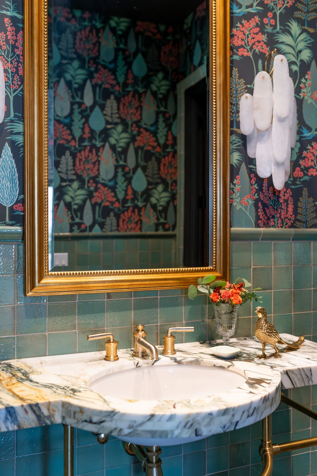 - Each Cora Waterfall Sconce Large features delicately suspended, hand-selected alabaster ovals, strung together in an elegant, cascading formation. The natural stone is celebrated for its unique veining and subtle color variations, ensuring your fixture is one-of-a-kind. Cradling these beautiful stones are sleek, warm brass frames that add a touch of modern jewelry-like sophistication.
