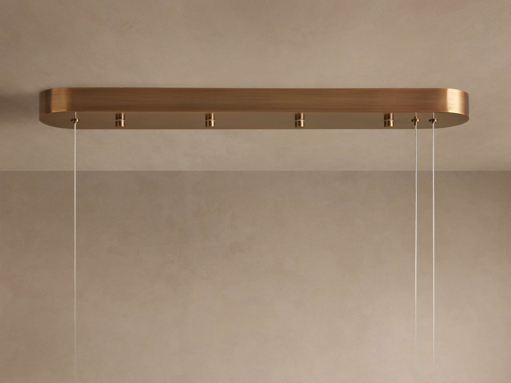 - Suspended on almost invisible minimalist steel cables, the Halima Linear Pendant Lamp appears to float effortlessly overhead. This sleek, architectural design allows the beauty of the natural stone to take center stage, seamlessly bridging the gap between timeless materiality and contemporary style. Finished with subtle brass accents on the canopy, it adds a touch of refined warmth to its clean, modern lines.