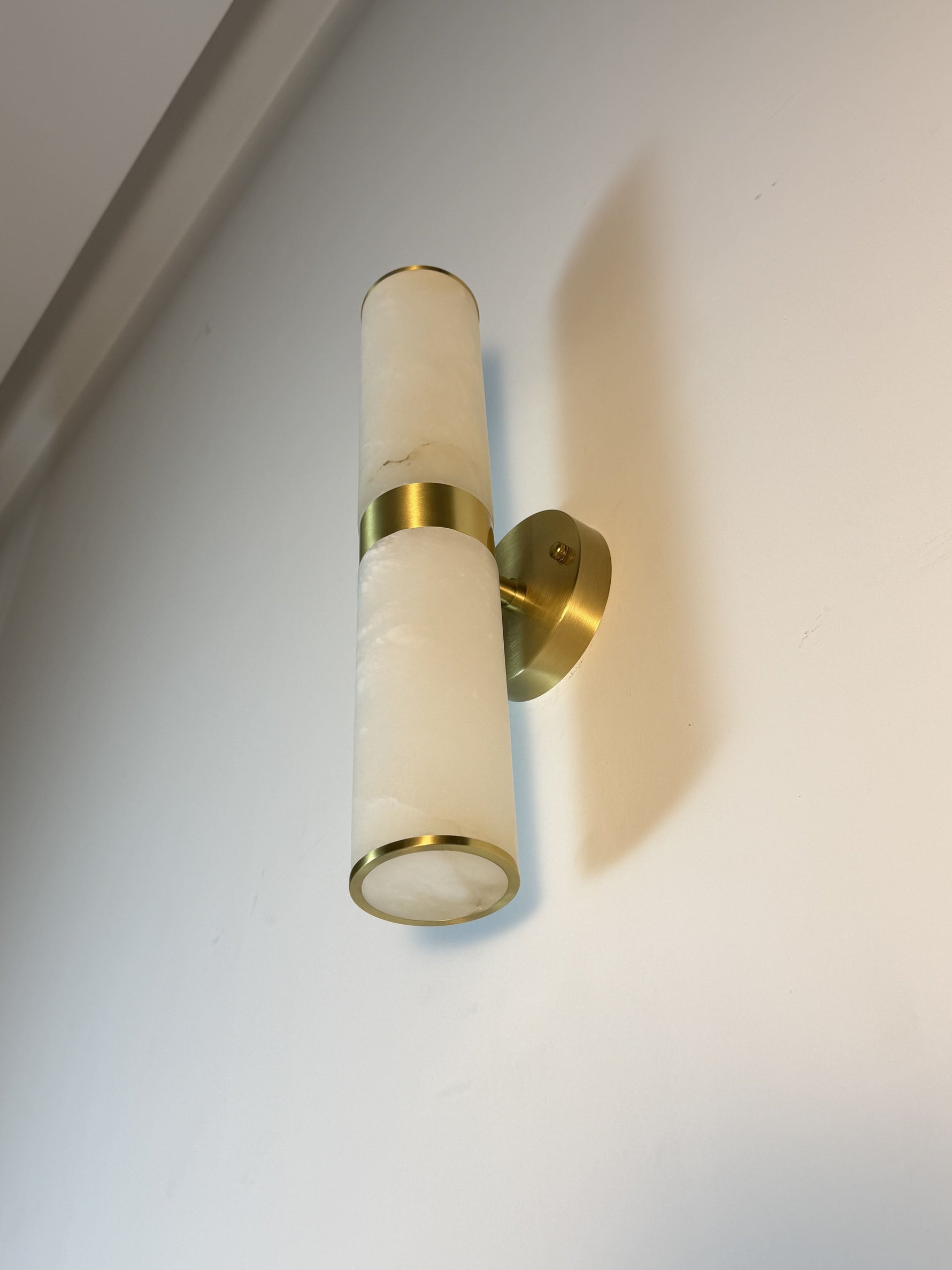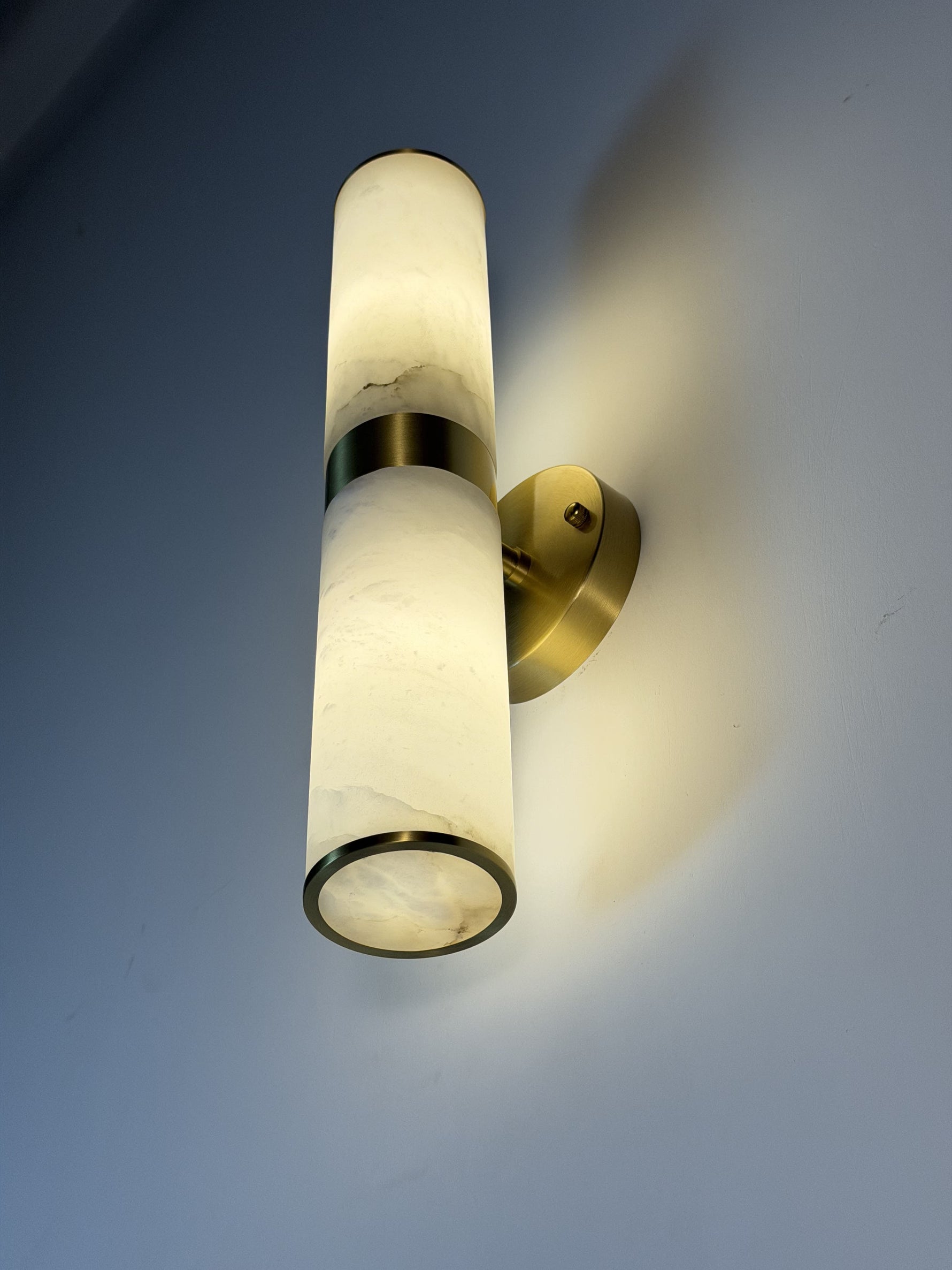 - With alabaster as the shade material, Levi Alabaster Wall Sconce is suitable to be placed anywhere in the space as a lighting decoration without looking out of place. The double-head design brings more light than the single head, but their styles are very different.