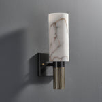 - Loni Alabaster Wall Sconce reveals elegance in modesty. The brass body has been sprayed with a matte black outer layer for pairing with darker spaces. The top of the lamp body is not shaded and the light will hit the ceiling directly.