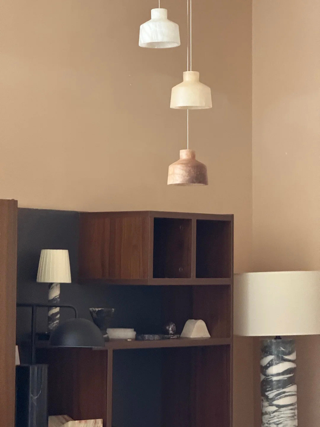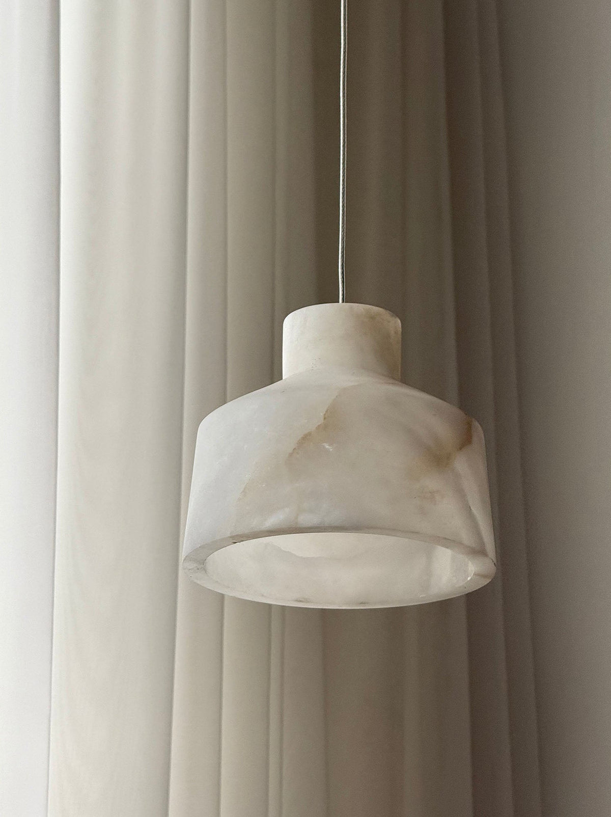 - Featuring a minimalist geometric design with clean lines, this pendant lamp effortlessly complements a variety of decor styles—from modern and Scandinavian to rustic and classic.Thanks to alabaster’s natural light-diffusing properties, the Marybelle emits a gentle, eye-friendly glow, eliminating harsh glare while setting a serene mood.