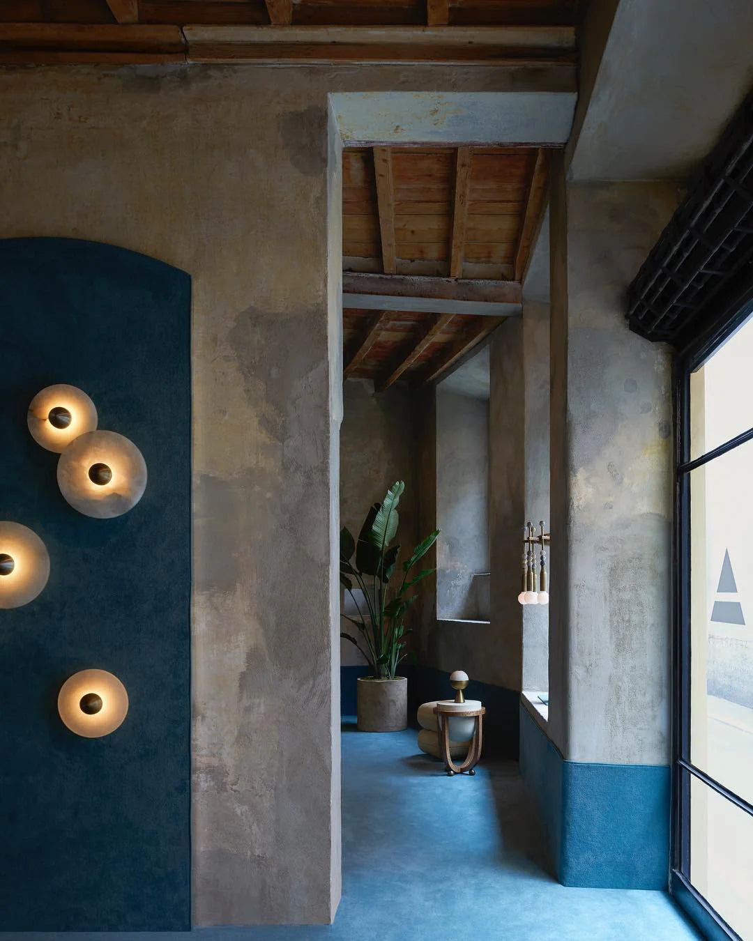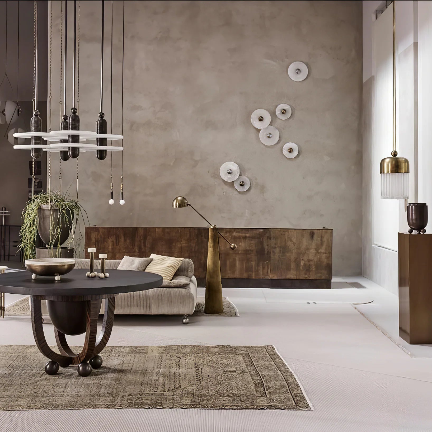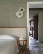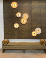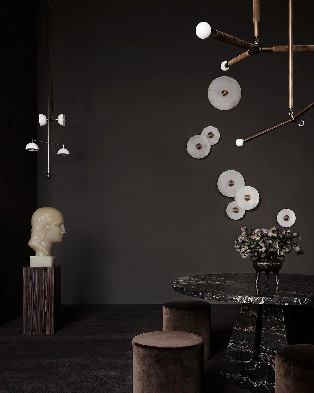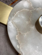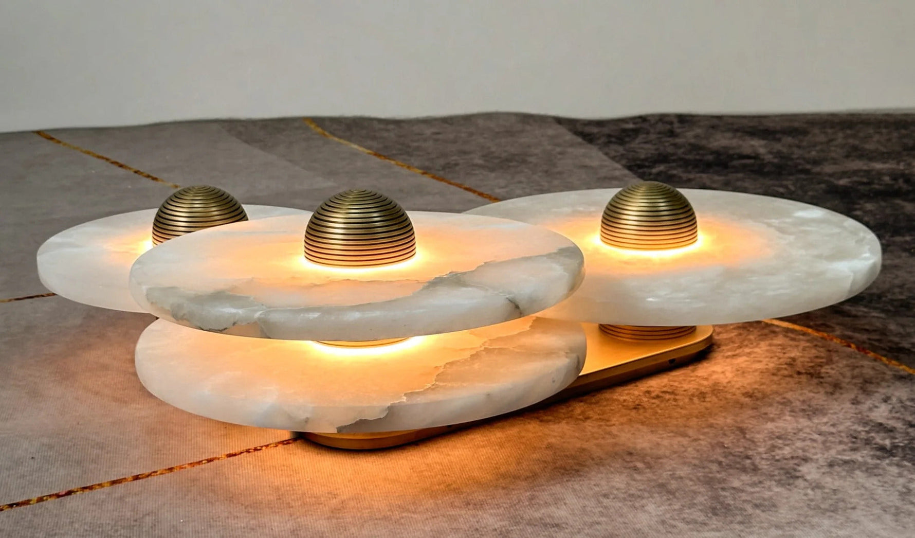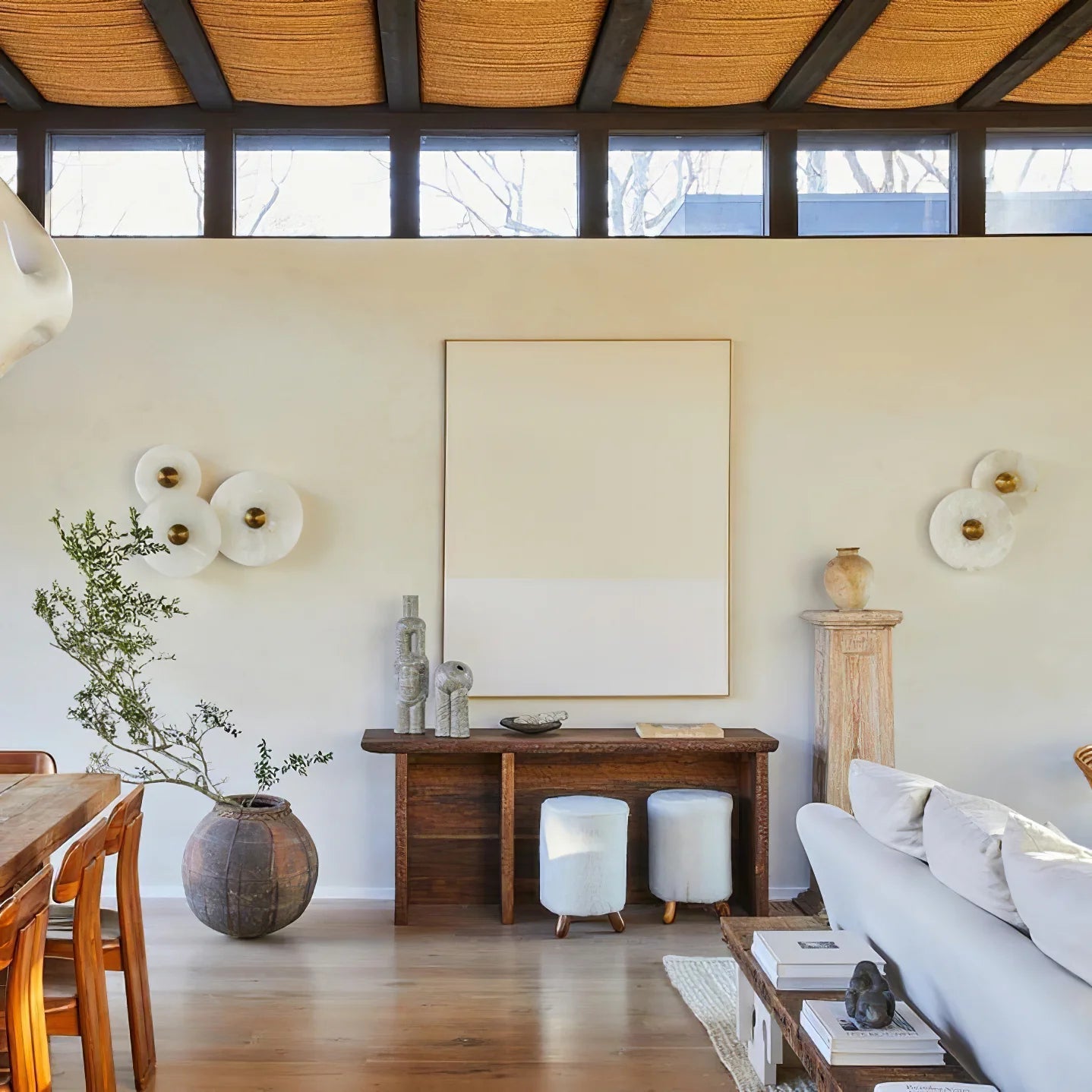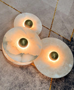 - The Median Surface Sconce is a captivating fusion of traditional and contemporary design. Its translucent alabaster planes, shaped in a striking median form, are intersected by a fluted brass element, reminiscent of intricate Middle Eastern jewelry. This juxtaposition of materials and aesthetics creates a visually arresting piece that seamlessly blends the past with the future.