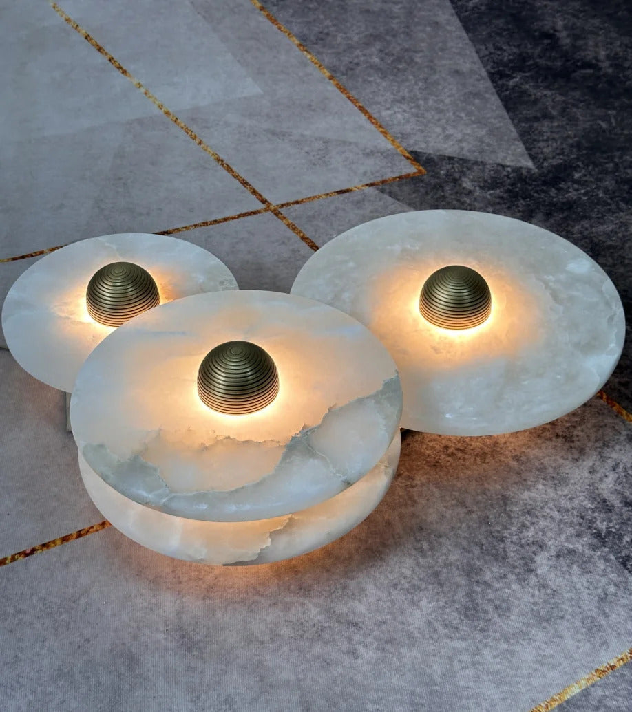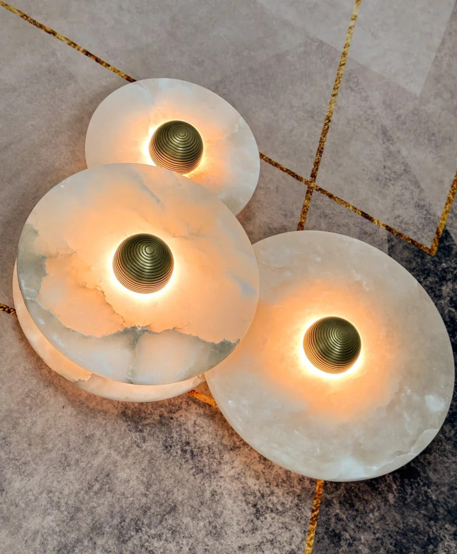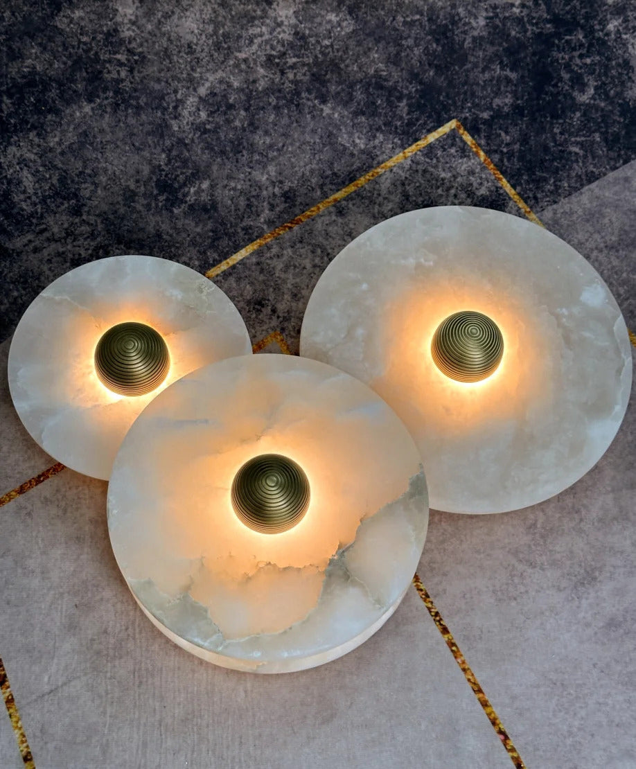 - The hidden light source within the sconce illuminates the alabaster, highlighting its translucency and the interplay between solid and permeable forms. The Median Surface Sconce is a stunning addition to any space, adding a touch of sophistication and artistic flair.