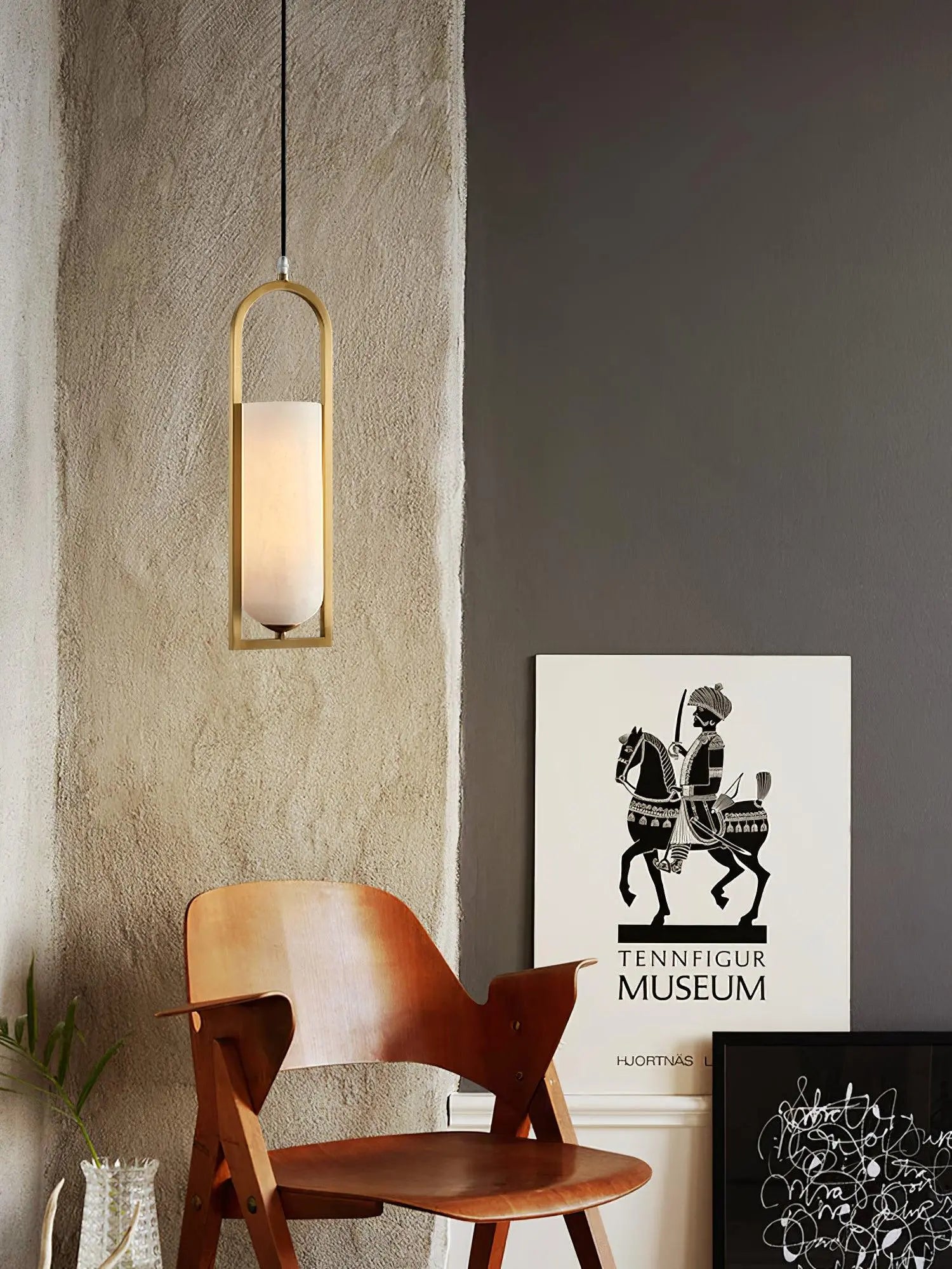 - At the heart of Melange Elongated Pendant Lamp lies its luminous soul: a hand-selected, carved natural alabaster shade. Renowned for its exquisite translucency, alabaster performs a magic trick with light. It doesn't just emit illumination; it transforms it. When lit, the pendant casts a soft, diffused, and incredibly warm radiance across your room, bathing walls and surfaces in a serene, gallery-quality light that eliminates harsh shadows. This creates an atmosphere of instant tranquility and sophistication, perfect for intimate dinners, relaxed evenings, or adding a welcoming vibe to any space.
