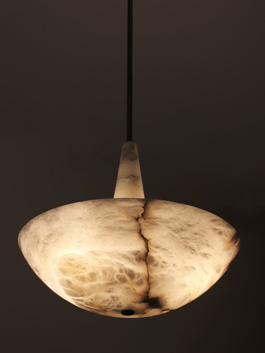 - The Phoebe Alabaster Pendant Lamp is more than just a light source; it is a statement piece that transforms any room into a gallery of sophisticated warmth. Expertly handcrafted, each lamp is unique, showcasing the subtle, natural veining and translucent qualities of genuine alabaster stone.