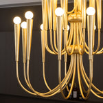 - Elevate your interior with the Alycia Chandelier, a striking fixture that blends classic design with a touch of modern flair. Its bold silhouette features elegantly curved arms, each culminating in a sophisticated globe bulb. The Alycia casts a warm and inviting glow, creating an ambiance of timeless elegance in any dining room, living area, or foyer. This chandelier is more than just a light; it's a statement piece that adds a touch of refined grandeur to your space.