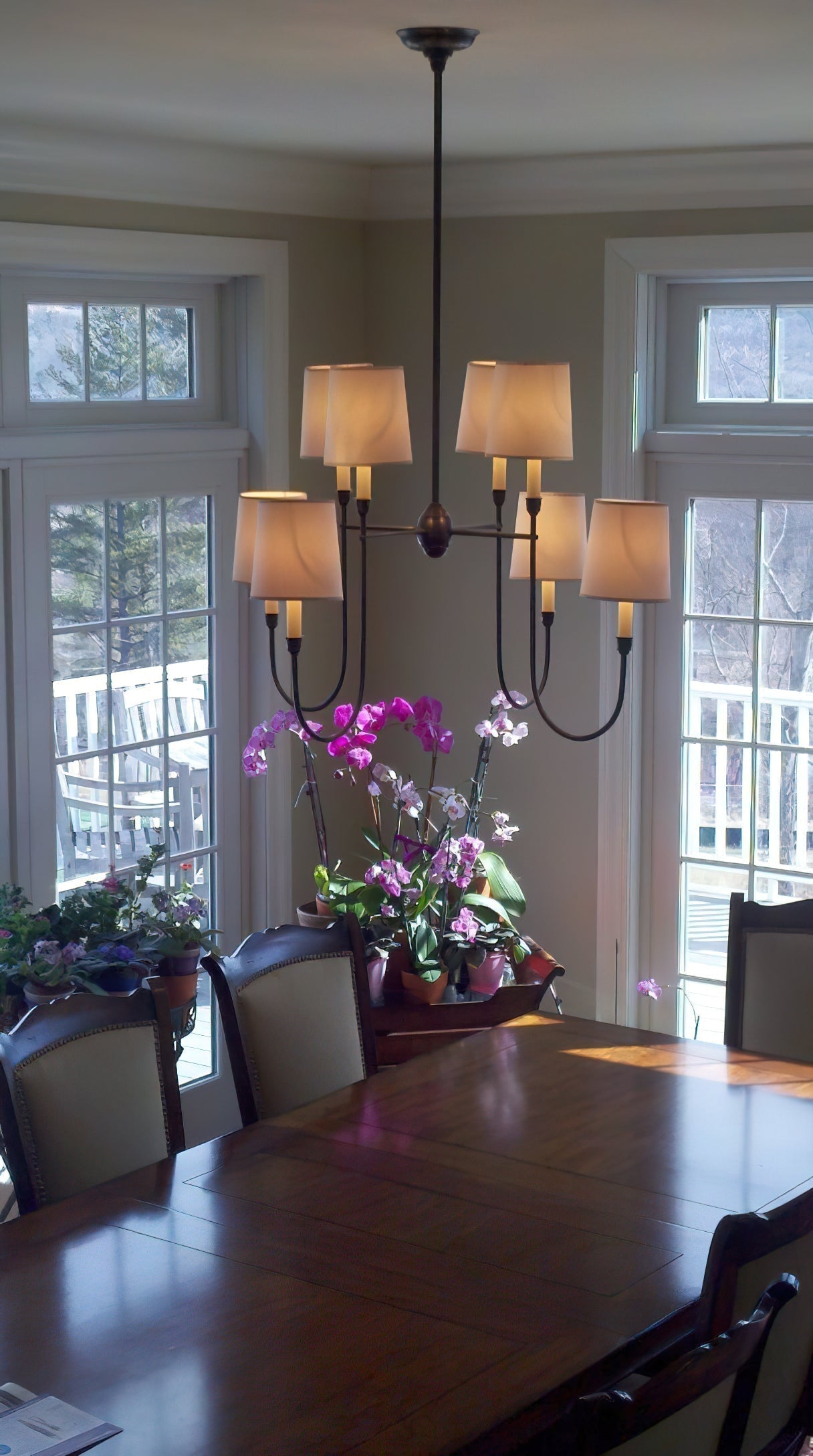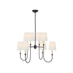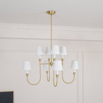 - Add a touch of sophistication to your home with the Baumgardt Chandelier. This stunning piece features tapered shades and candlesticks gracefully supported by slim curved arms, creating a timeless and elegant design. The soft linen shades diffuse the light, providing a warm and inviting ambiance in your foyer, dining room, or living room. With its understated luxury, the Baumgardt Chandelier is a versatile piece that complements a variety of interior styles.
