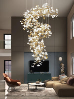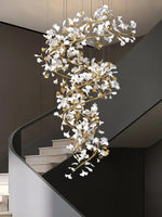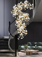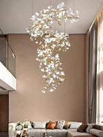 - Elevate your space with the Carias Ceramic Ginkgo Chandelier Wonderland, an opulent masterpiece designed to captivate. This giant staircase light is the epitome of luxury and grandeur, making it an ideal centerpiece for living rooms or foyers. The chandelier boasts an array of exquisite ceramic ginkgo-shaped lampshades, each delicately crafted to reflect elegance.