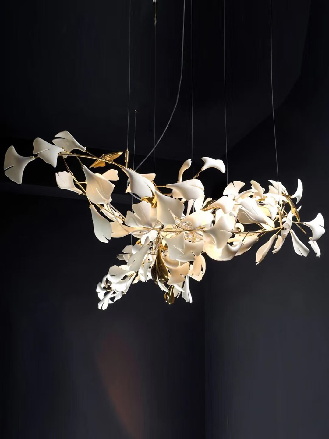 - Elevate your space with the enchanting Carias Ceramic Ginkgo Pendant Light Extended. Inspired by the graceful ginkgo tree, this unique lamp features a single, elongated branch adorned with delicate ceramic leaves. The intricate detailing of the leaves captures the natural texture and beauty of real ginkgo leaves, creating a captivating focal point in any room. Choose from a variety of lengths to extend the branch to the perfect height for your space.