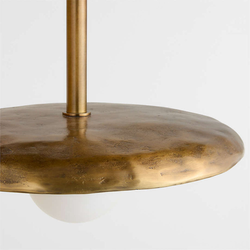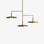 - Each shade is meticulously hand-sculpted from solid brass, featuring a unique, textured surface that mimics the natural veins of a leaf. Resting gently upon these "leaves" are three soft white milk glass globes, evoking the glowing white flowers of the aquatic plant. The result is a captivating play of form and light that is both artistic and soothing.