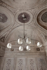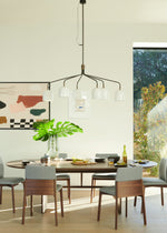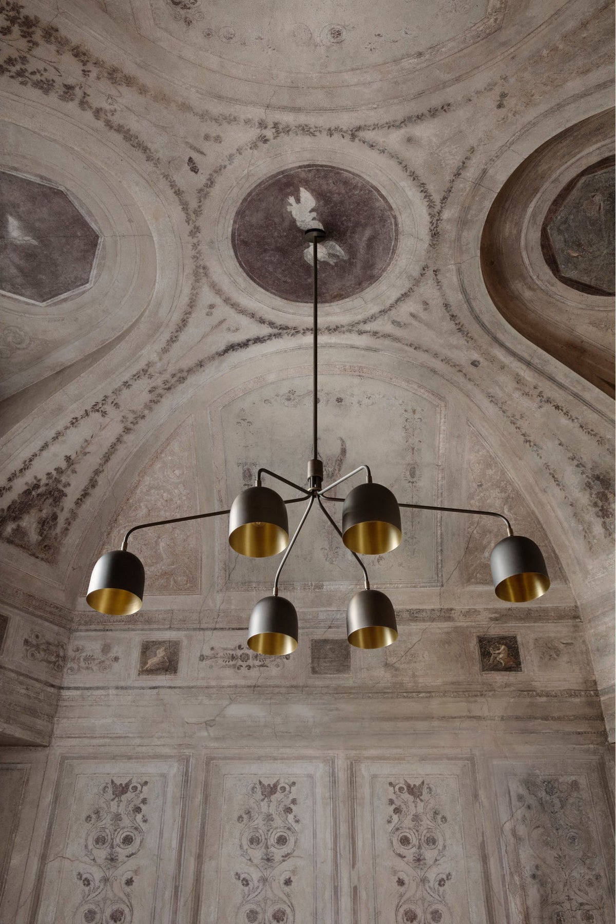 - Featuring four gracefully elongated ‘octopus arms,â€?the Filpus Chandelier exudes a modern, sculptural silhouette. The gunmetal brass shades, with their brushed brass interiors, introduce an industrial edge, while the warm, tactile materials ensure a welcoming ambiance. For a softer glow, opt for the delicate bone china shade—casting a diffused, ethereal light that enhances any setting.