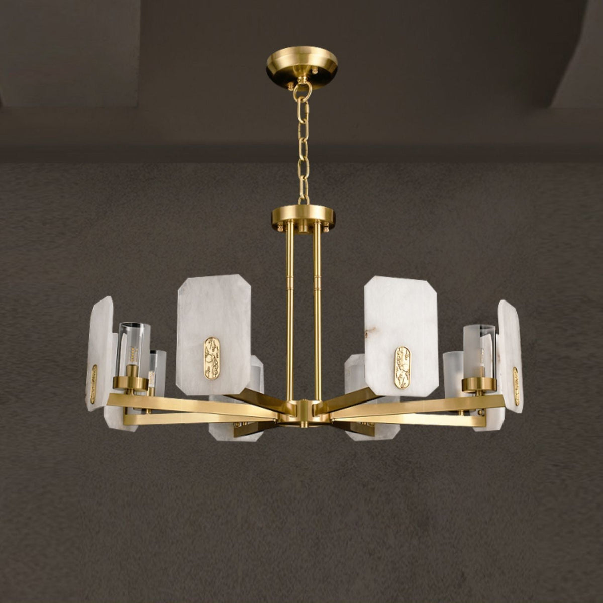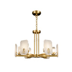 - Illuminate your home with the exquisite Froese Alabaster Chandelier, a stunning lighting fixture that masterfully blends modern sophistication with vintage charm. Featuring a luxurious brass lamp body plus its captivating alabaster lampshade. Crafted to perfection, the alabaster not only creates a beautiful diffusion of light but also infuses your space with warmth and elegance. As the light shines through the soft, creamy texture of the alabaster, it casts a delicate glow that transforms your interiors into a serene haven.