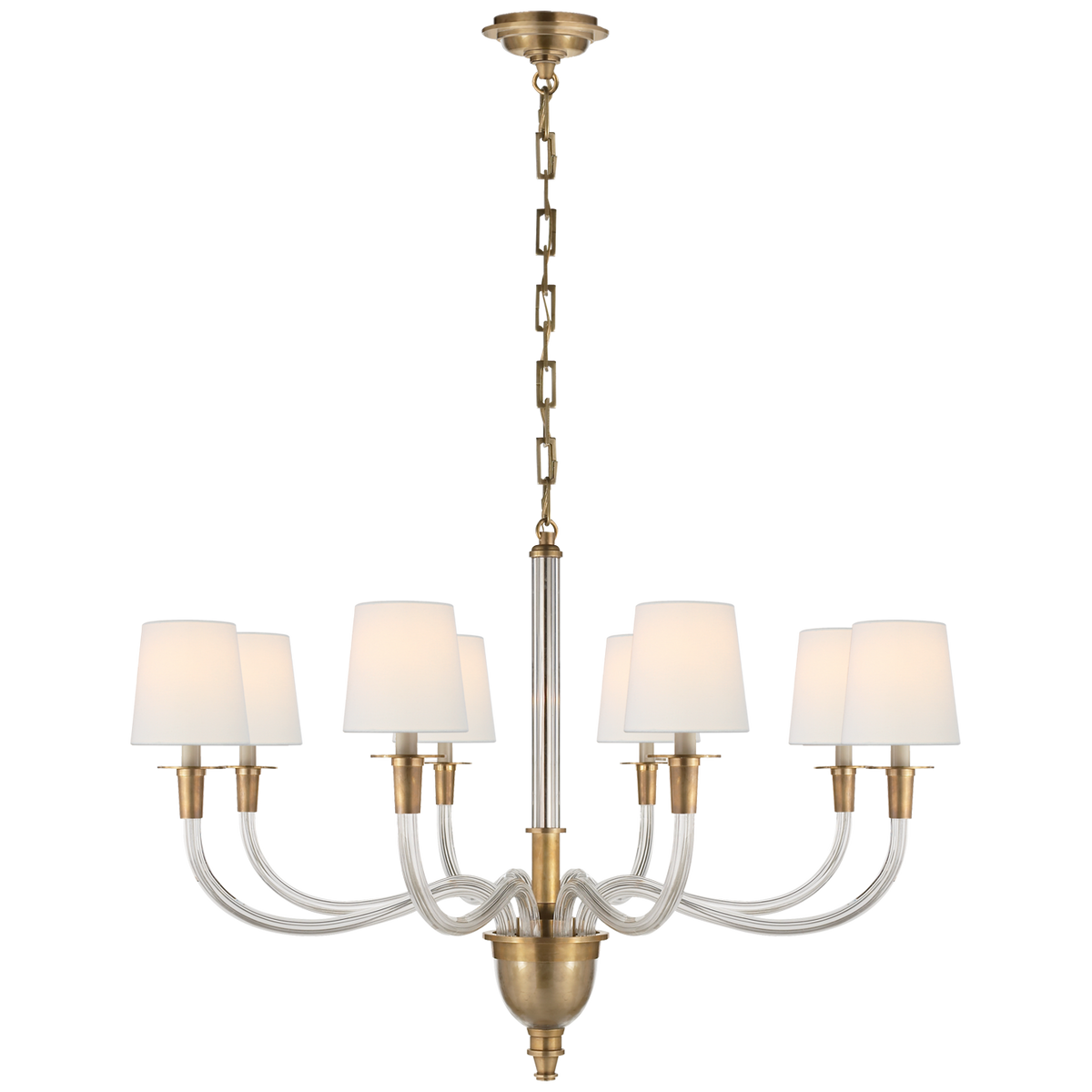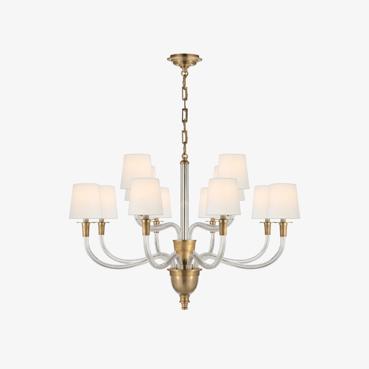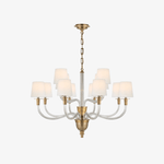 - Elevate your space with the Getts Chandelier, a stunning fusion of curved crystal and sleek metal that exudes effortless sophistication. This exquisite fixture features sinuous lines and a refined silhouette, creating a harmonious balance of modern elegance and timeless charm. The interplay of light through the delicate crystal accents adds a captivating glow, while the polished metal frame ensures a chic, contemporary statement.