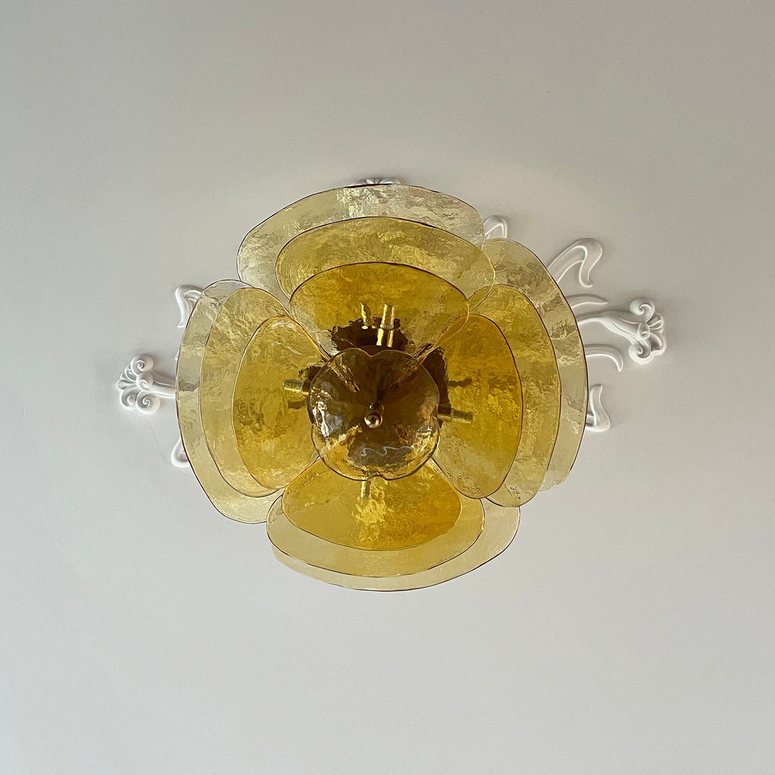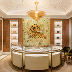 - The integrated spotlights enhance the Lilypad Chandelier’s luminous effect, casting a gentle, evenly distributed glow perfect for both modern and classic interiors. Due to the artisanal nature of the glasswork, slight variations in color and pattern may occur, ensuring that each piece is truly one-of-a-kind.