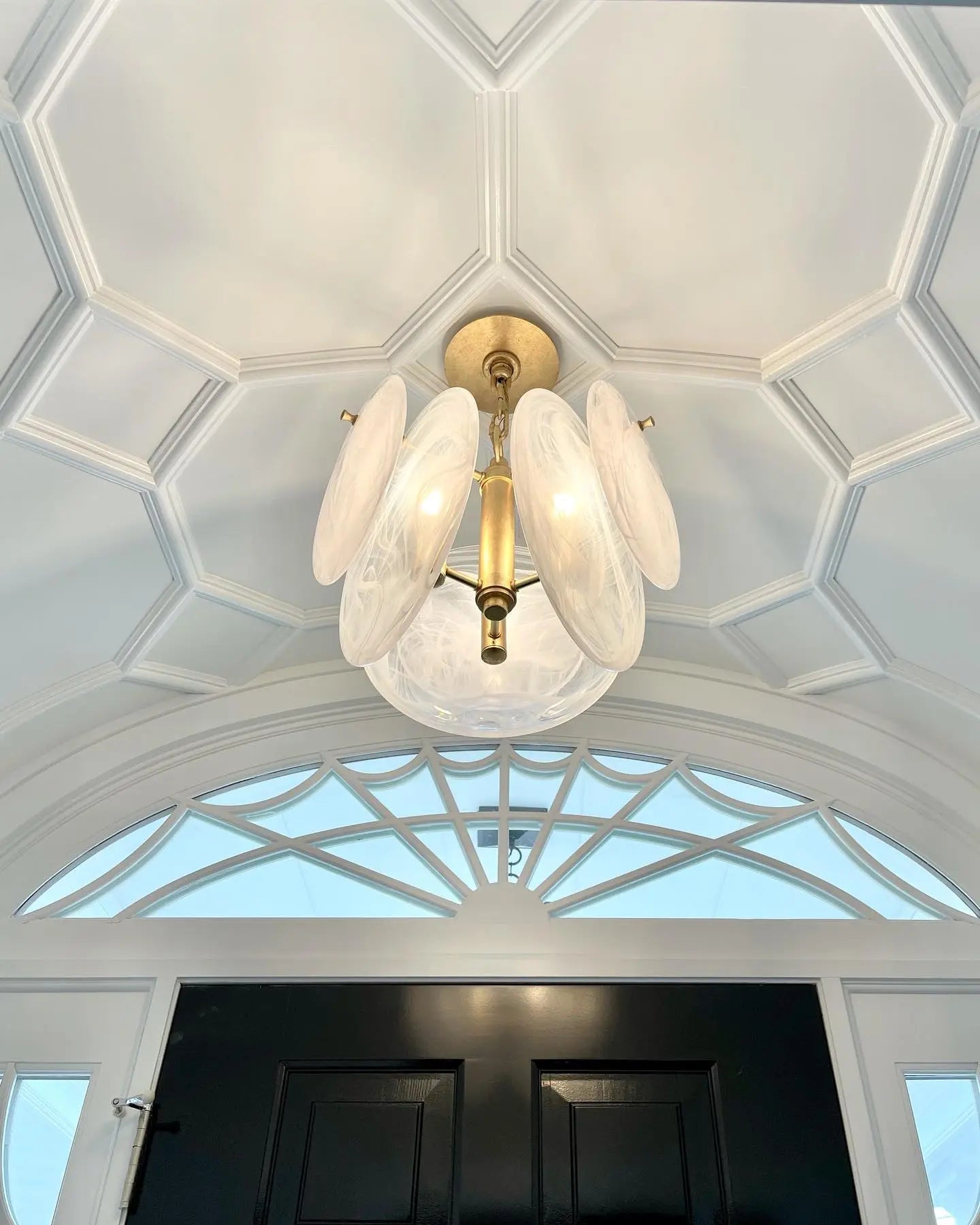 - Evoke the timeless glamour of a mid-century Italian villa, reimagined for the contemporary home. The Loire Mini Chandelier captures a moment of artistic fluidity, with its dynamic silhouette of hand-blown glass discs cascading in an elegant, organic formation.