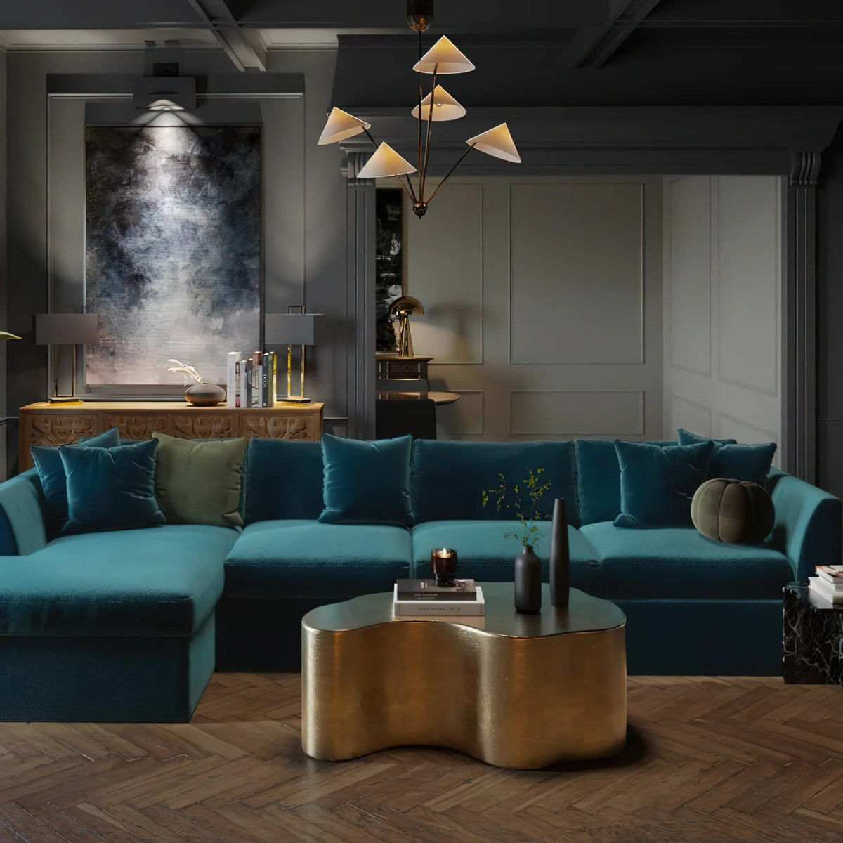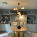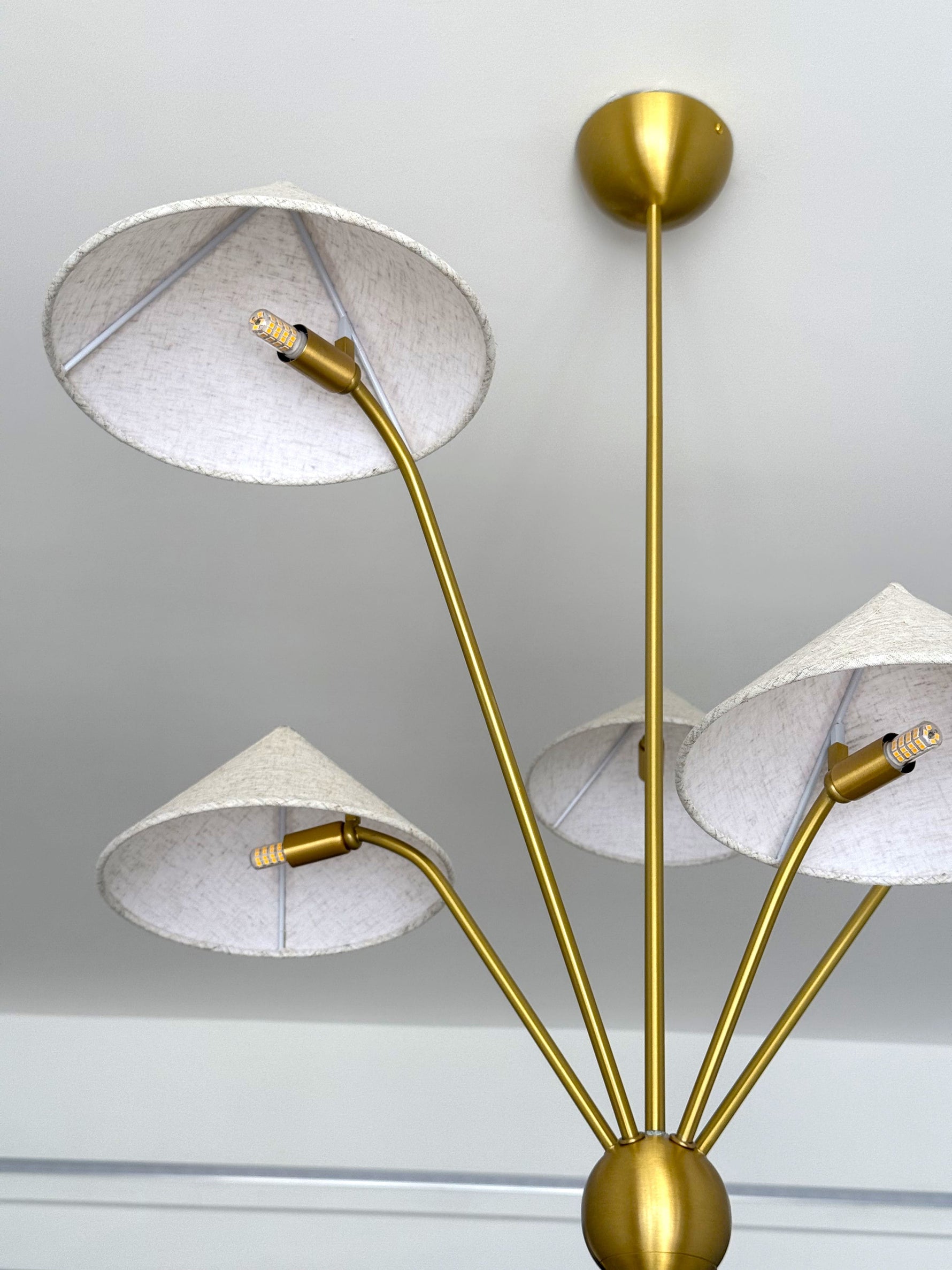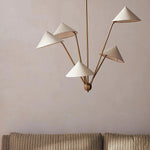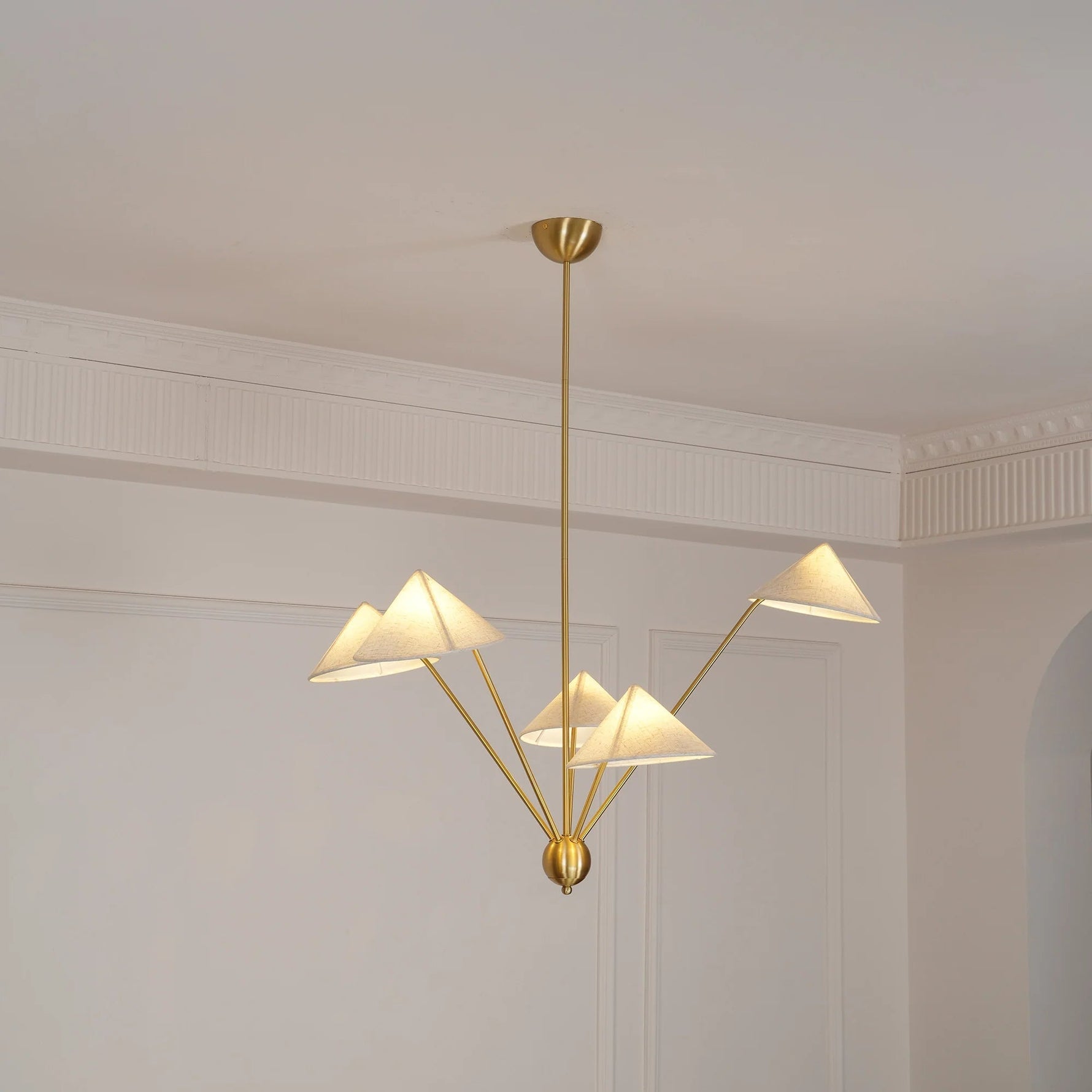 - Designed by Amber Lewis, the Mantis Chandelier blends contemporary style with a hint of vintage allure. Its gracefully splayed arms are crowned with triangular, textured linen shades, creating a sculptural yet inviting silhouette. Lewisâ€?signature touch—honed through her mastery of textiles and layered materials—shines through in the chandelier’s muted tones and organic textures, evoking the warmth of oak wood, the richness of leather, and the tactile appeal of woven fabrics and raw ceramics.