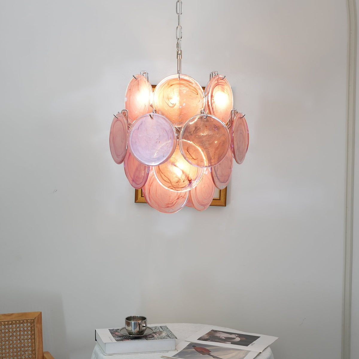 Murano Pink Disc Chandelier 24