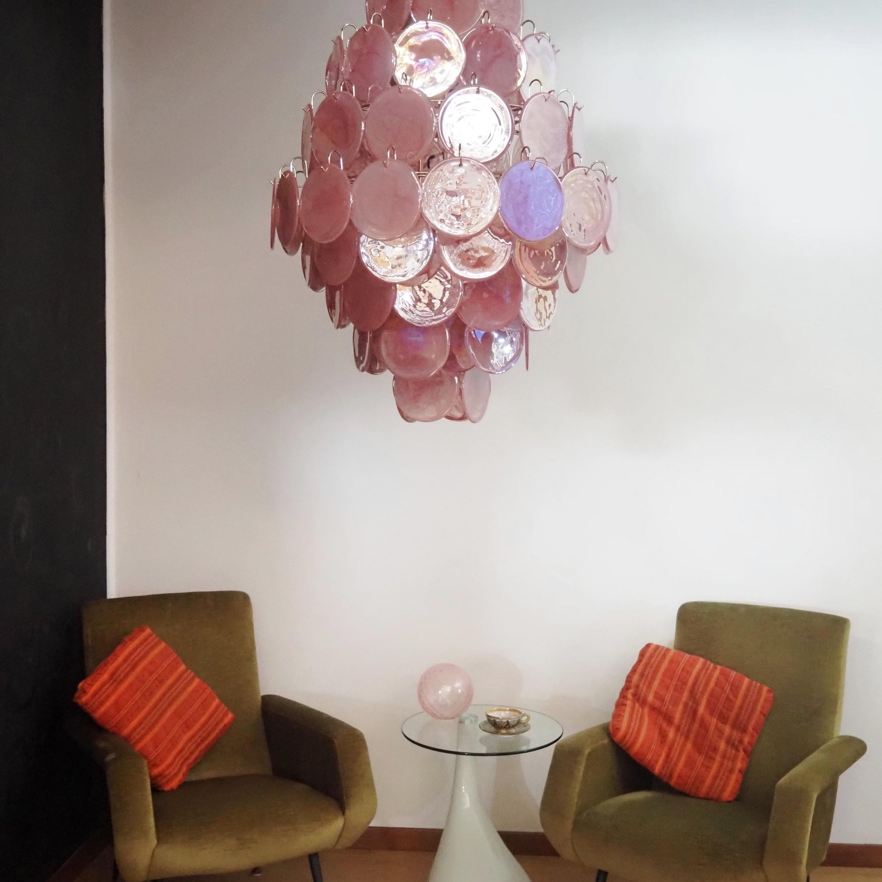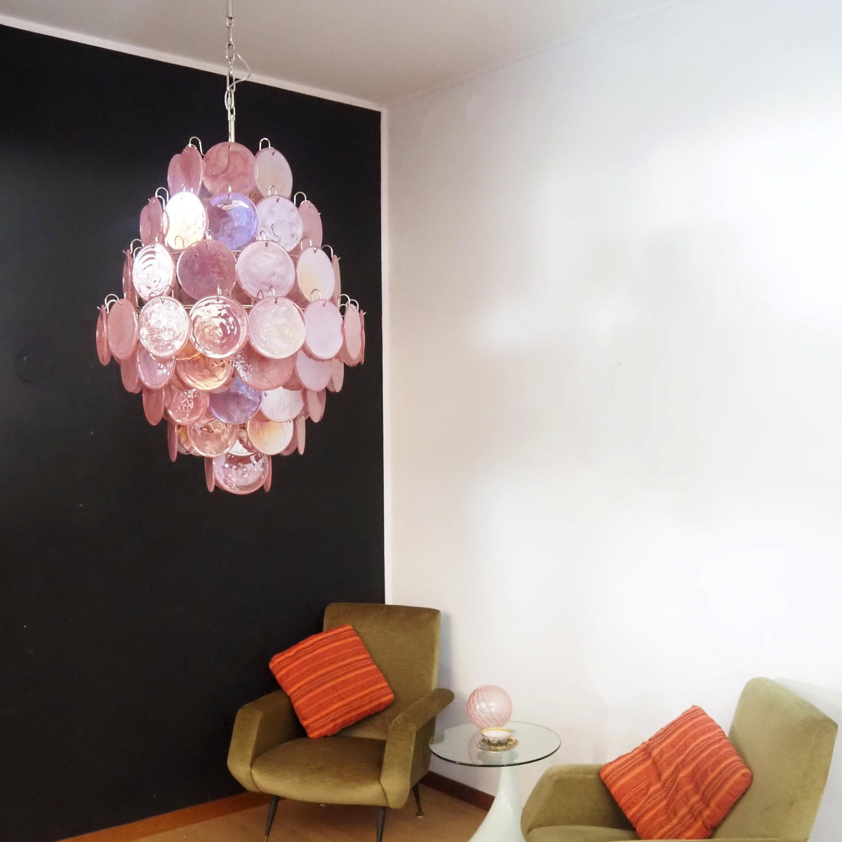 • Transform any room into a breathtaking sanctuary with the Murano Pink Disc Chandelier 87. This stunning piece is more than just a light fixture; it's a captivating work of art, designed to become the heart of your home's decor. Inspired by the legendary glassmaking of Murano, it brings a touch of Italian artistry and romantic charm to your interior.