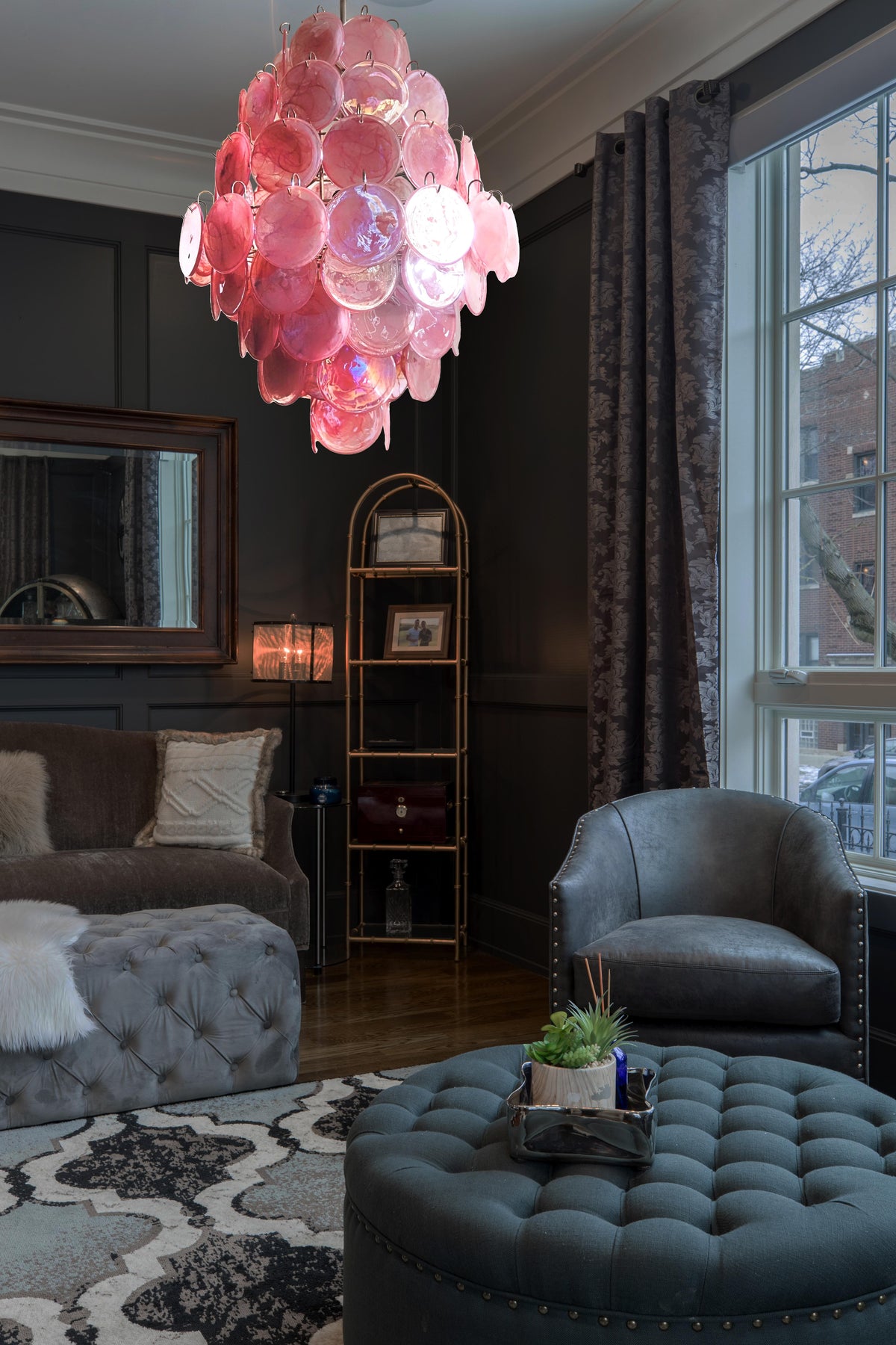 • Crafted with an artistic eye for detail, the Murano Pink Disc Chandelier 87 features a collection of hand-blown pink glass disks, each with a unique, soft-smudge texture. The discs are arranged in a beautiful, organic cluster, showcasing a mesmerizing gradient of color that flows from the softest blush to a deep rose and hints of luxurious plum. This vibrant yet gentle color palette ensures the piece is both a statement and a harmonizing element in your space.